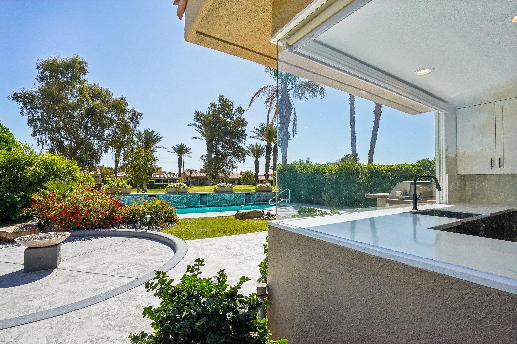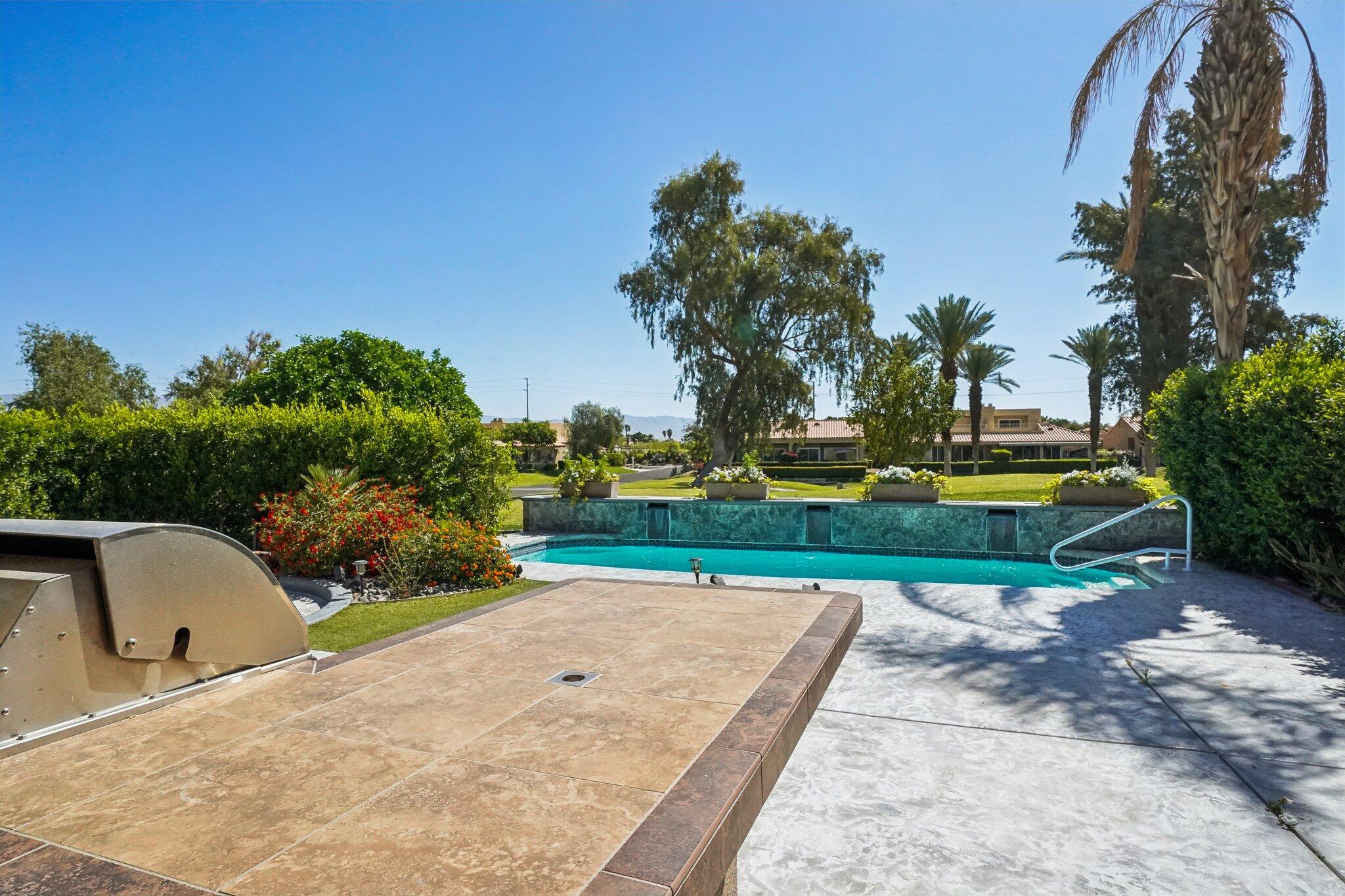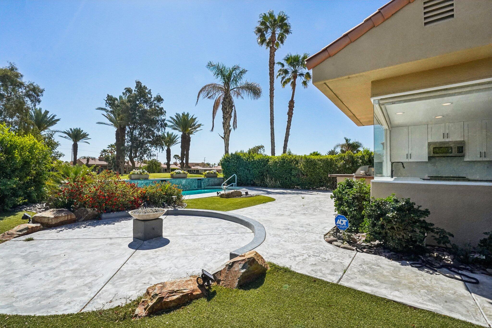 Newly remodeled, move in ready Mission Hills pool home. Sweeping views of the golf course from your premium lot with tee box location. Gorgeous outdoor living space with salt water, heated pool, drought resistant landscape, fire pit, and bbq entertaining area. Inside, new flooring, new kitchen, updated bathrooms, and open spaces. In the kitchen are new cabinets and countertops. Viking appliances, and a view corridor to the pool area and golf course. Living room has tall ceilings, fireplace, stack stone above entertainment cabinets, and sliding doors leading to the patio. Primary is a large bedroom with updated bathroom and guest rooms share an updated guest bath. Three car garage with ample storage. Private, gated entrance. Mission Hills is on of the most prestigious country clubs and golf courses. The home to professional golf tournaments, gorgeous amenities and remodeled club house make it one of the most desirable places to live in the desert.Interested in this Listing?