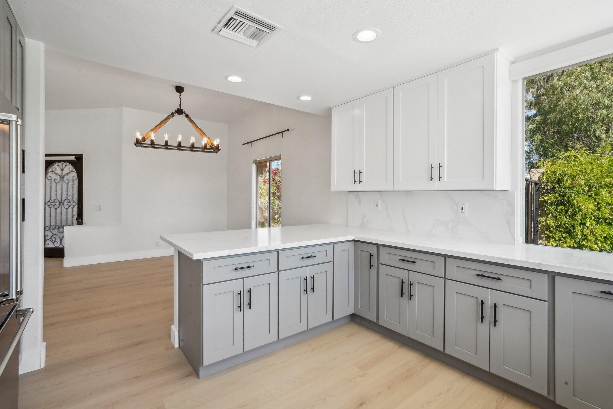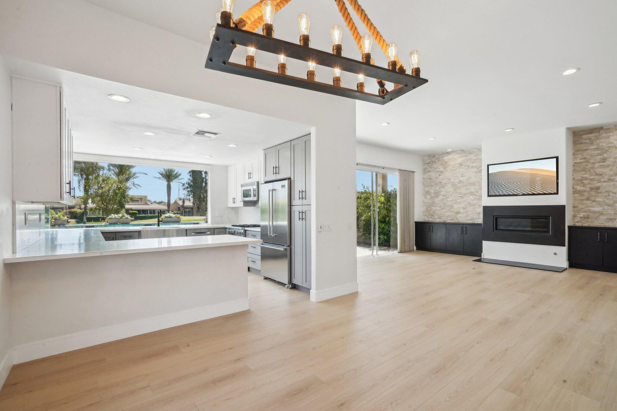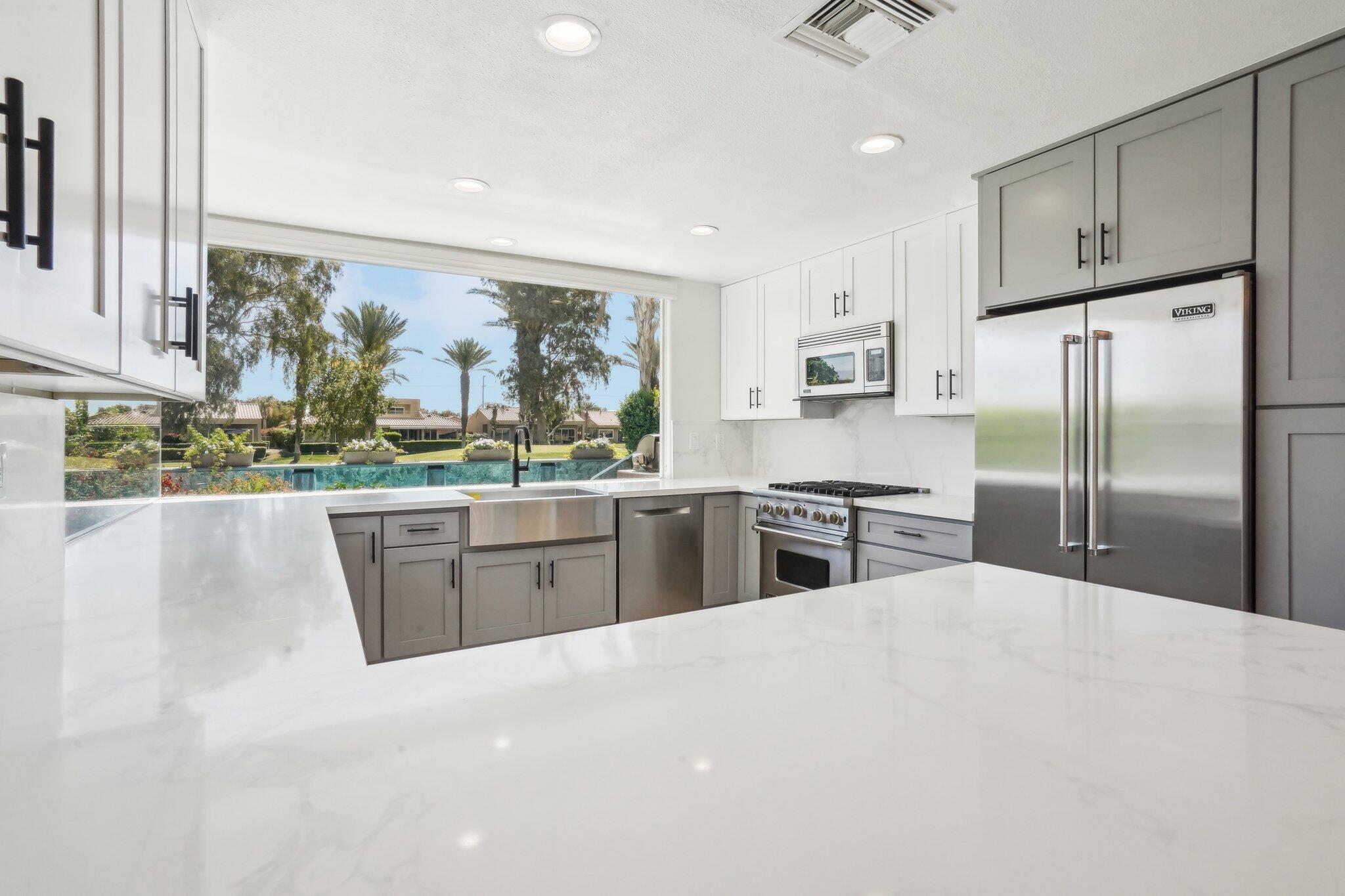 Newly remodeled, move in ready Mission Hills pool home. Sweeping views of the golf course from your premium lot with tee box location. Gorgeous outdoor living space with salt water, heated pool, drought resistant landscape, fire pit, and bbq entertaining area. Inside, new flooring, new kitchen, updated bathrooms, and open spaces. In the kitchen are new cabinets and countertops. Viking appliances, and a view corridor to the pool area and golf course. Living room has tall ceilings, fireplace, stack stone above entertainment cabinets, and sliding doors leading to the patio. Primary is a large bedroom with updated bathroom and guest rooms share an updated guest bath. Three car garage with ample storage. Private, gated entrance. Mission Hills is on of the most prestigious country clubs and golf courses. The home to professional golf tournaments, gorgeous amenities and remodeled club house make it one of the most desirable places to live in the desert.Interested in this Listing?