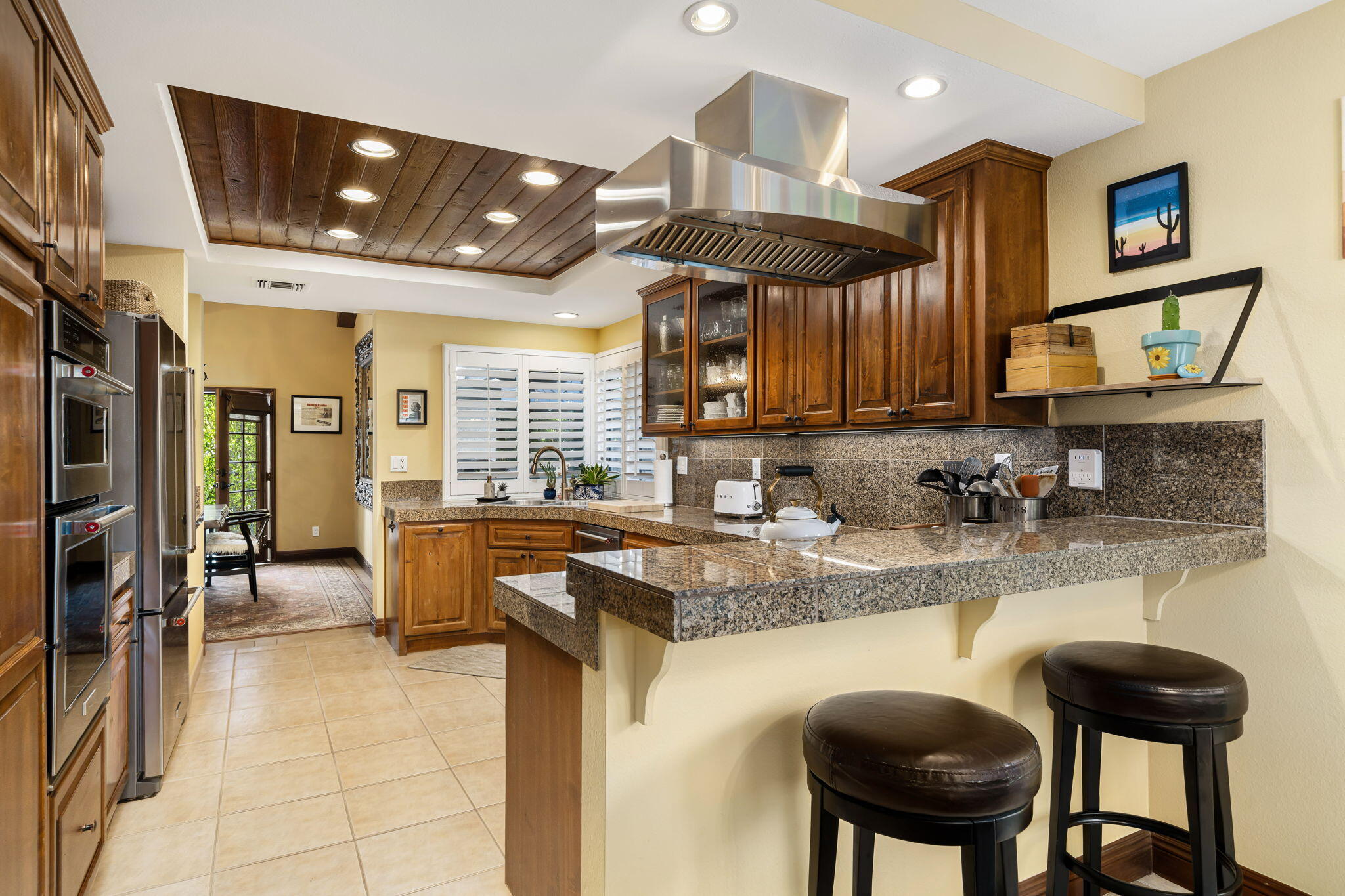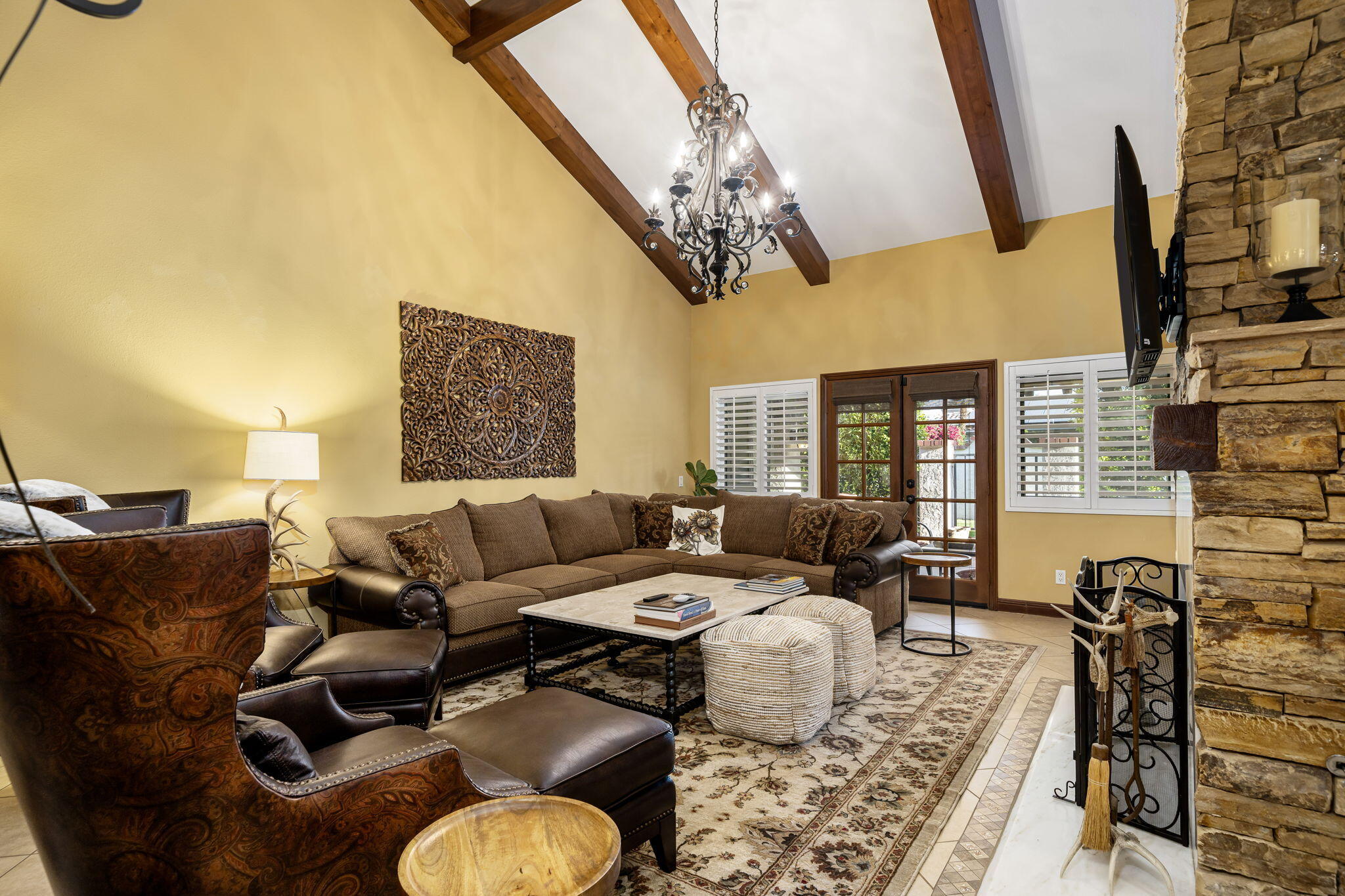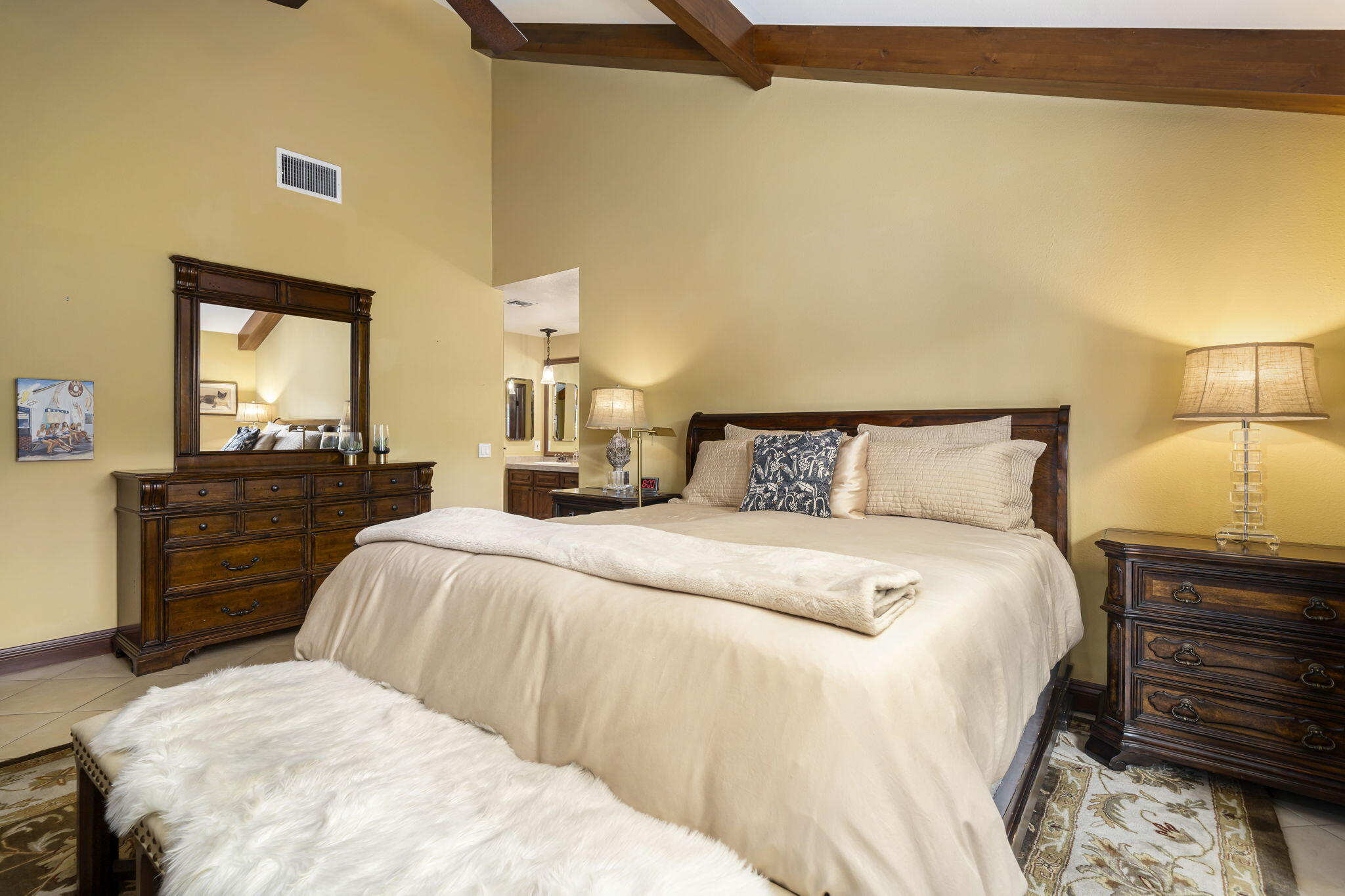 Welcome to your dream desert oasis! Nestled in the serene and sought-after community of Casas De Sevilla, this home offers the perfect blend of luxury, comfort, and nature. Situated on a quiet cul-de-sac, with breathtaking mountain views, this Mediterranean-style gem features three spacious ensuite bedrooms, a separate laundry room, and a beautifully designed kitchen perfect for entertaining.Step through the double doors into a bright and welcoming entryway, with the first bedroom to your left, currently used as a den. To the right, the breakfast nook flows into the chef-inspired kitchen, while the dining area, highlighted by a stunning oversized mirror, creates an inviting space for family gatherings. The sunken living room, featuring French doors and a cozy fireplace, separates the living and dining areas, offering an elegant yet intimate space to relax.The master suite, just down the hall, boasts a large walk-in closet, double vanities, a sunken tub, and direct access to a beautifully landscaped patio--a perfect spot to unwind with a late-night drink while soaking in the desert beauty. The third bedroom offers privacy and comfort, complete with its own bath.But the true heart of this home is the incredible outdoor living space. The magnificent pool and hot tub combination, surrounded by lush plantings, create a private sanctuary. A large built-in BBQ and a cabana provide the ideal setting for dining and entertaining, day or night. Plus, with paid solar and dual-pane windows, this home is energy-efficient and built for modern living.Casas De Sevilla is a tranquil community offering large green spaces, winding roads, four beautiful pools, two tennis courts, and stunning mountain views. Don't miss the opportunity to make this remarkable home your own. Schedule a tour today and experience the beauty and serenity that awaits.Interested in this Listing?