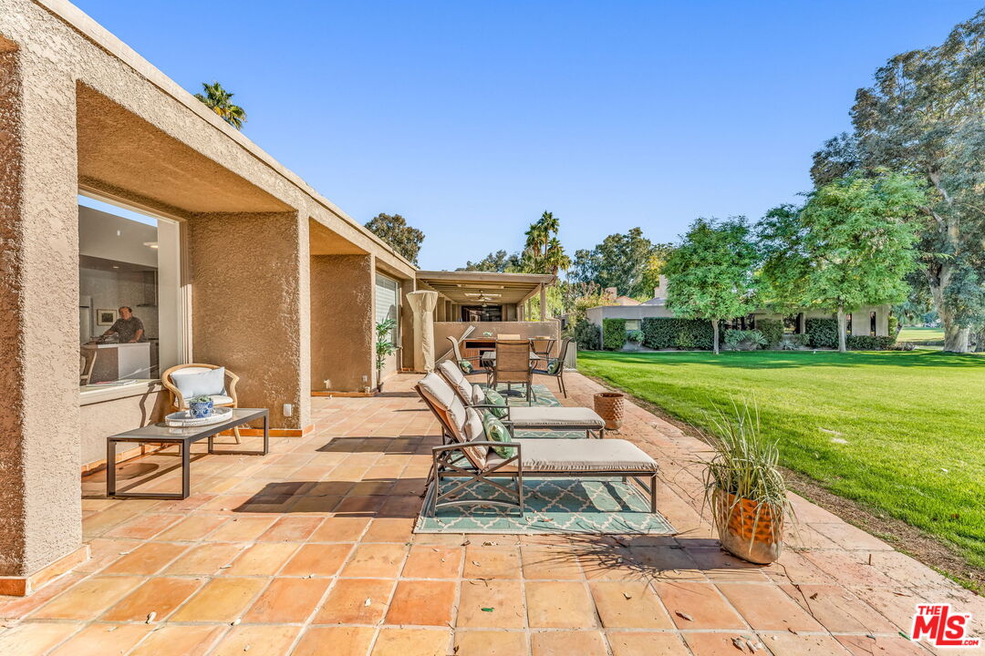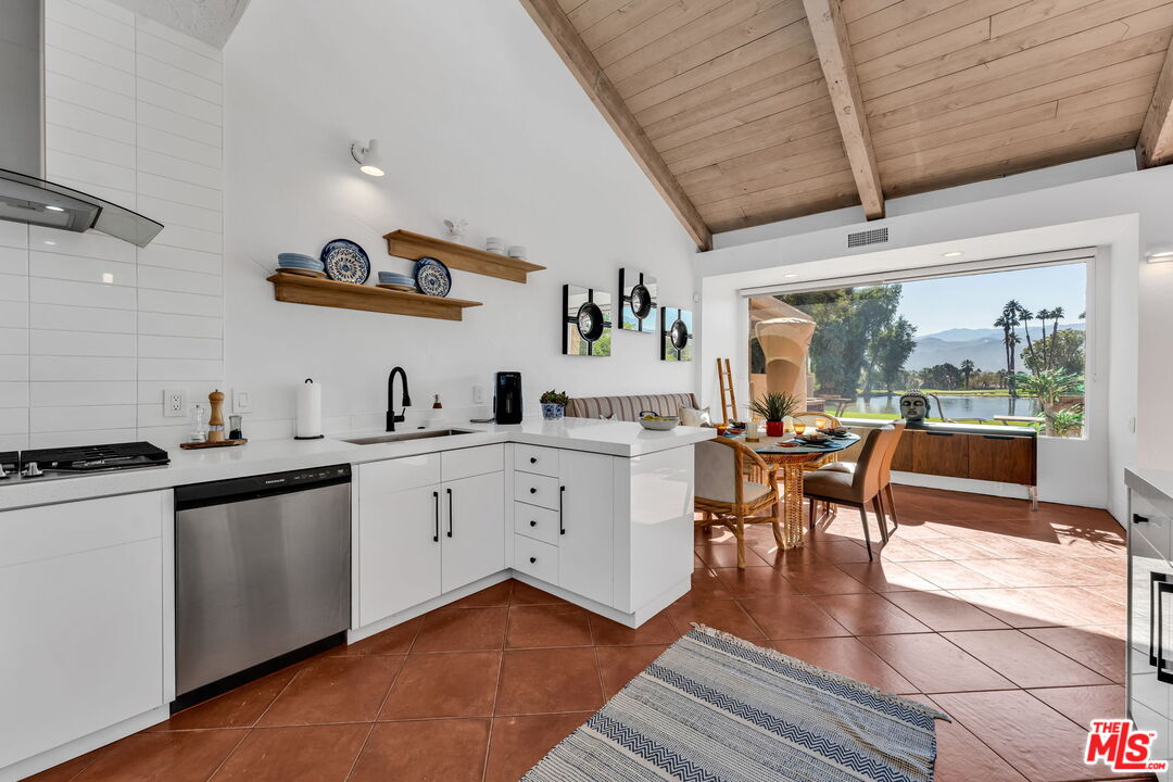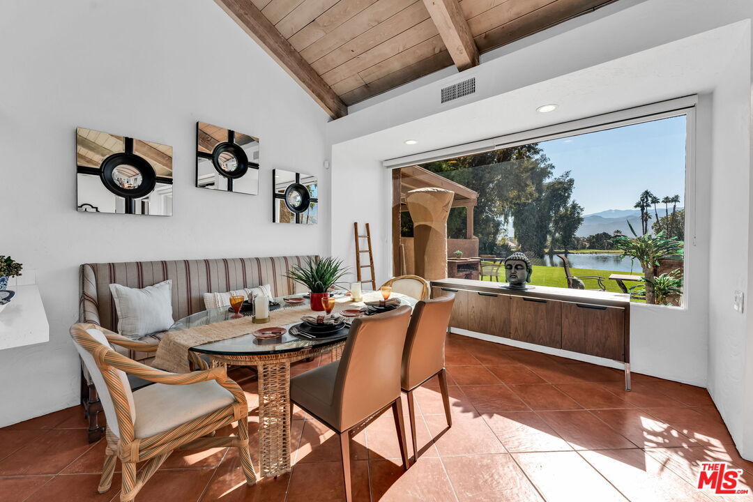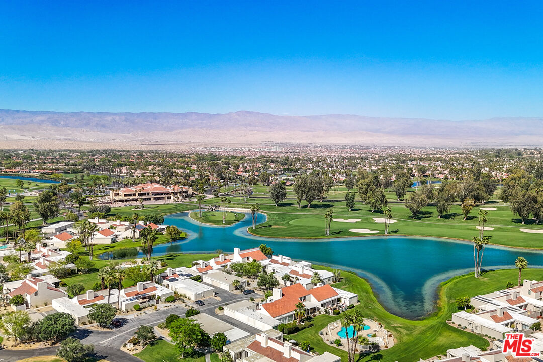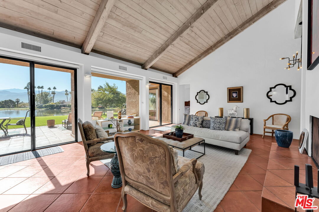 MOTIVATED SELLER! BRING ME AN OFFER!! Prepare to be amazed by the breathtaking southwest-facing views that greet you the moment you step into this remarkable home, set in the picturesque Mission Hills Country Club. Enter through a custom gate into a private courtyard, and let your gaze be drawn through the entry window to the stunning rear yard with its awe-inspiring vistas of the Santa Rosa Mountains, golf course, and tranquil lake. The great room boasts a vaulted wood-beam ceiling and a cozy fireplace, perfect for relaxation. The stylish, modern kitchen features sleek white cabinetry, new quartz counters, a tile backsplash, new stainless-steel appliances, and a breakfast bar with a wine chiller and bar sink, seamlessly opening to the dining room. The dining room's expansive picture window offers a postcard-perfect view. Natural light floods the home through an abundance of doors and windows. The spacious primary suite takes full advantage of the incredible views and provides direct access to the rear patio and expansive open lakefront space. Both guest bedrooms are located on opposite corners of the home and have direct access to the front courtyard for enhanced privacy and independence. The oversized south-facing rear patio, finished with pavers and equipped with a BBQ, is one of the most picturesque settings in the entire country club. The perfect blend of trees, lush grass leading to the lake with a waterfall, the distant golf course, and panoramic mountain views create an idyllic backdrop to this home. The land lease has been extended to 2121, with low payments of just $496 per month. Come home to this one-of-a-kind wonder and experience desert living at its finest! Furnishings are available per inventory and negotiated outside of escrow. Don't let this one get away!Interested in this Listing?