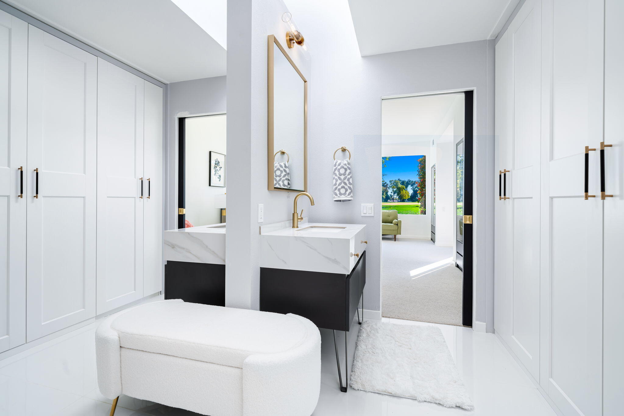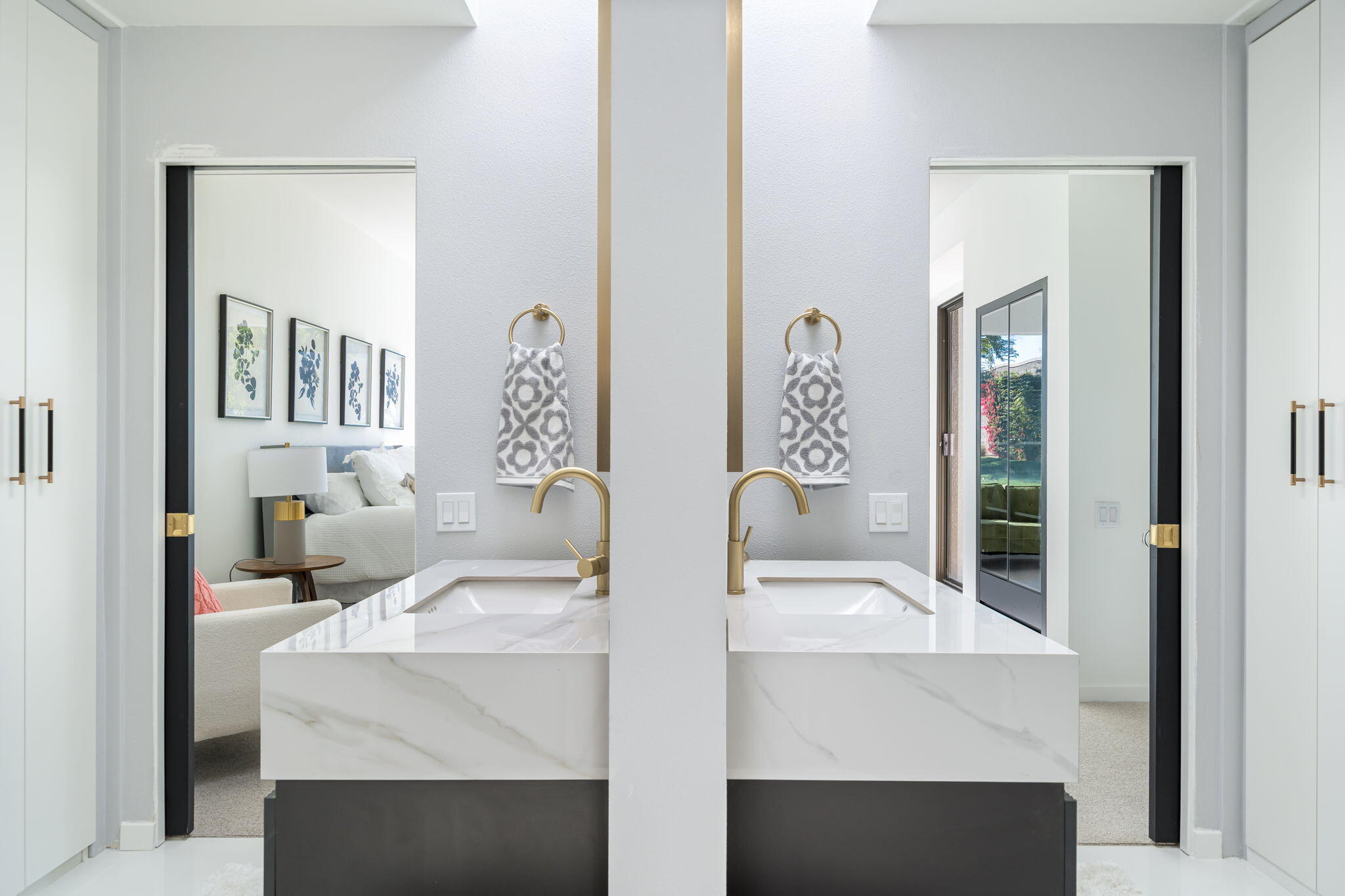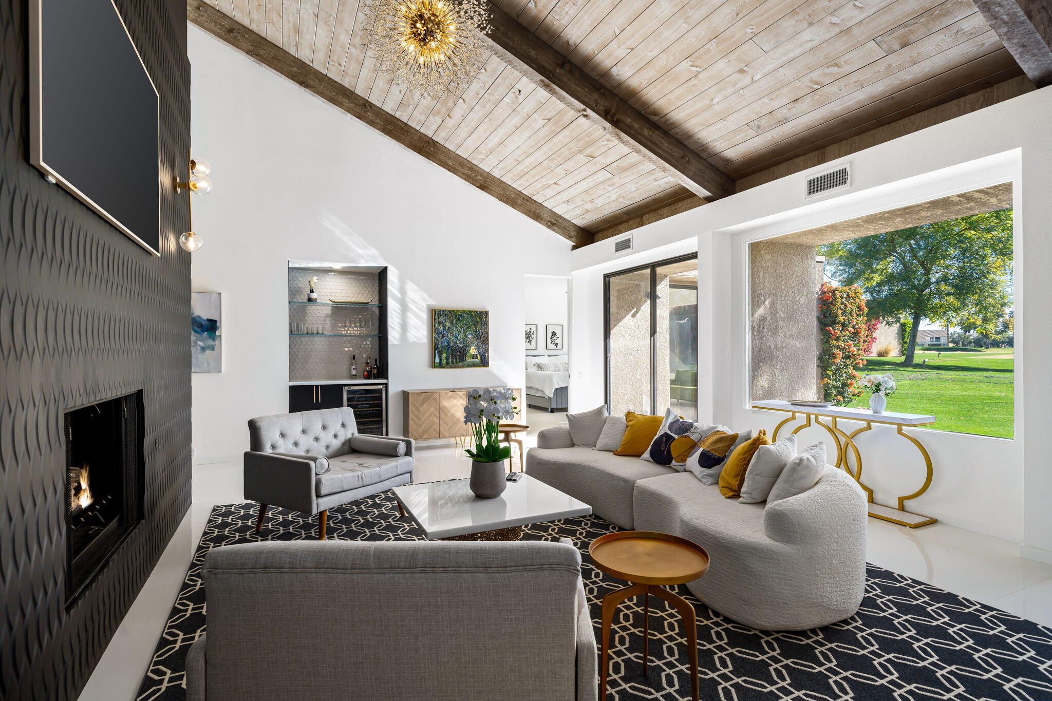Welcome to your dream home, COMPLETELY RENOVATED from top-to-bottom & perfectly situated on the prestigious Mission Hills Golf Course! This stunning property boasts a chef's kitchen that's sure to impress, complete w/ marble countertops, marble feature wall, custom hood fan, large island, all new appliances, including a 48' gas stove & microwave drawer, & ample storage space w/ a wall of pantry cabinetry. The main living area boasts a formal dining room, custom bar area with bar fridge, soaring wood beamed ceilings and a dramatic fireplace feature with beautiful wall sconces and light fixtures. The extra-large white porcelain tiles and wool carpets throughout and the flat ceilings add a luxurious feel to the home. This is truly a perfect home for entertaining! Both the extra-large bedrooms include built in custom closets and both bathrooms have been updated with exquisite design elements. Not only does the home boast a beautiful interior design it also comes with all furniture including the 75' frame TV! Additional features include new washer/dryer, an HOA that provides exceptional value by including premium cable and internet, and a land lease that has been extended until 2121. The end unit features a spacious 2-car garage w/ a golf cart bay and a workshop. While some finishing touches are still being completed, including landscaping, paint touch-ups, and a few minor installations, this home is ready for you to move in!Interested in this Listing?