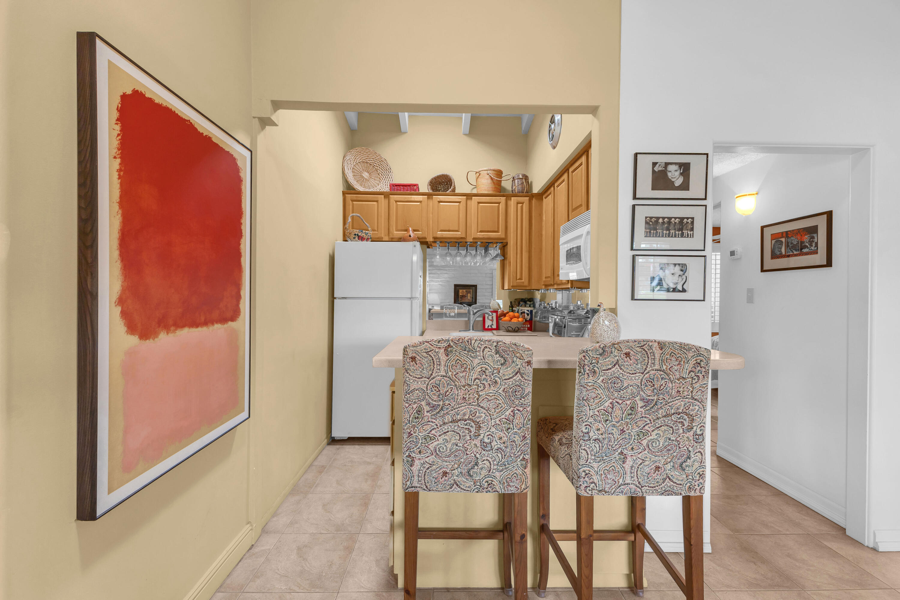 Rarely available and incredibly charming ''dollhouse'' boasting vaulted beamed ceilings, sleek tile flooring and custom features galore. The only unit of this type with 2 bathrooms. You'll love the plantations shutters, cozy outdoor living spaces, 3 skylights, built-in gas wall fireplace and original checkerboard ceiling design in the great room. Located in a quiet location, this one level home with no steps is close but not too close to the pool & spa. The newer mini-split HVAC system is perfect for lower utility bills plus you have your own interior washer & dryer. Each unit has a designated carport with storage above. Situated on over 12 acres Desert Braemar is a low density co-op community, called the 'hidden gem of the desert'. Every amenity is yours including pool/spa, gym, library, workshop, tennis/pickleball, putting green, lawn bowling, shuffleboard, clubhouse with amazing kitchen and terrace, on site manager M-F. Your co-op monthly fee includes all amenities, maintenance, water, sewer, trash, Spectrum high speed internet plus cable including HBO and Showtime AND YOUR PROPERTY TAXES! Snap it up! Desert Braemar is a Stock Cooperative and each owner is issued a 'stock certificate granting a specific number of shares of the complex with exclusive use of a particular unit. Cash sales only. Better hurry on this one before it gets away!Interested in this Listing?