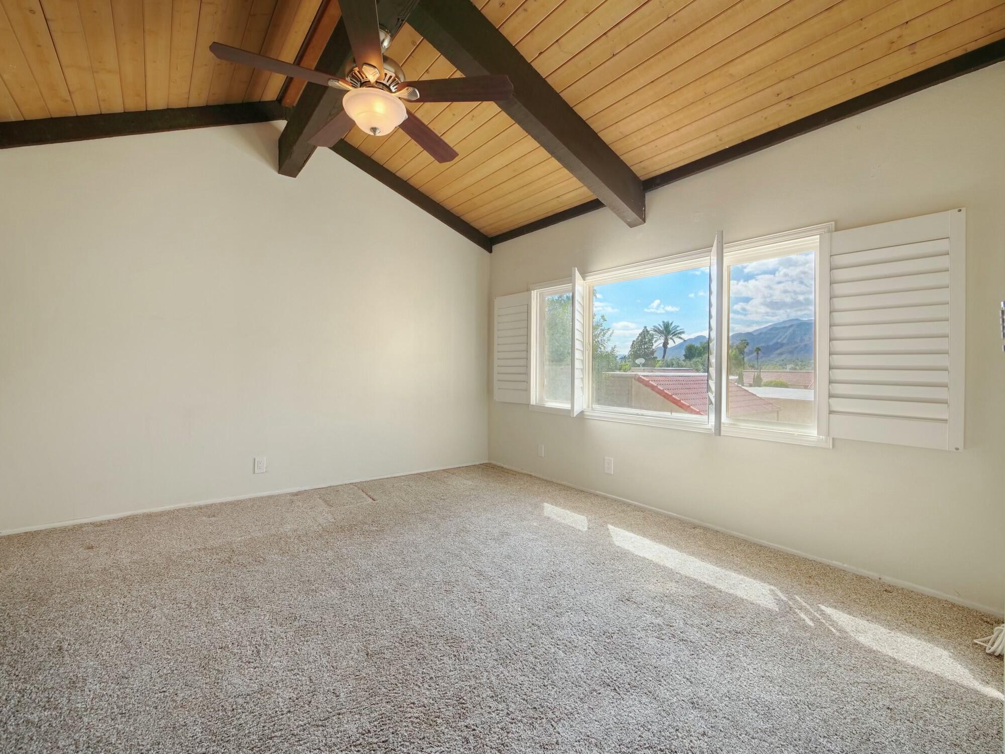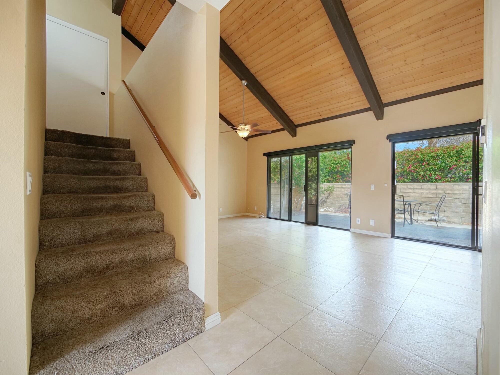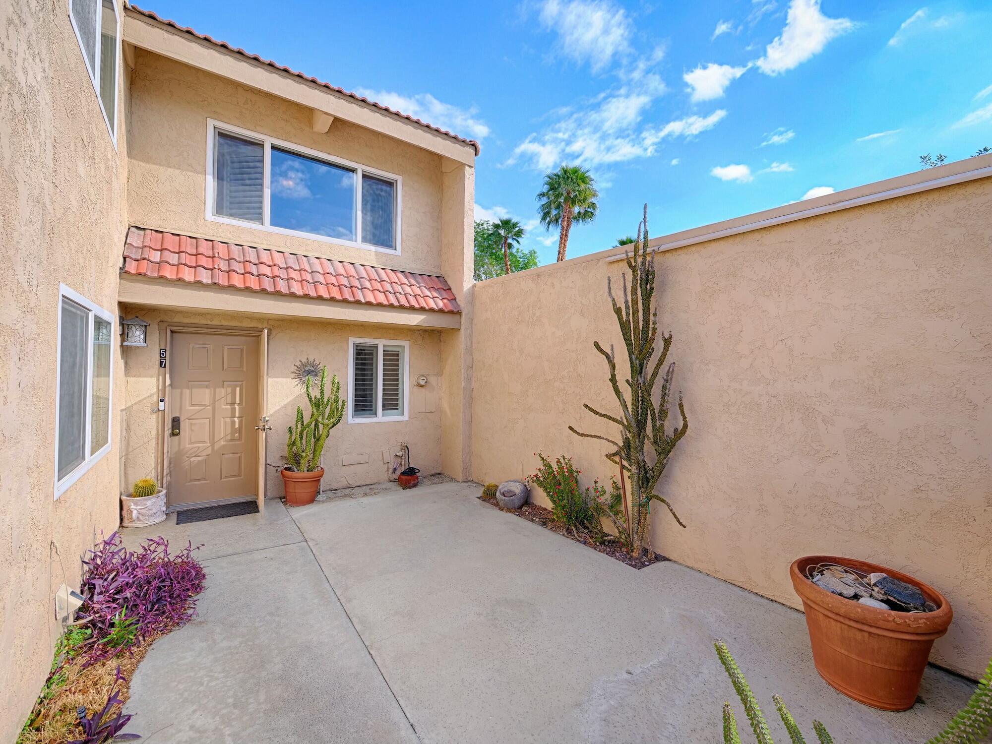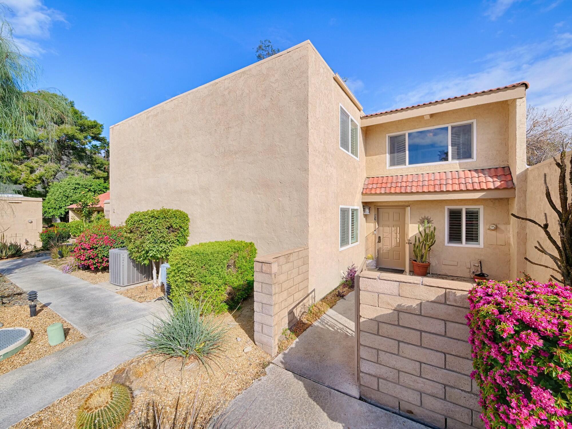 Welcome to Small Mountain, A hidden Gem in Rancho Mirage! This quiet quaint community consists of only 70 homes and is a very desirable complex where units rarely come on the market. This unit is an open canvas waiting to be discovered...there are 3 beds 2 baths and a huge great room with high vaulted wood slatted ceilings, open to a loft and a private courtyard. There is a full bath and bedroom on the main level and 2 bed 1 bath on the second floor. Inside laundry room with plenty of storage. There's also a front patio with great mountain views and a 2 car garage. There are 2 pool and spas and tennis courts. HOA covers buildings and roofs , cable Tv, sewer and trash. Don't miss out on this little Gem! Call for your private showing today.Interested in this Listing?