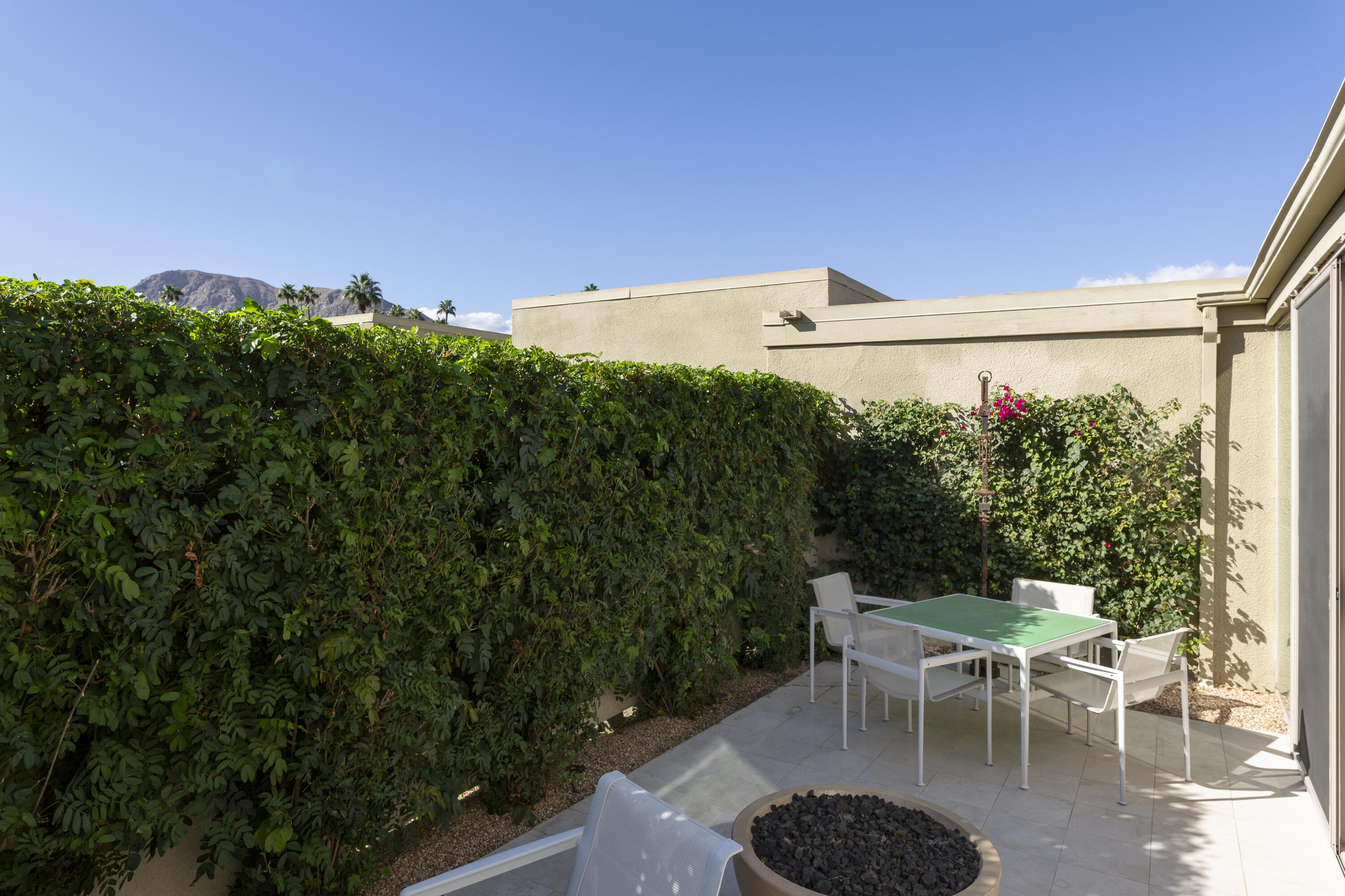 Price Improvement!!!!!!!!! This updated Tamarisk Gardens home is an elegant, sophisticated and timeless gem. Built in 1966 and designed by architects McCarthy and Hartfelder it is 1 of only 28 condominium homes, located adjacent to and steps away, from the Tamarisk Country Club with dedicated, gated access for members. Open, light filled floorplan with two main suites, each with a walk-in closet, plus a large den/office combine to make this home a delight. There are two updated baths and generous closet space throughout the entire homeThe chef's kitchen was previously updated with top-of-the-line Wolf, SubZero and Bosch appliances. It includes a wine refrigerator and breakfast bar.The large living room shares a 2-way gas fireplace with a breakfast/family area adjacent to the kitchen.The home opens onto private, south facing patio with mountain views and evening lighting. High ceilings, multiple skylights and interior windows flood the home with light. The home also offers art lighting, dimmers and ceiling fixtures to create the perfect mood for evening entertainment. There is a stacked laundry, leased solar with favorable rates, and electric window coverings. Assigned carport and an additional dedicated parking space is included. There is also plenty of guest parking. The grounds are impeccably maintained, with a community pool and spa which are steps from this home. Most of the furniture is available outside of escrow, per inventory, and could be offered partially furnished (artwork and some sellers' pieces will be excluded). Buyers and their agents are to conduct thorough investigates regarding the property and verify any information regarding this property.Interested in this Listing?