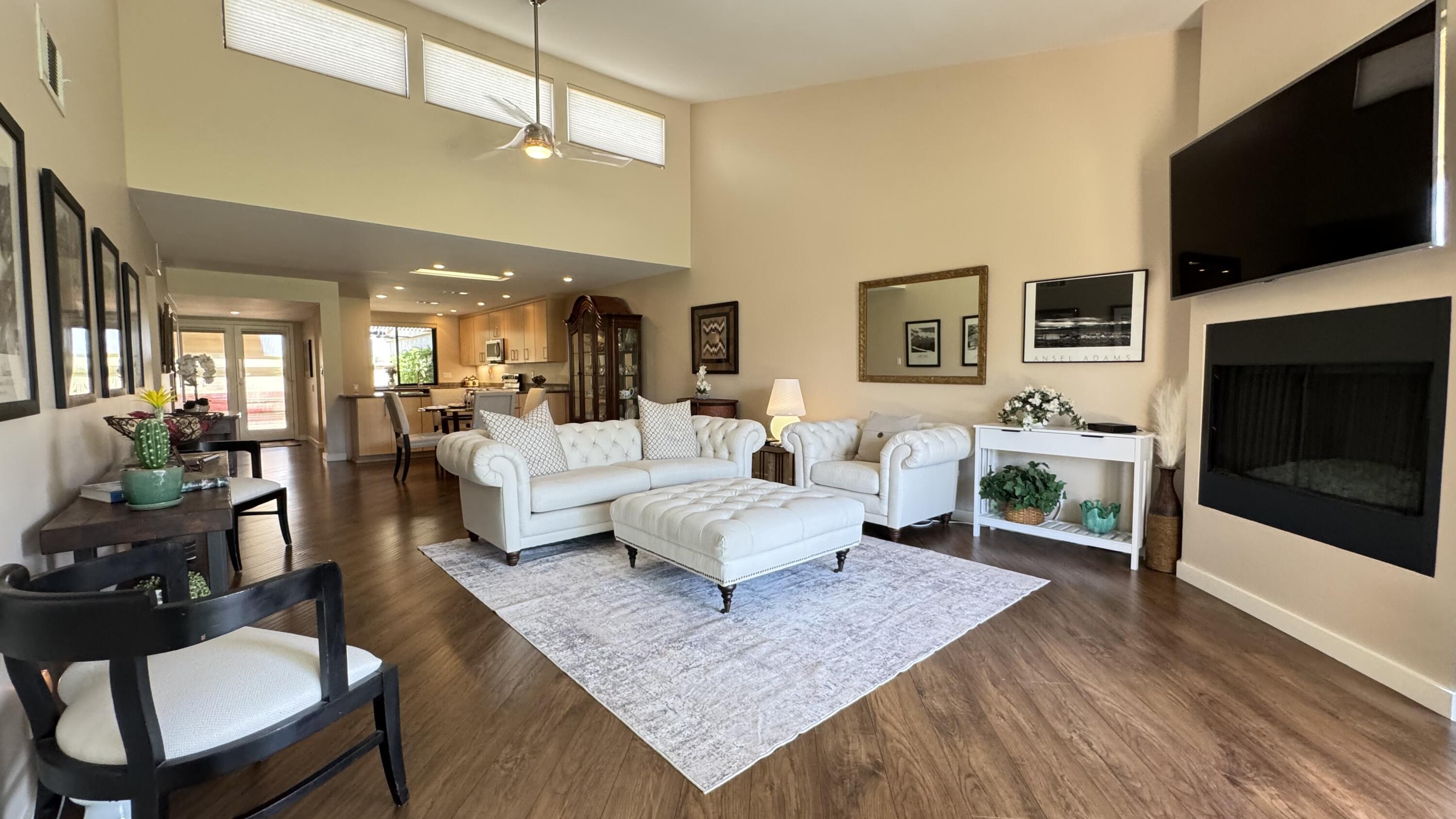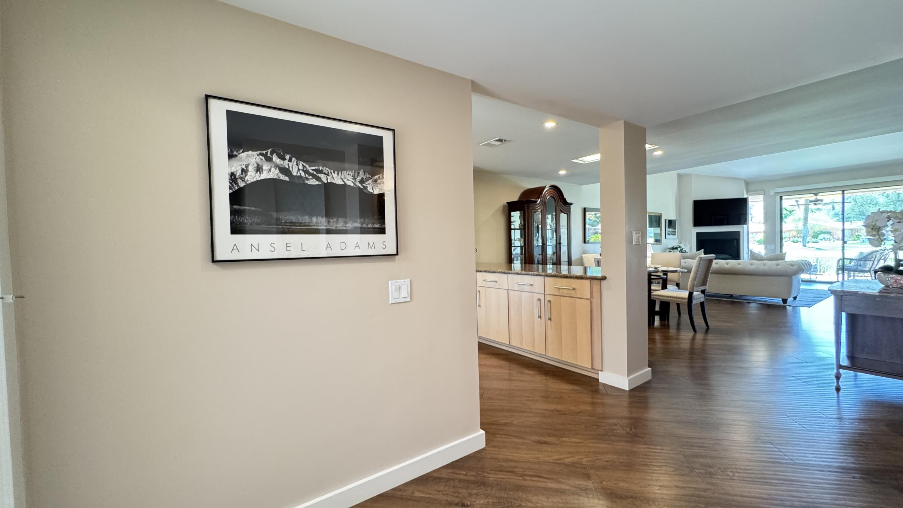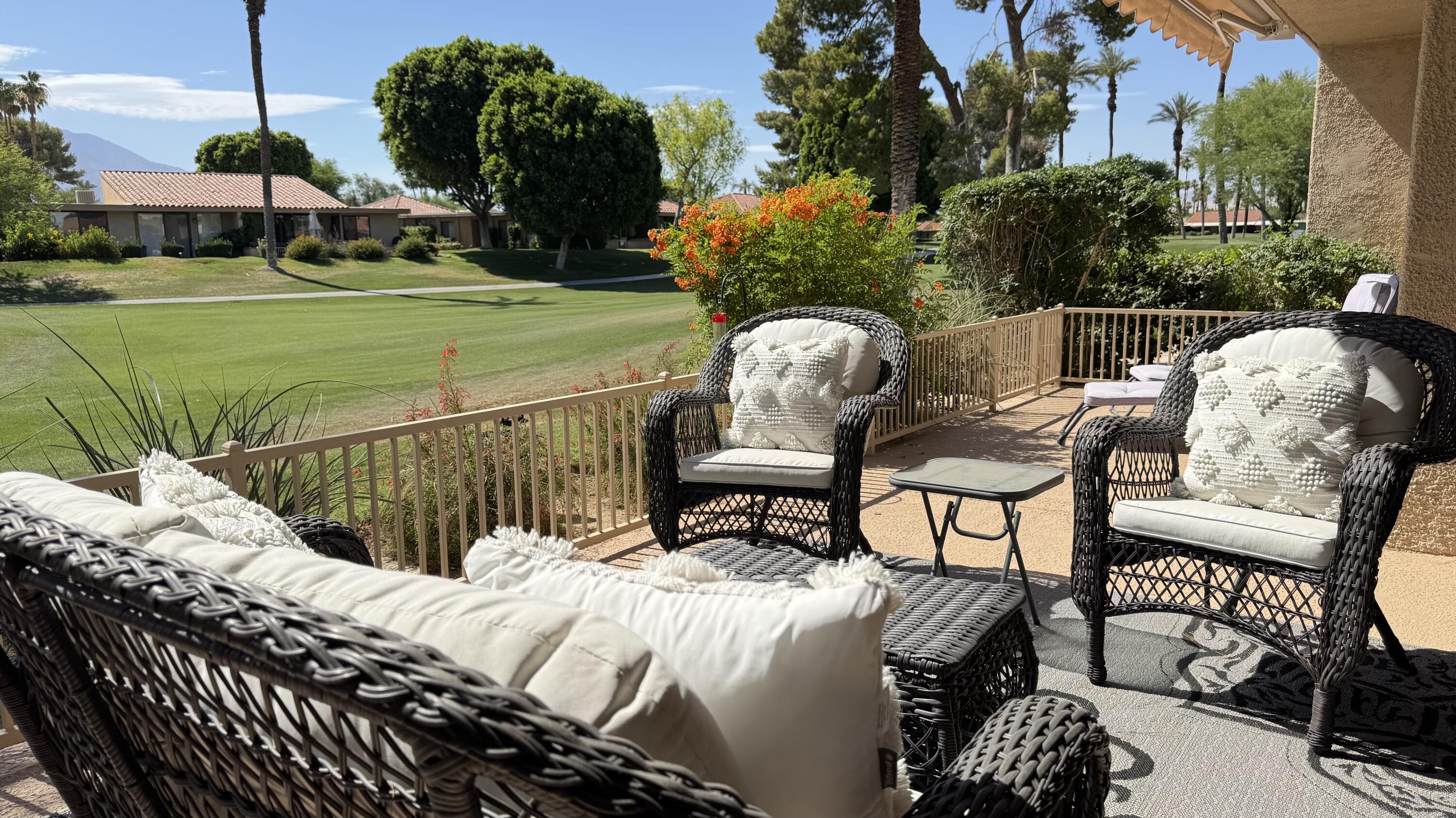 Welcome to this bright, thoughtfully remodeled Modified La Paz open floor plan, offering 3 bedrooms, 2.5 bathrooms, indoor laundry and stunning mountain views --all in the sought-after Sunrise Country Club in Rancho Mirage. Inside, you'll find two spacious primary suites, each with updated ensuite bathrooms and large closets along with a versatile third bedroom/den that features a stylish built-in desk and a sleeper sofa that converts to a full size bed--perfect for guests. A powder room has also been added for convenience. The open-concept kitchen has been fully renovated with KraftMaid soft-close cabinetry, granite countertops, and modern stainless steel LG appliances (just four years old), including a french door refrigerator, glass-ceramic electric stovetop with convection/air fry oven, dishwasher, and microwave. Built-in trash and recycling bins offer added functionality, and extra cabinetry provides ample storage. The kitchen seamlessly connects to the living room, where you'll find a cozy built-in fireplace and expansive western views of the San Jacinto Mountains. Step outside to your back patio and enjoy watching the action on the 11th green--an ideal spot for entertaining or relaxing at sunset. Additional features include upgraded carpeting in two primary bedrooms, luxury vinyl plank flooring in the main living areas, and a front courtyard with charming pergola, perfect for enjoying your morning coffee. The attached garage includes cabinetry and an epoxy-coated floor. Located within Sunrise Country Club--a private, gated community--residents enjoy access to resort-style amenities including multiple pools, and spas, golf course, tennis and pickleball courts, bocce ball, a fitness center, clubhouse with billiards, full-service restaurant, casual bar, and poolside grille. With 24-hour security and a central location close to shopping, dining, and entertainment, this home offers both luxury and lifestyle. Offered partially furnished. Don't miss your chance to oInterested in this Listing?