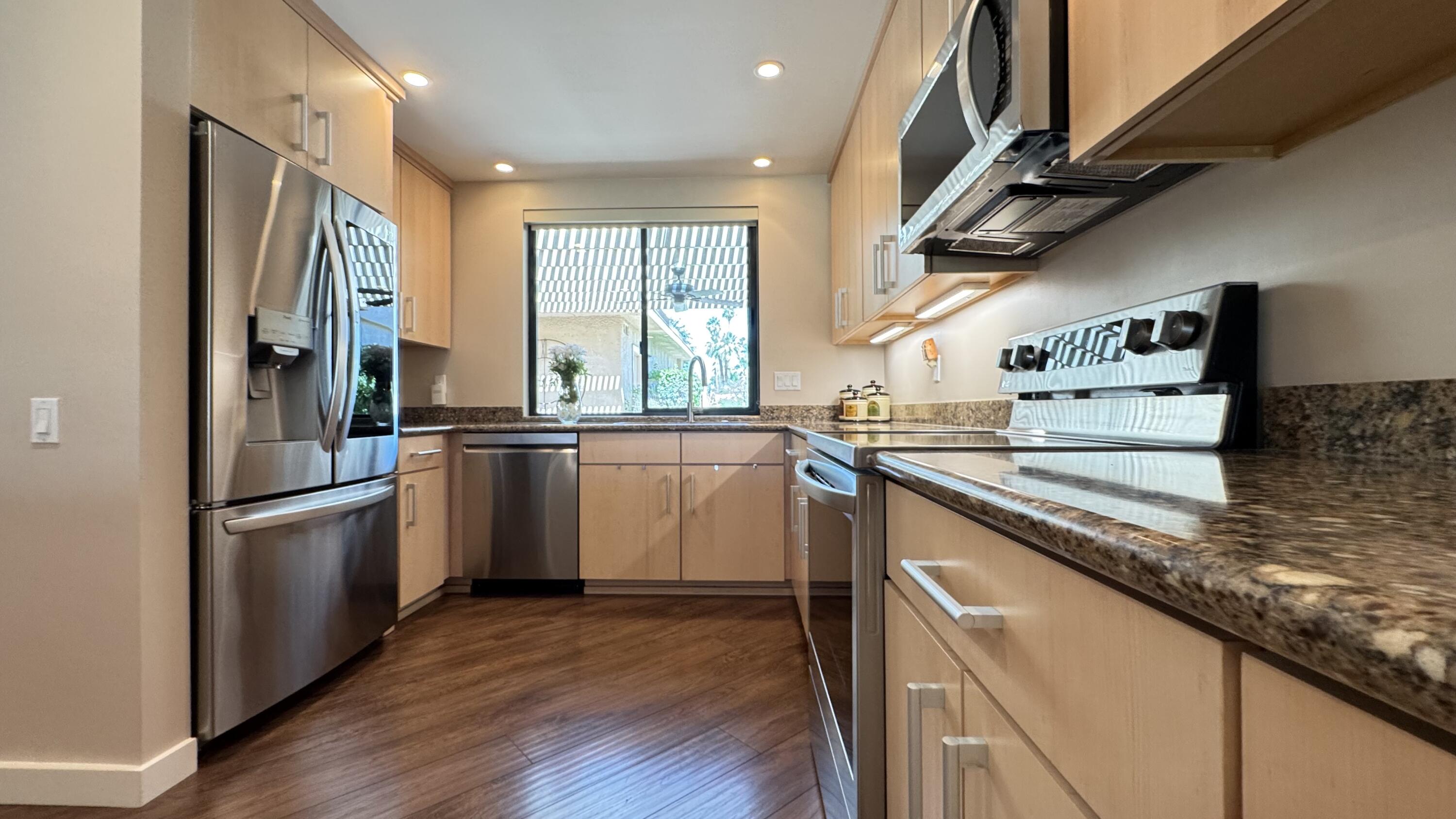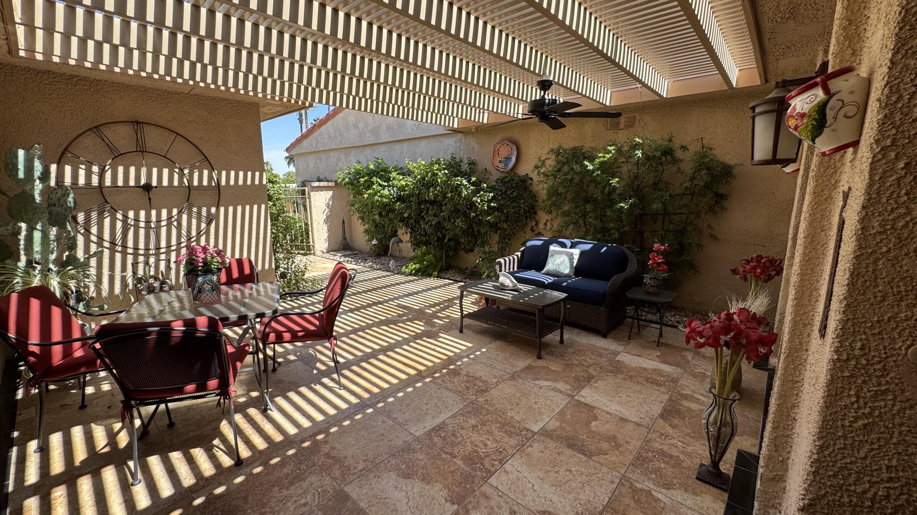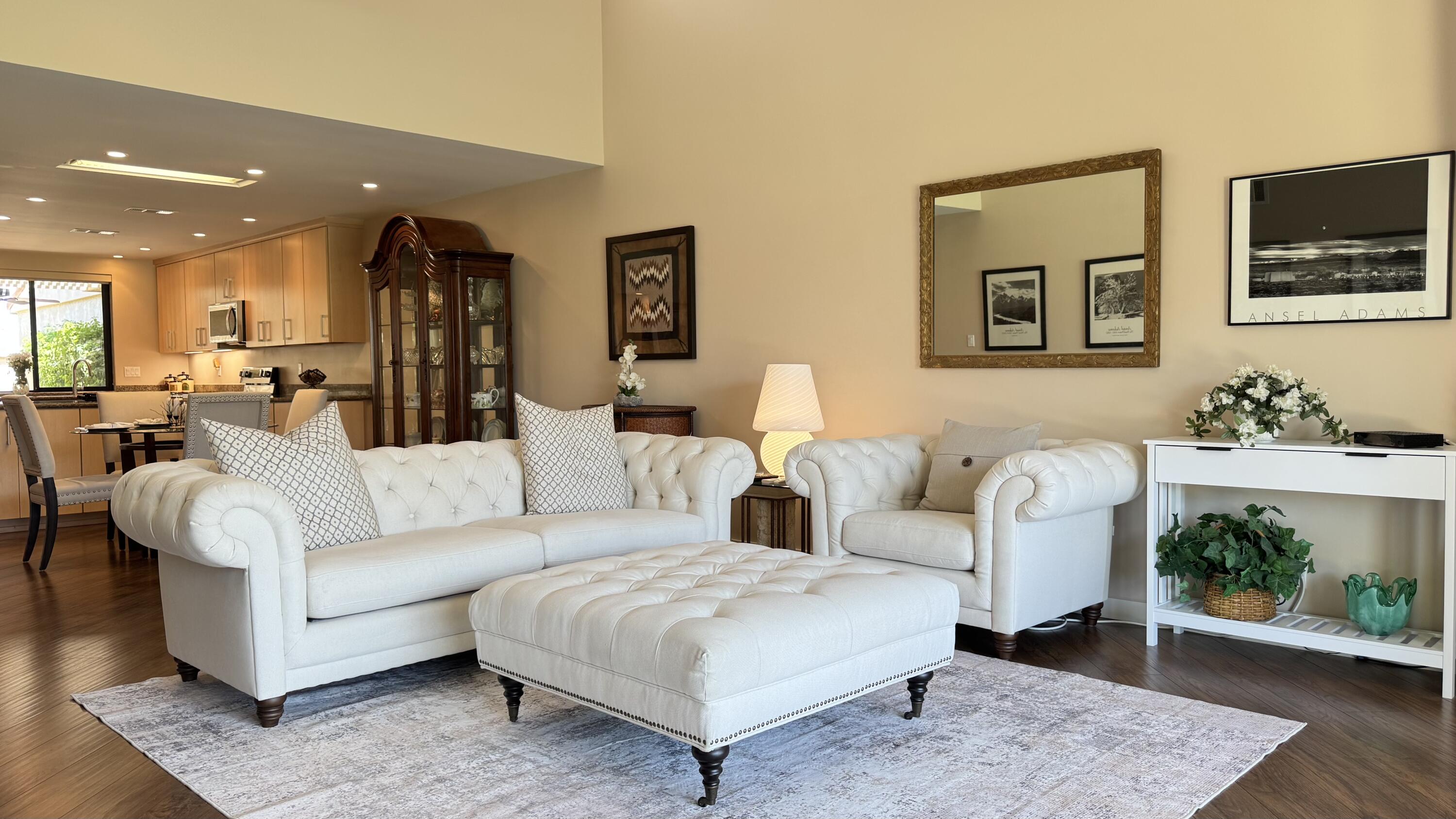 Welcome to this bright, thoughtfully remodeled Modified La Paz open floor plan, offering 3 bedrooms, 2.5 bathrooms, indoor laundry and stunning mountain views --all in the sought-after Sunrise Country Club in Rancho Mirage. Inside, you'll find two spacious primary suites, each with updated ensuite bathrooms and large closets along with a versatile third bedroom/den that features a stylish built-in desk and a sleeper sofa that converts to a full size bed--perfect for guests. A powder room has also been added for convenience. The open-concept kitchen has been fully renovated with KraftMaid soft-close cabinetry, granite countertops, and modern stainless steel LG appliances (just four years old), including a french door refrigerator, glass-ceramic electric stovetop with convection/air fry oven, dishwasher, and microwave. Built-in trash and recycling bins offer added functionality, and extra cabinetry provides ample storage. The kitchen seamlessly connects to the living room, where you'll find a cozy built-in fireplace and expansive western views of the San Jacinto Mountains. Step outside to your back patio and enjoy watching the action on the 11th green--an ideal spot for entertaining or relaxing at sunset. Additional features include upgraded carpeting in two primary bedrooms, luxury vinyl plank flooring in the main living areas, and a front courtyard with charming pergola, perfect for enjoying your morning coffee. The attached garage includes cabinetry and an epoxy-coated floor. Located within Sunrise Country Club--a private, gated community--residents enjoy access to resort-style amenities including multiple pools, and spas, golf course, tennis and pickleball courts, bocce ball, a fitness center, clubhouse with billiards, full-service restaurant, casual bar, and poolside grille. With 24-hour security and a central location close to shopping, dining, and entertainment, this home offers both luxury and lifestyle. Offered partially furnished. Don't miss your chance to oInterested in this Listing?