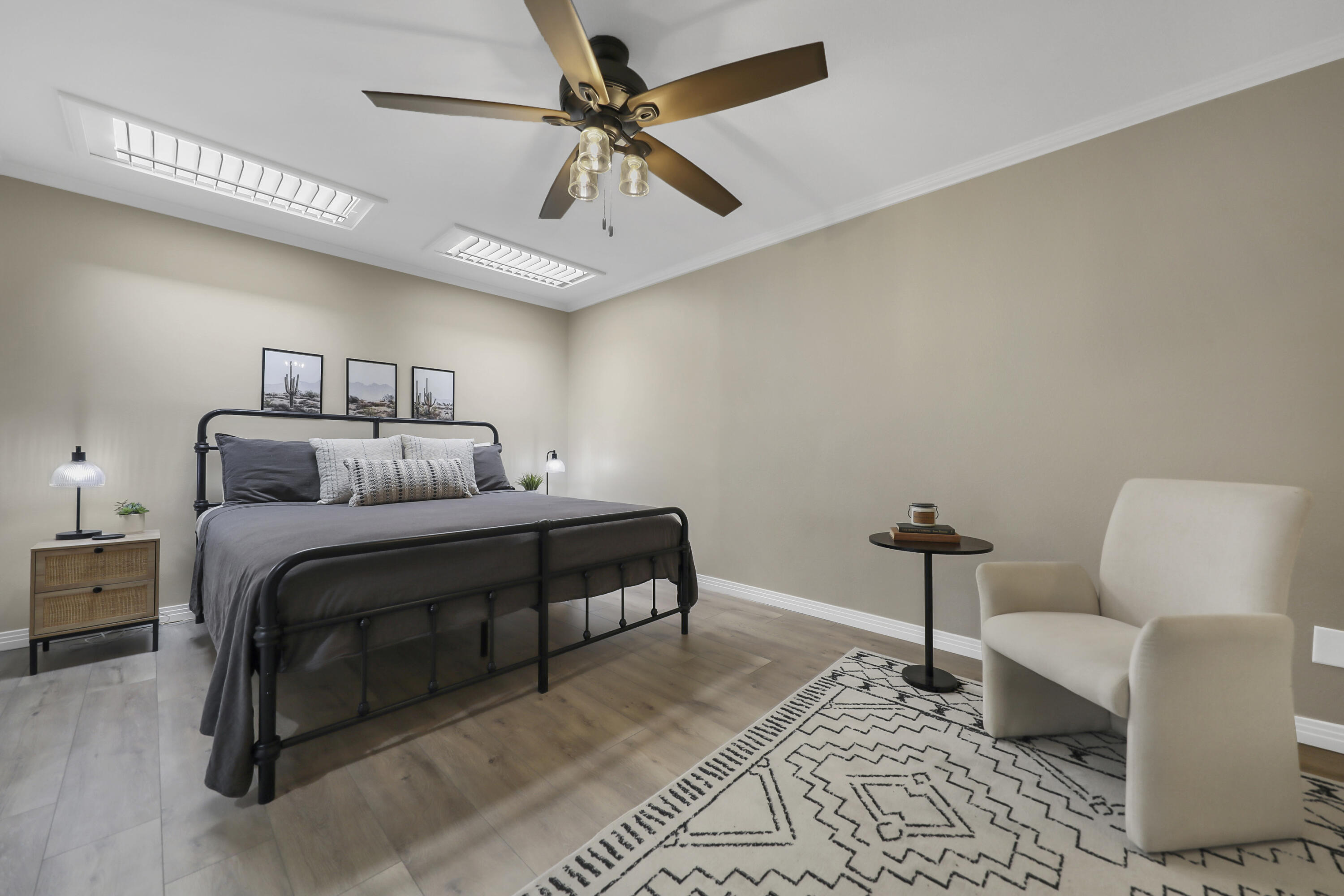 Experience Luxurious Desert Living.The condo is situated on the par 4, 14th hole of the prestigious Sunrise Country Club, offering unparalleled views of the lush greens and tranquil mountain surroundings. The spacious 3-bedroom, 2-bathroom layout provides ample living space and versatility for various needs. The home has been meticulously renovated, featuring a sleek, modern kitchen with high-end granite countertops and soft-close cabinetry, as well as laminate flooring throughout the living space adding a touch of sophistication.The bathrooms are designed with refined finishes and elegant fixtures, offering a serene and luxurious escape. The primary suite provides comfort and privacy, complete with a private bathroom and generous closet space. The high ceilings and open layout allow for an abundance of natural light, creating a bright and welcoming ambiance throughout the home. Sunrise Country Club offers a wealth of amenities, including a championship golf course, multiple community pools, tennis courts, pickleball, and a state-of-the-art fitness center, ensuring a vibrant and active lifestyle. The unique location of the condo affords breathtaking east-facing views of the fairway and picturesque mountains, perfect for relaxation and entertaining.Interested in this Listing?