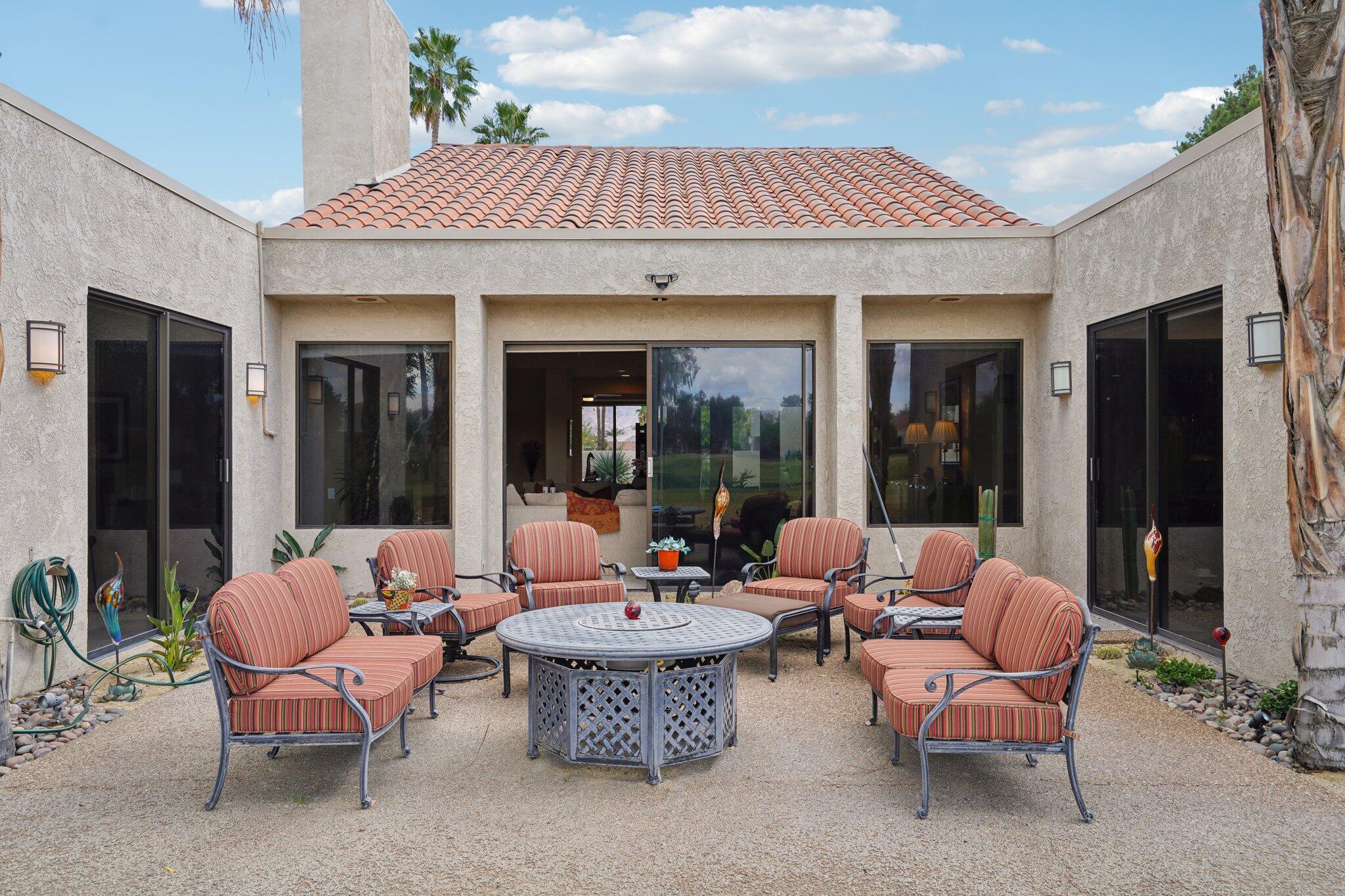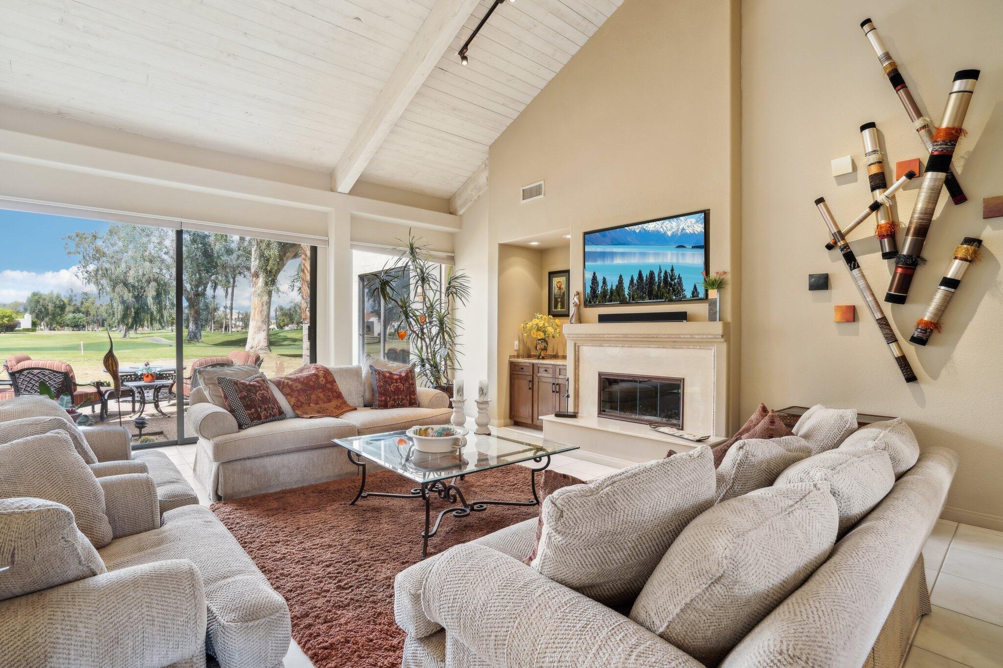 New Luxury Condo Listing - Perfect Blend of Comfort & Elegance in Mission Hills Country Club.Step into this stunning 3-bedroom, 3-bathroom condo with a dedicated office space, offering 3,489 sq ft of immaculate living. This spacious home features an inviting double glass door entry that leads into a private south-facing courtyard, perfect for enjoying sunny days and tranquil evenings.Key Features: Breathtaking Views: Overlooking the lush fairways of Palmer Golf Course (holes 2 & 3), your own personal slice of paradise awaits. Elegant Interiors: Experience vaulted wood beam ceilings, tile flooring throughout, and cozy fireplaces in both the living room and family room. Gourmet Kitchen: The heart of the home boasts granite slab counter tops, stainless steel appliances, pendant lighting, and a spacious island. Private Retreat: The layout offers exceptional separation of bedrooms for ultimate privacy. The separate laundry room and formal dining room complete the luxurious living experience. Low-Maintenance Living: Enjoy the easy upkeep of desert landscape and epoxy garage floors with extra storage and parking for your golf cart in the 2-car garage. There is a private outdoor kitchen offering a built-in BBQ, cook top and island with seating ideal for outdoor entertaining. Peace of Mind: Recently updated with a NEW A/C units, new water heater and PAID SOLAR. Plus, the lease has been extended until 2121, ensuring years of worry-free ownership.Experince desert living in this move-in ready condo that combines style, comfort, and functionality in one of the most sought-after communities.Interested in this Listing?