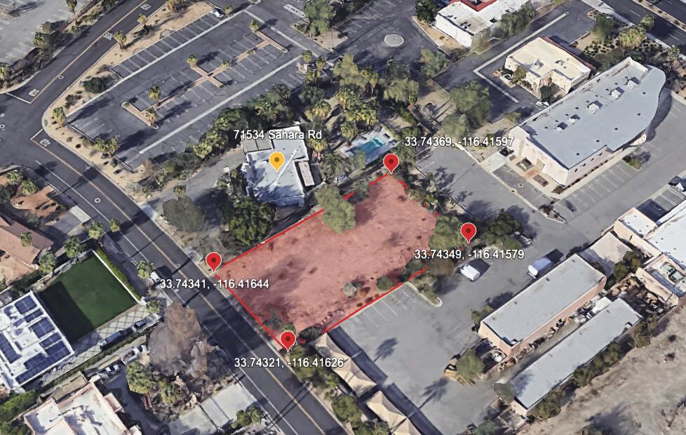 Property Description for Sahara Rd, Rancho Mirage, CA 92270 (APN 684-232-032):Prime development opportunity in the heart of Rancho Mirage! This flat lot, located adjacent to 71534 Sahara Rd, boasts a District 4 Neighborhood Commercial zoning designation, offering versatile potential for a variety of uses. With frontage on Sahara Rd, the property is ideally positioned for office uses to the rear (west), aligning with its zoning intent to serve the needs of Rancho Mirage and the surrounding neighborhood.This zoning allows for neighborhood commercial developments, such as offices, small-scale retail, and service businesses tailored to local residents. Additionally, residential development is permitted as a secondary use, providing an excellent opportunity for mixed-use projects that combine commercial functionality with residential living.Seize this chance to create a development that complements the charm and convenience of Rancho Mirage living. Contact us today for more details!****No soils reports, surveys, etc., have been done. Buyer and buyer's agent to verify all information with the city or county for allowable uses and requirements and rely on their own investigations. **Buyer responsible for checking zoning, utilities, permits and exact property boundaries. ****Interested in this Listing?