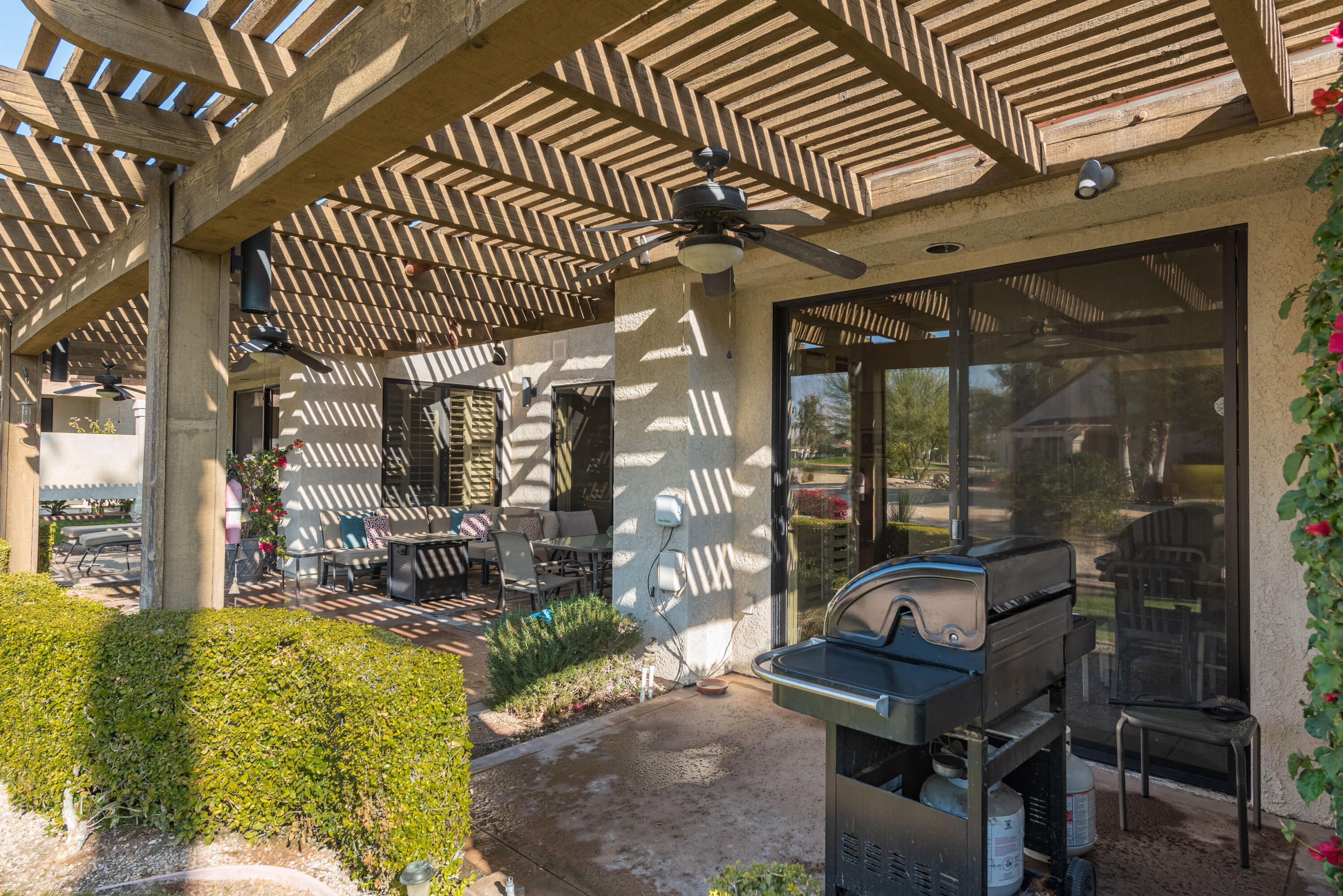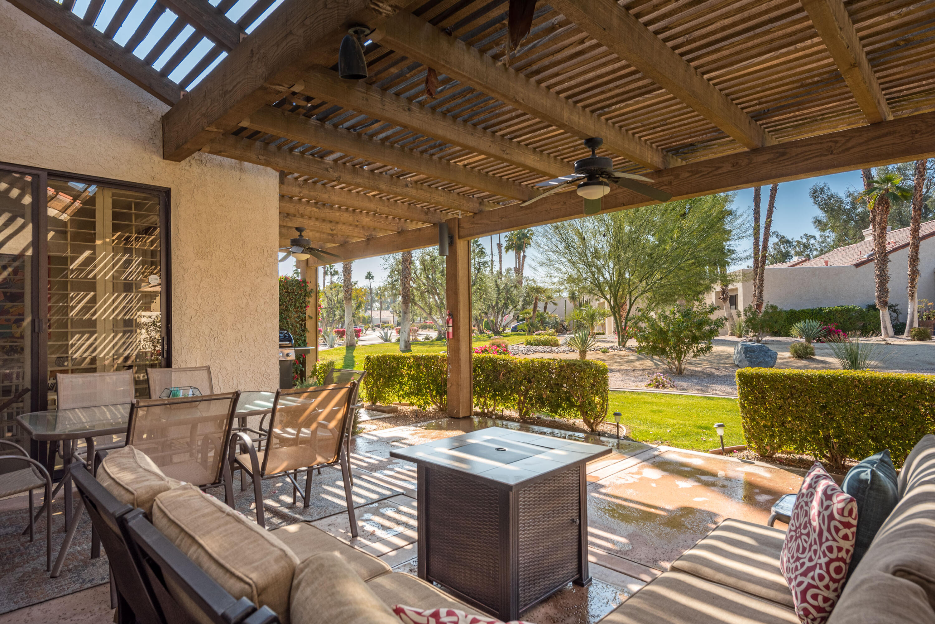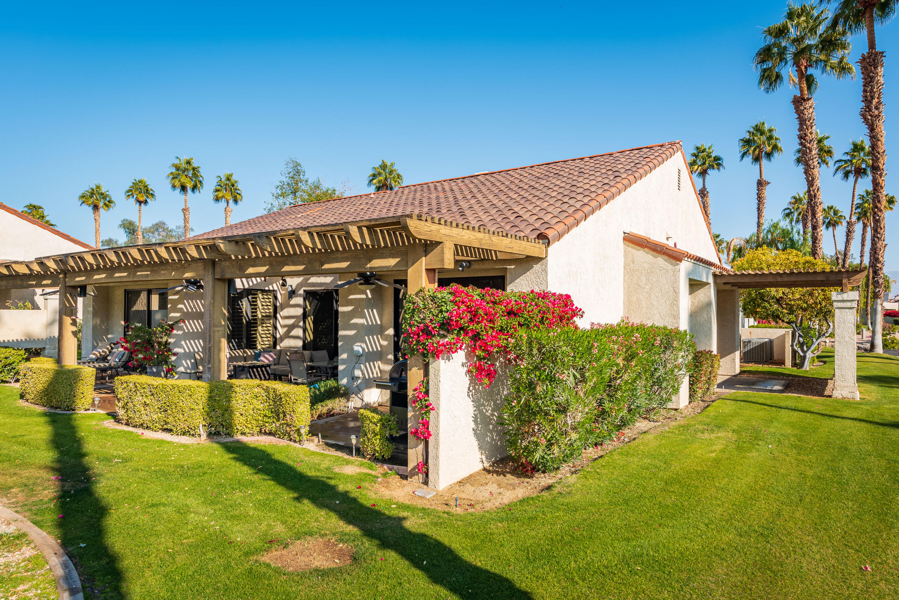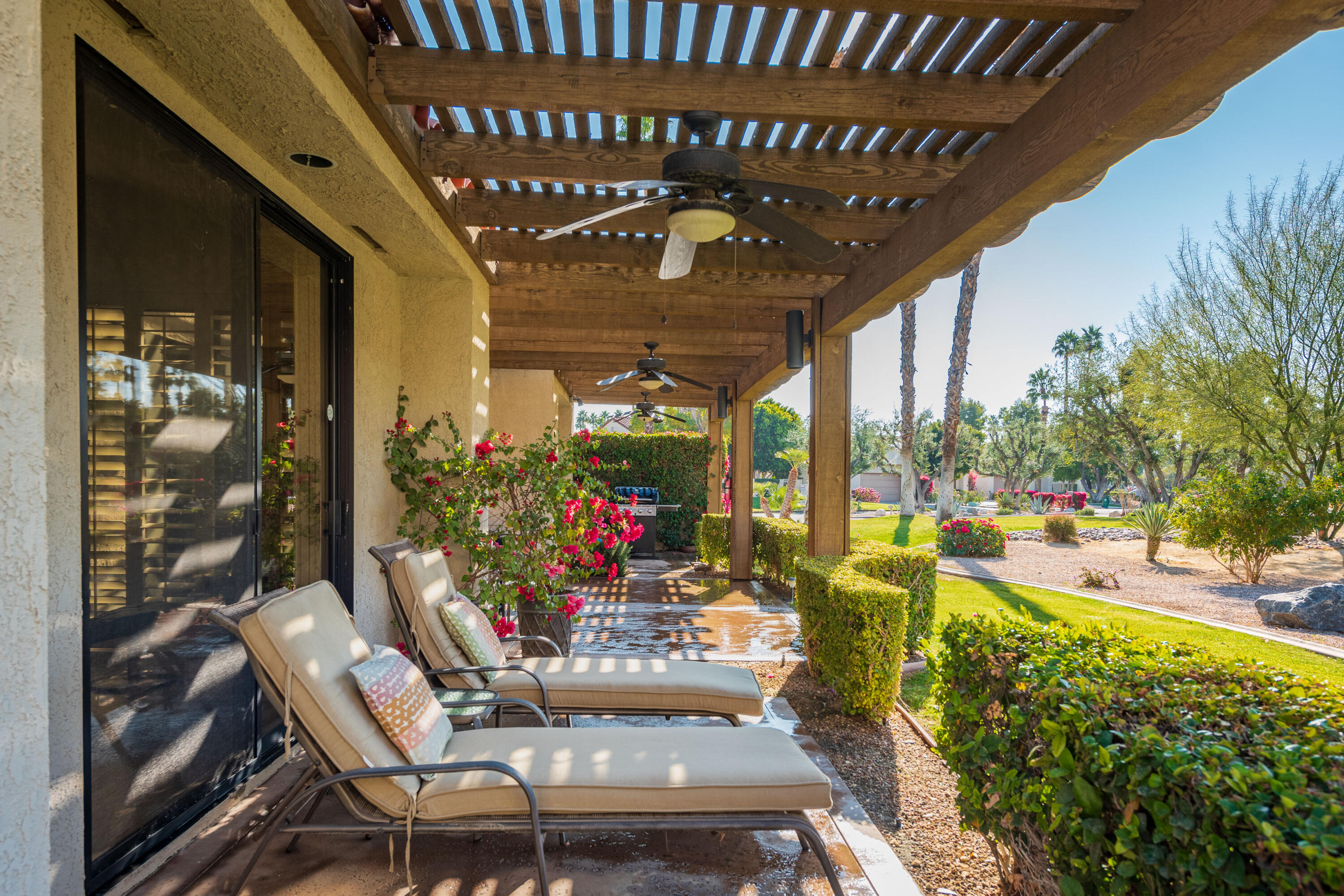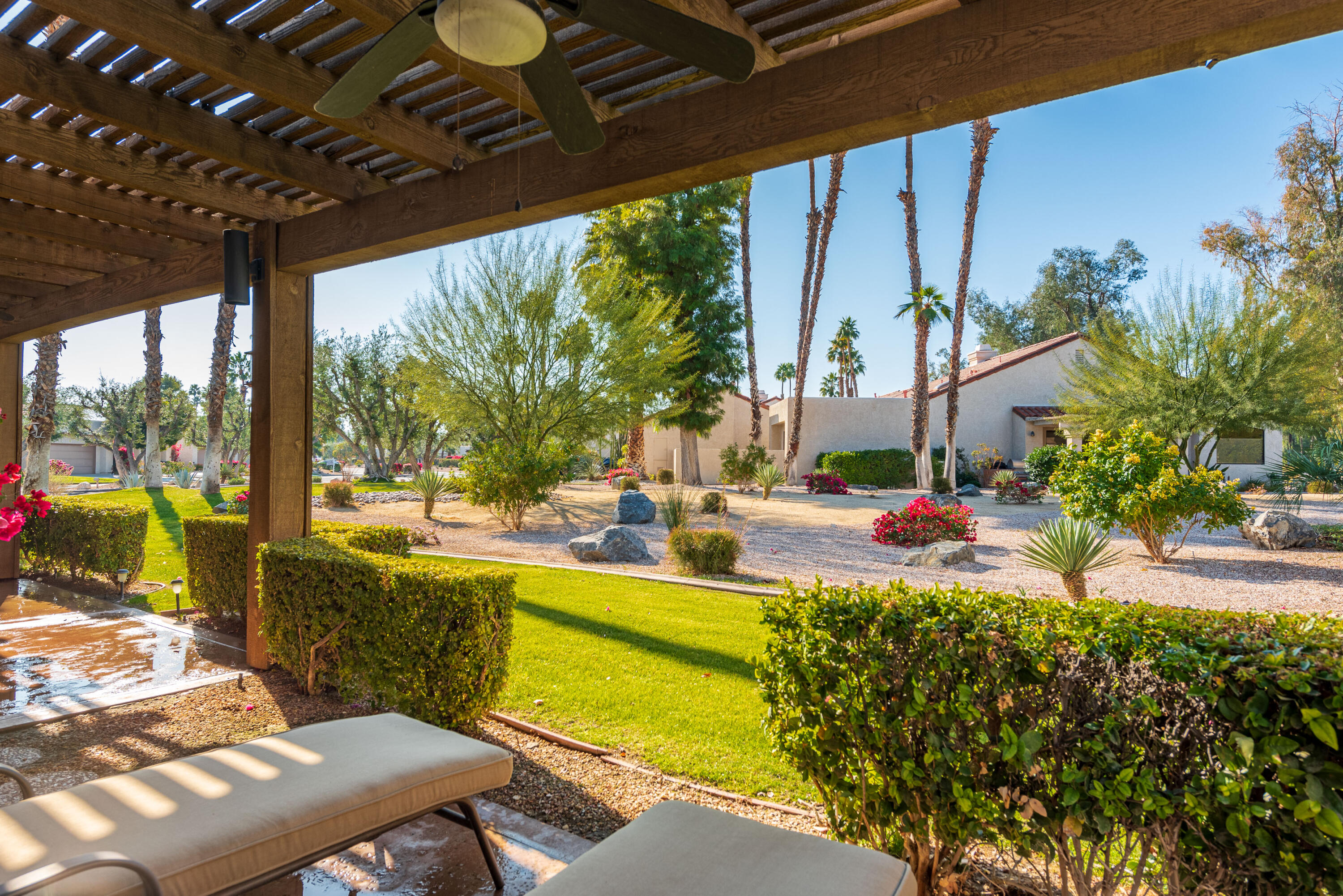 ***AVAILABLE FROM APR-DEC 2025******UNAVAILABLE JAN-MAR 2026***Spacious detached condo offered turn-key furnished, on a sweeping corner lot. Enter through a private gated courtyard. This condo features an open floor plan with vaulted ceilings, 3 spacious bedrooms, and 3 full baths with great separation to maximize comfort and privacy. The master bath has 2 separate closets and a relaxing jetted spa tub. The updated kitchen has newer cabinets, stainless appliances, solid surface countertops, and an eat-in dining area. The ample family room has a raised hearth gas fireplace, wet bar with a built-in wine refrigerator. Beautiful tile and laminate flooring throughout, along with plantation shutters. The rear-covered patio has a gas fire pit and a gas BBQ with lovely greenbelt and mountain views. There is a two-car garage and a golf cart garage. The golf cart garage has been converted to an office/storage room. Mission Hills Country Club boasts 3 private golf courses, 27 tennis courts, croquet courts, an amazing clubhouse, and a world-class fitness center. This is an ideal property for family and friends to come live the desert lifestyle. Book your stay today. Tenant receives a $250 per month utility allotment. Could be available for long term lease for $6,800 per month.Interested in this Listing?