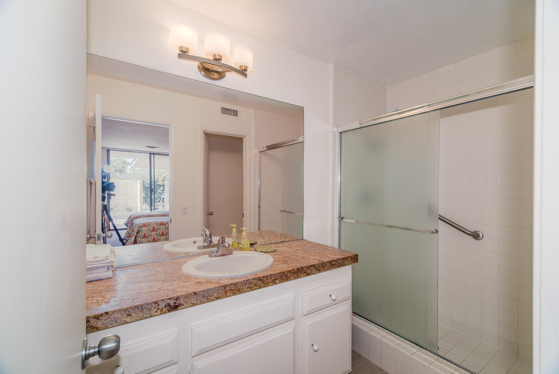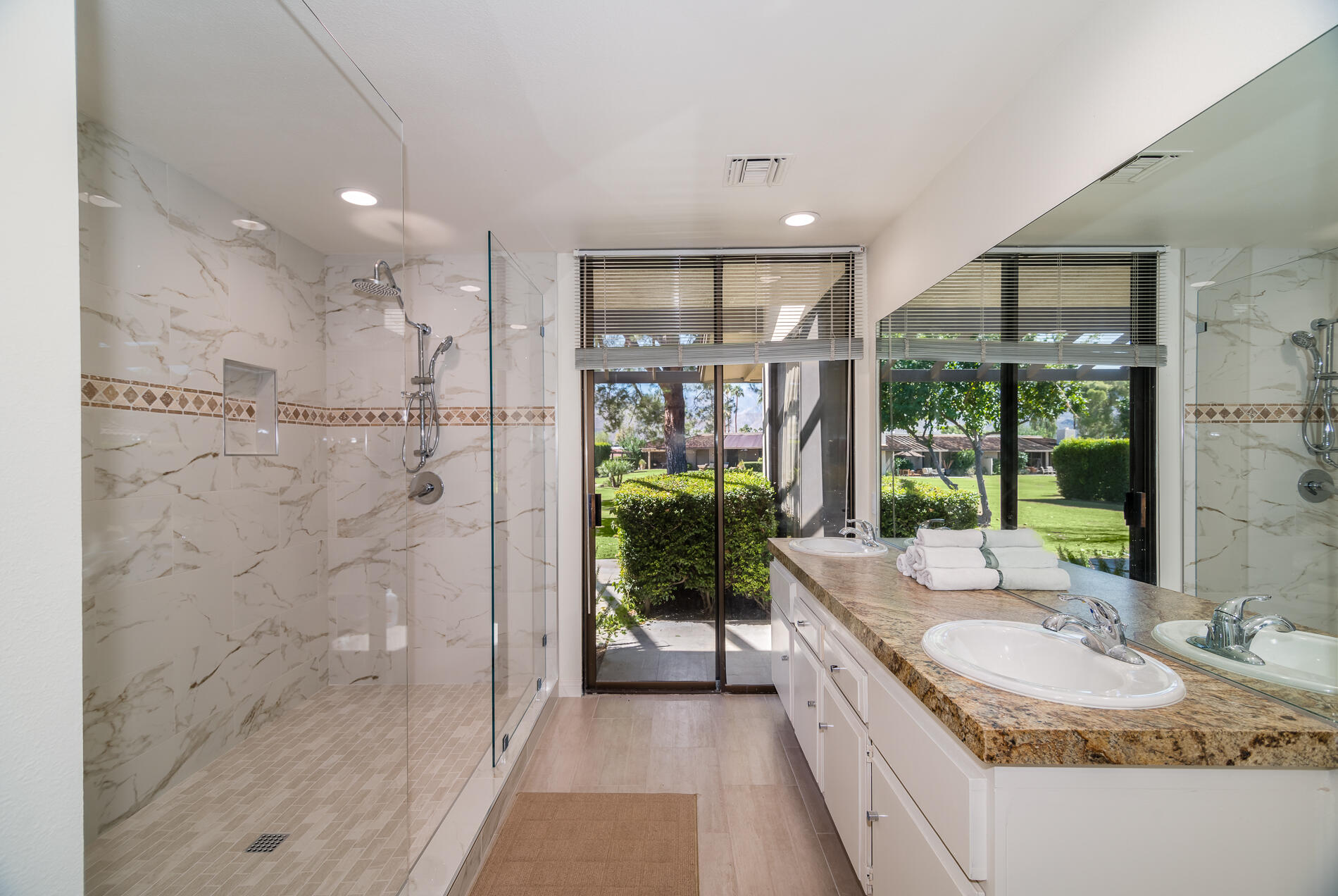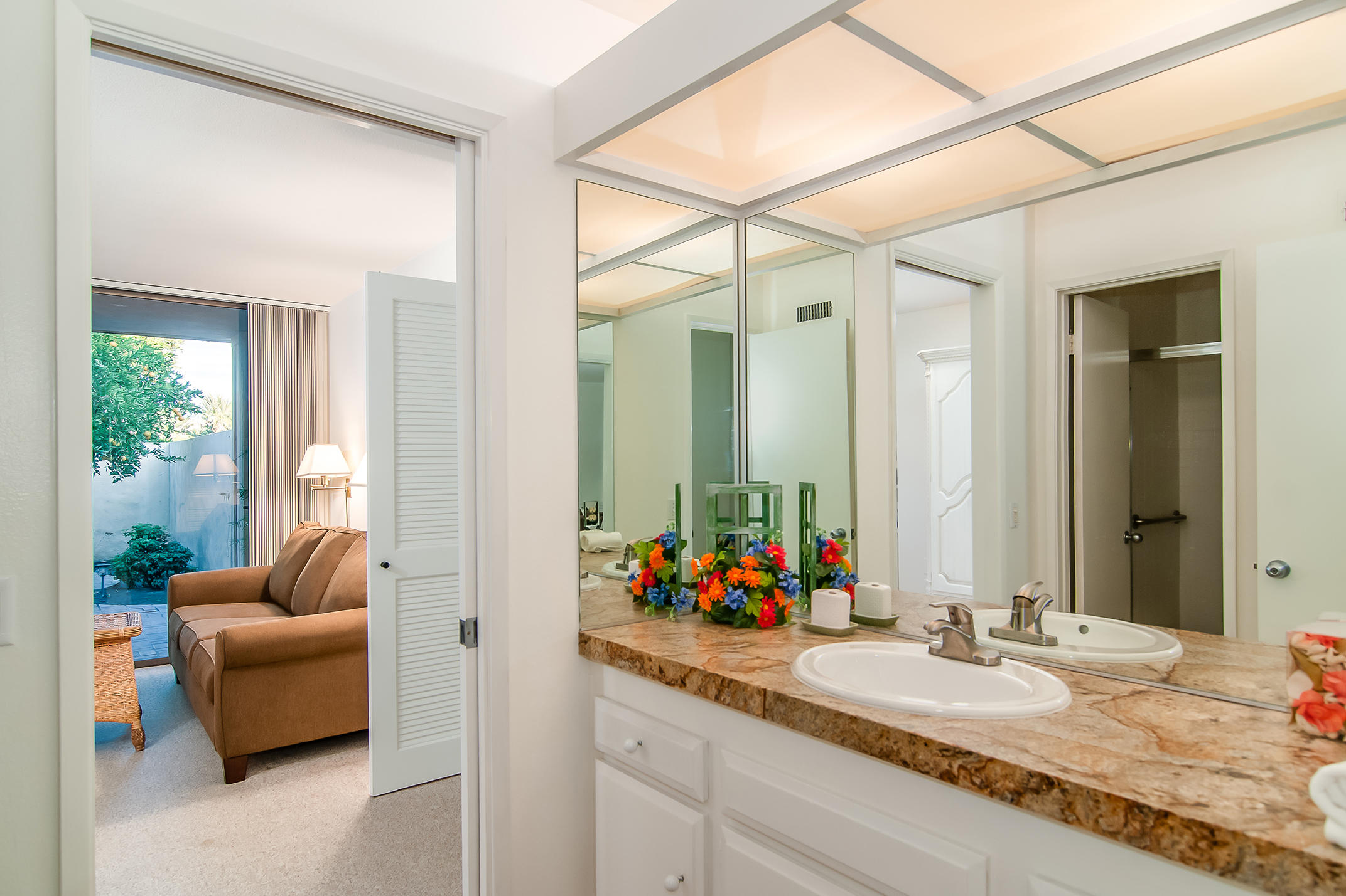 This 3 Bed 3 Ba at The Springs features dual master suites, one with a new double shower. All 3 bedrooms have newer wall to wall carpet, King beds in 2 bedrooms with the 3rd bedroom set as an office with a pull out couch. This lovely home has mountain views across an expansive lawn and tasteful fixtures/furnishings. This peaceful setting on an open greenbelt with nice west mountain views has private secure patios and is located near one of the 46 community pools. Each bedroom has access to patio areas. Tile floors in all common areas and bathrooms; kitchen has a morning room, gas burners and granite slab counter tops; Rent includes Cable, WiFi, Trash collection, Landscape Maintenance, and $250 per month utility allotment (cumulative) plus an optional Social/Tennis/Fitness Center Membership @ The Springs available at a one time fee of $200. Sorry, no pets and owner requests shoe removal when entering the house; close to Rancho Mirage/Palm Desert's finest restaurants and The River;Interested in this Listing?