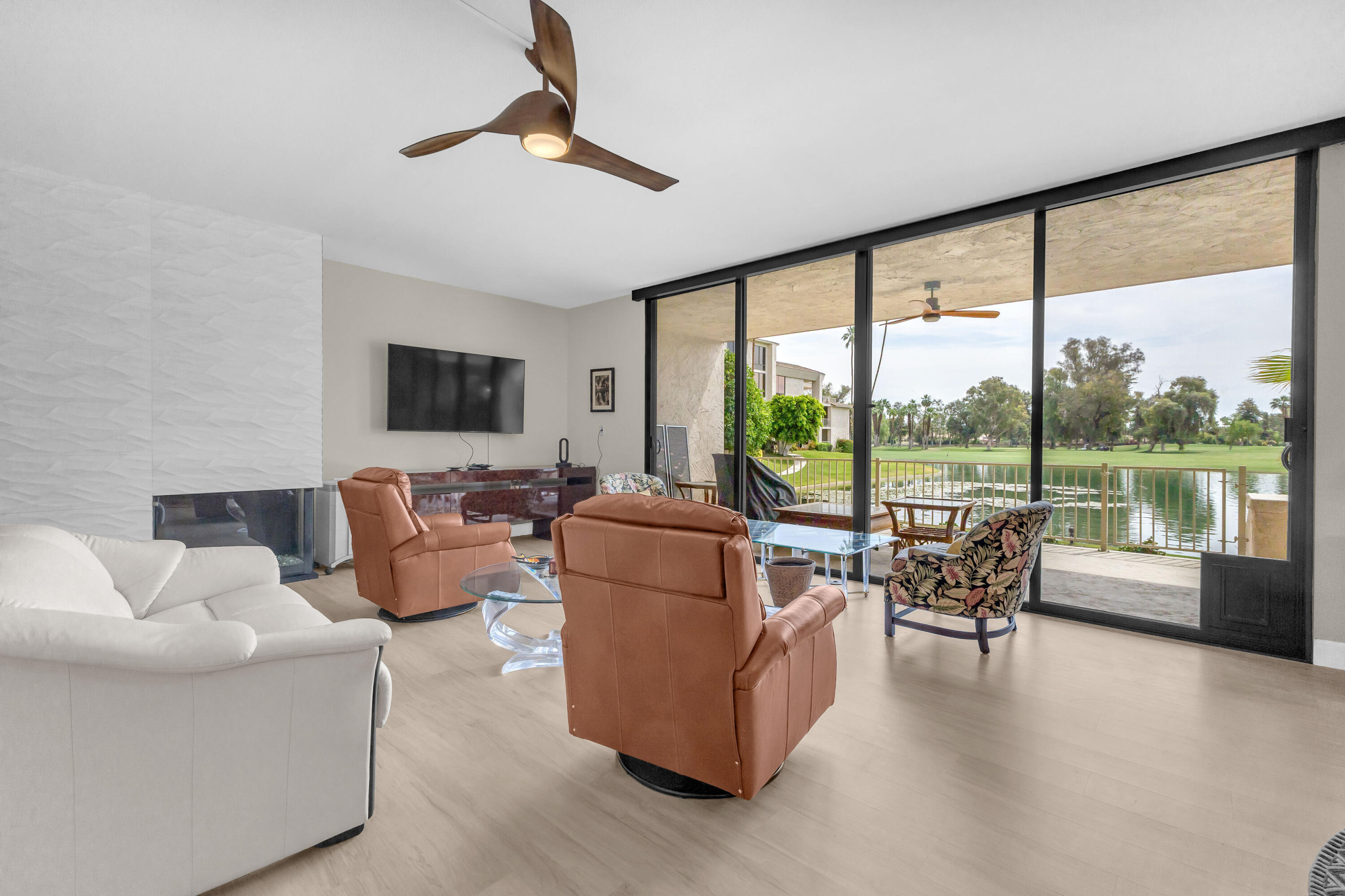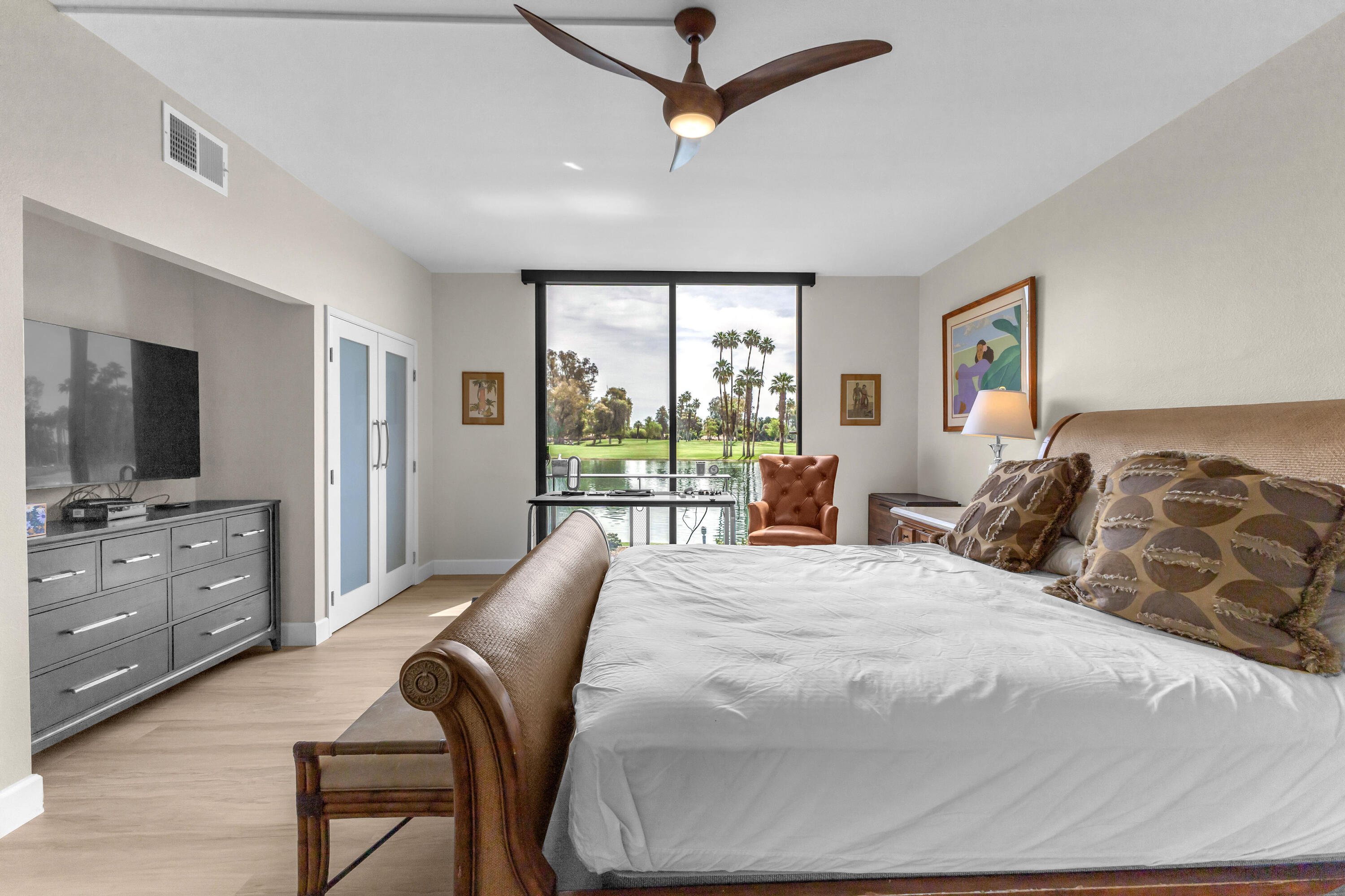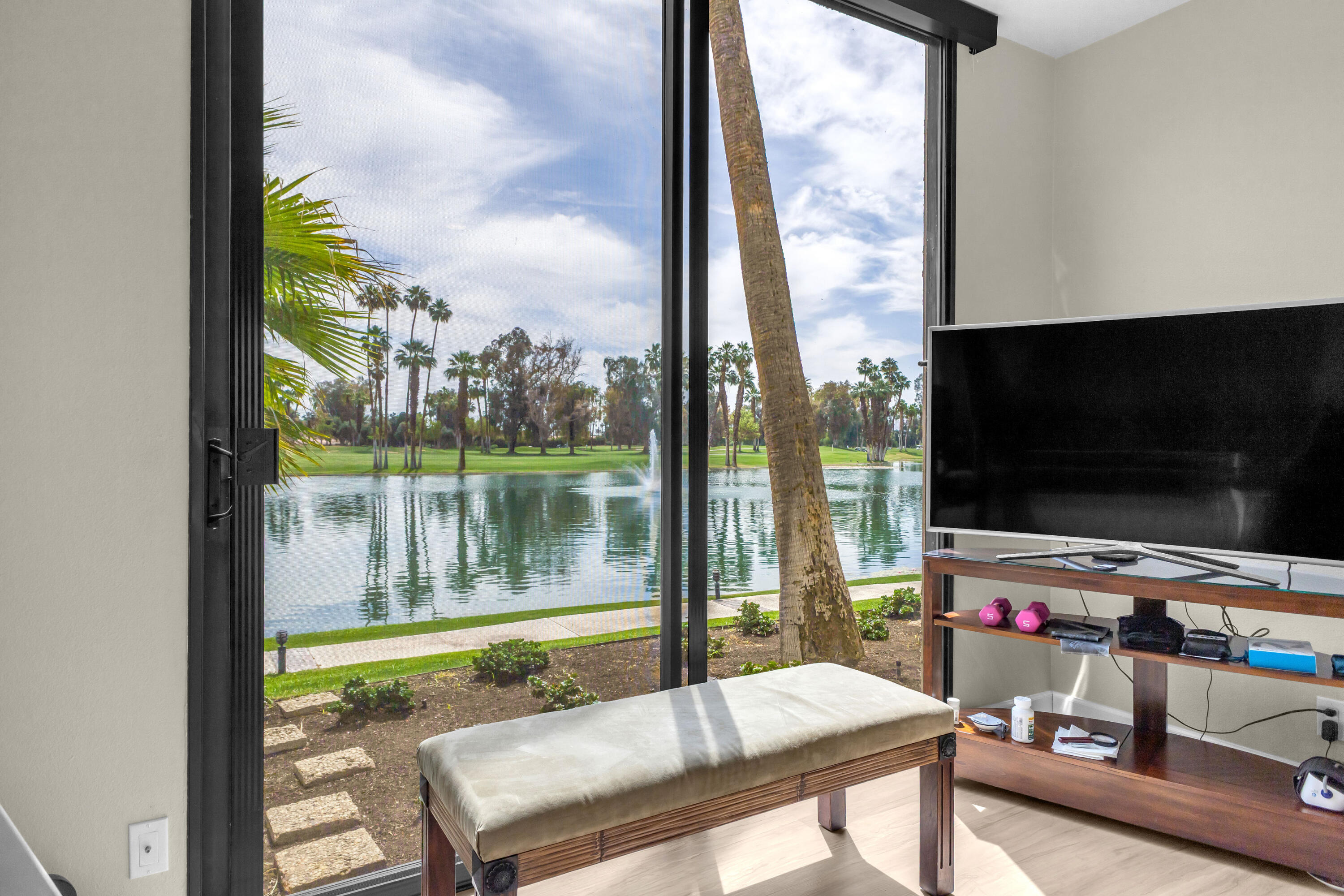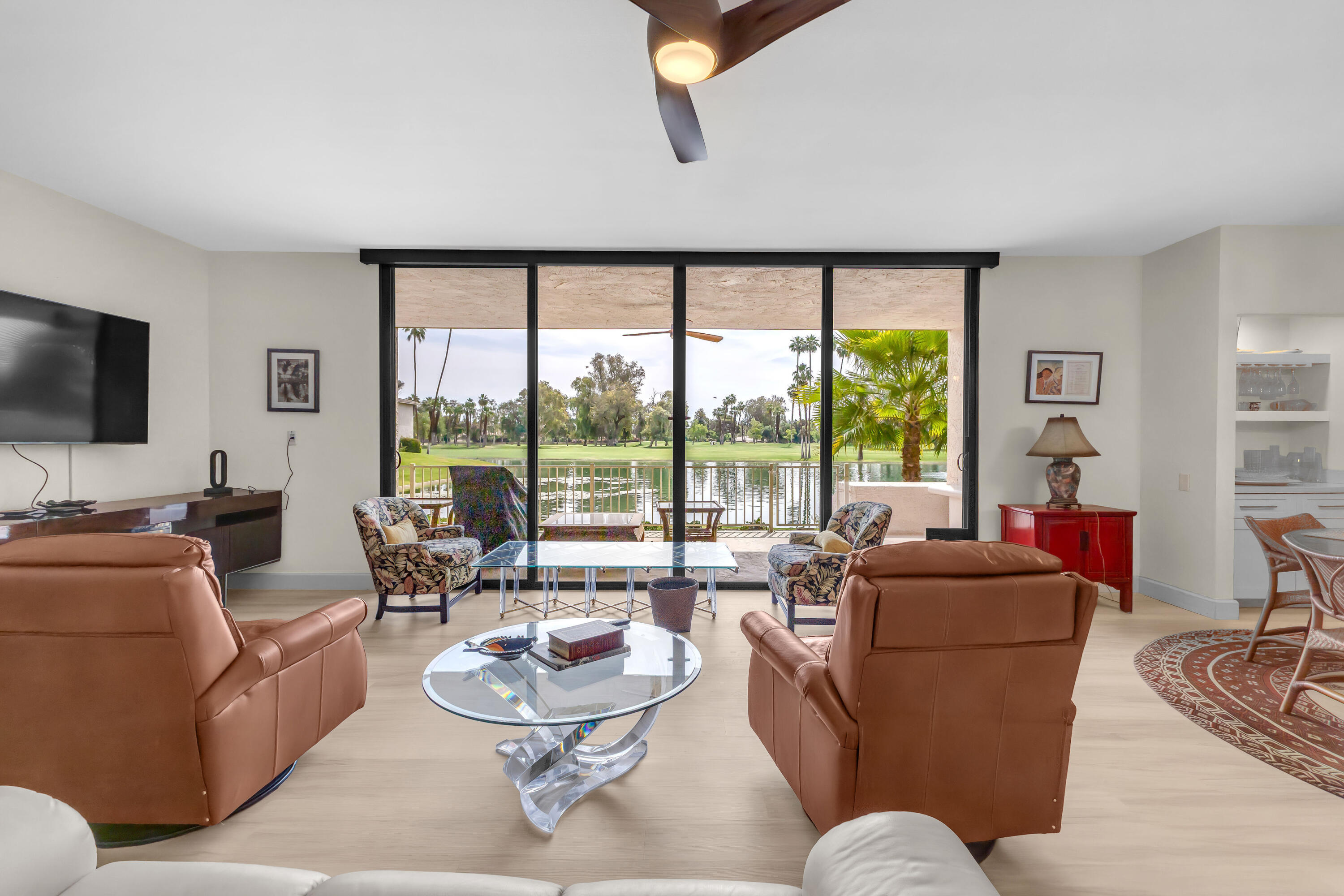 FIXED TERM LEASE - ONLY AVAILABLE NOW UNTIL END OF OCTOBER 2025PRICE NEGOTIABLEWelcome to this elegant two-bedroom, two-bathroom, east-facing ground-floor condo with breathtaking lake and golf course views. As you enter through the double front doors, you are greeted by a spacious living and dining area. Floor-to-ceiling glass doors create a seamless connection between the indoor and outdoor spaces. The condo has been remodeled to a high standard, with modern finishes and attention to detail. The open-plan kitchen features top-of-the-line Thermador appliances, including an induction cooktop. The kitchen was designed for functionality and convenience, with pullout drawers and a lazy Susan that creates a well-organized storage space. Soft closing drawers. Quartz countertops and a breakfast bar complete the kitchen. The bathrooms have a spa-like feel. Sensor lighting under the cabinets provides a soft ambient glow, making them both efficient and convenient. Bedroom closets have motion detectors. Recessed lighting is in the entry, kitchen, and bathrooms. Dimmers and ceiling fans are throughout the condo. New remote-controlled shades throughout. And a new water heater. Desert Island is a unique property with 24-hour gated security, an on-site management office, and maintenance staff. Tennis and pickleball courts. Each building has its own pool and spa.Interested in this Listing?