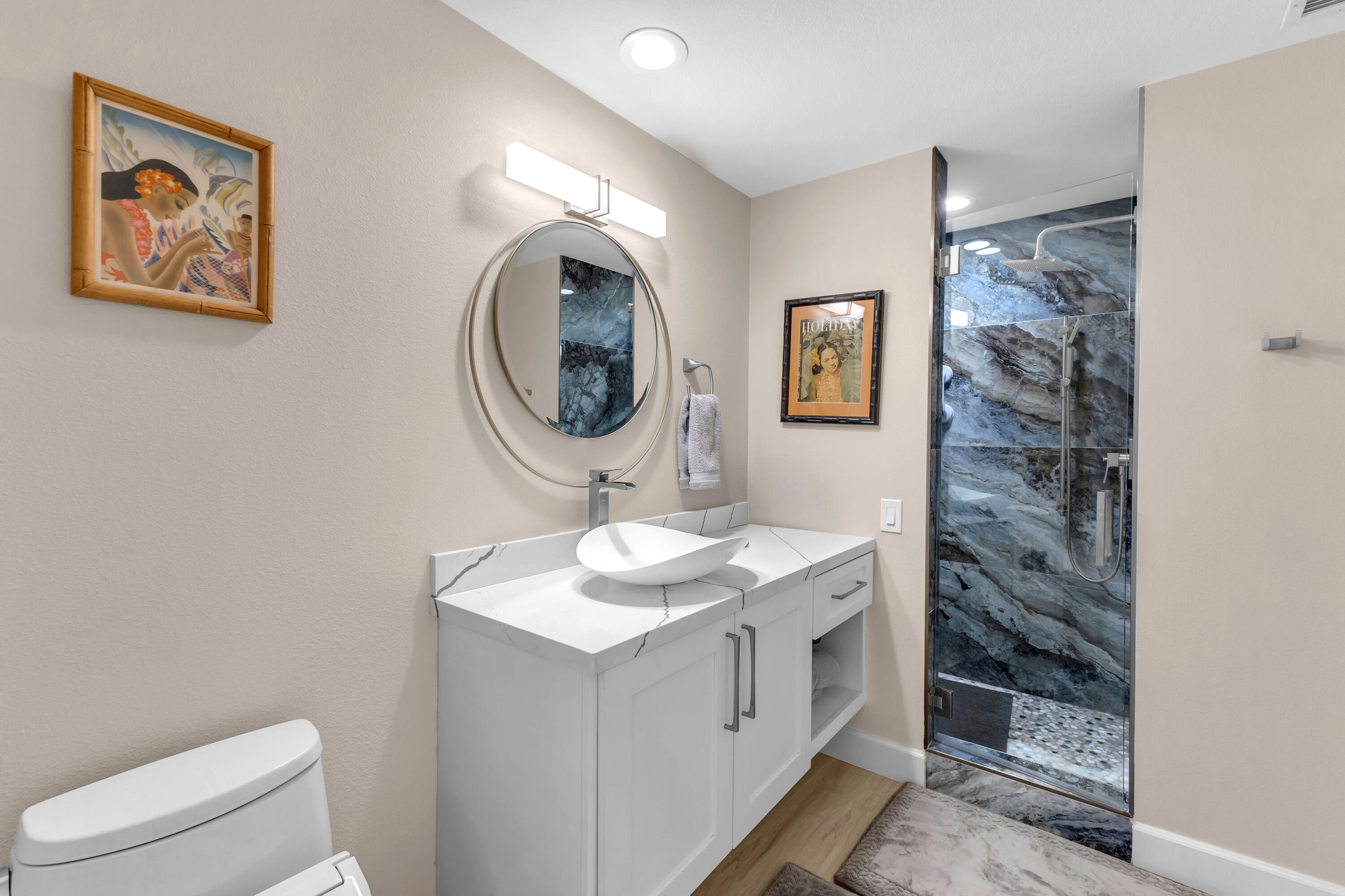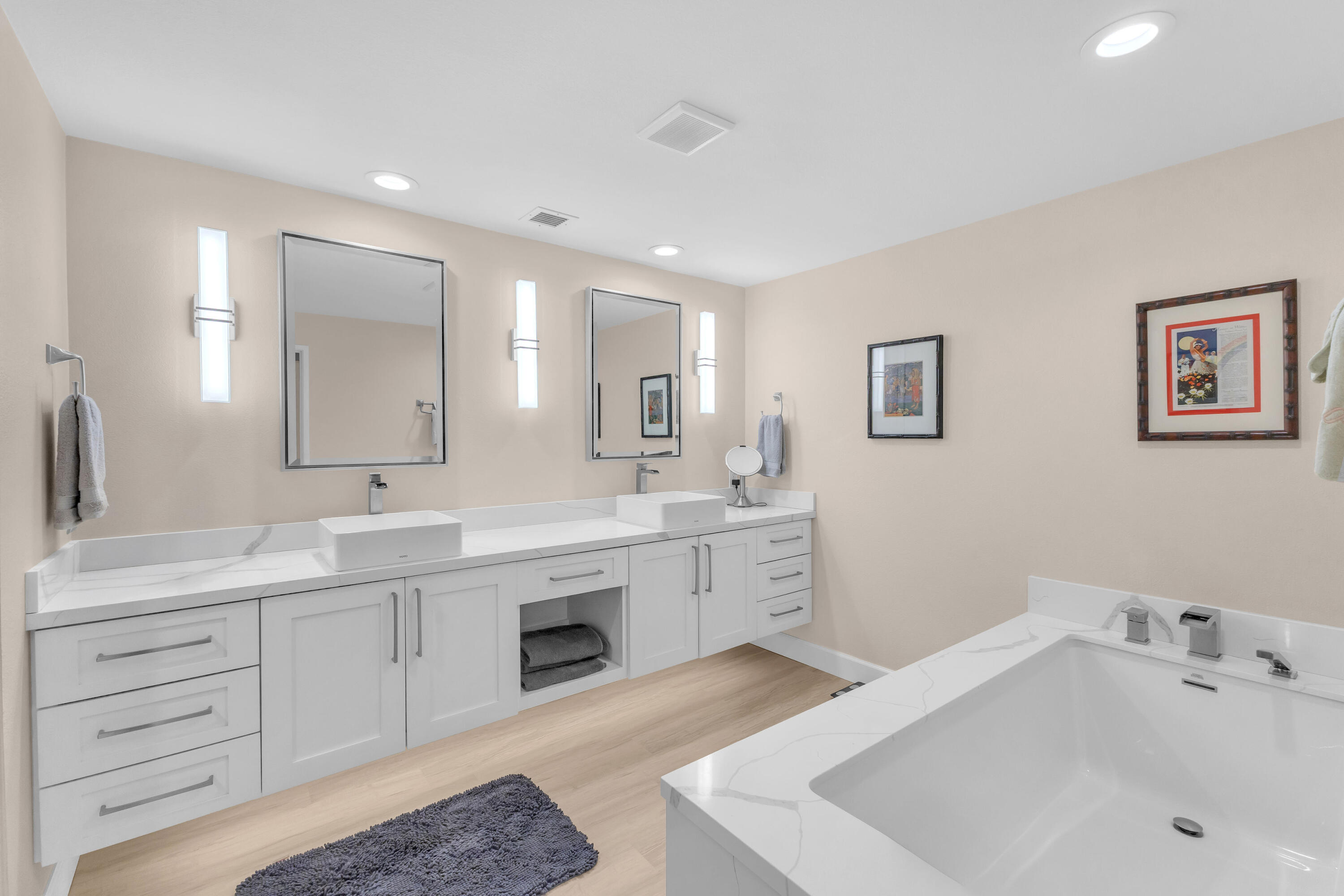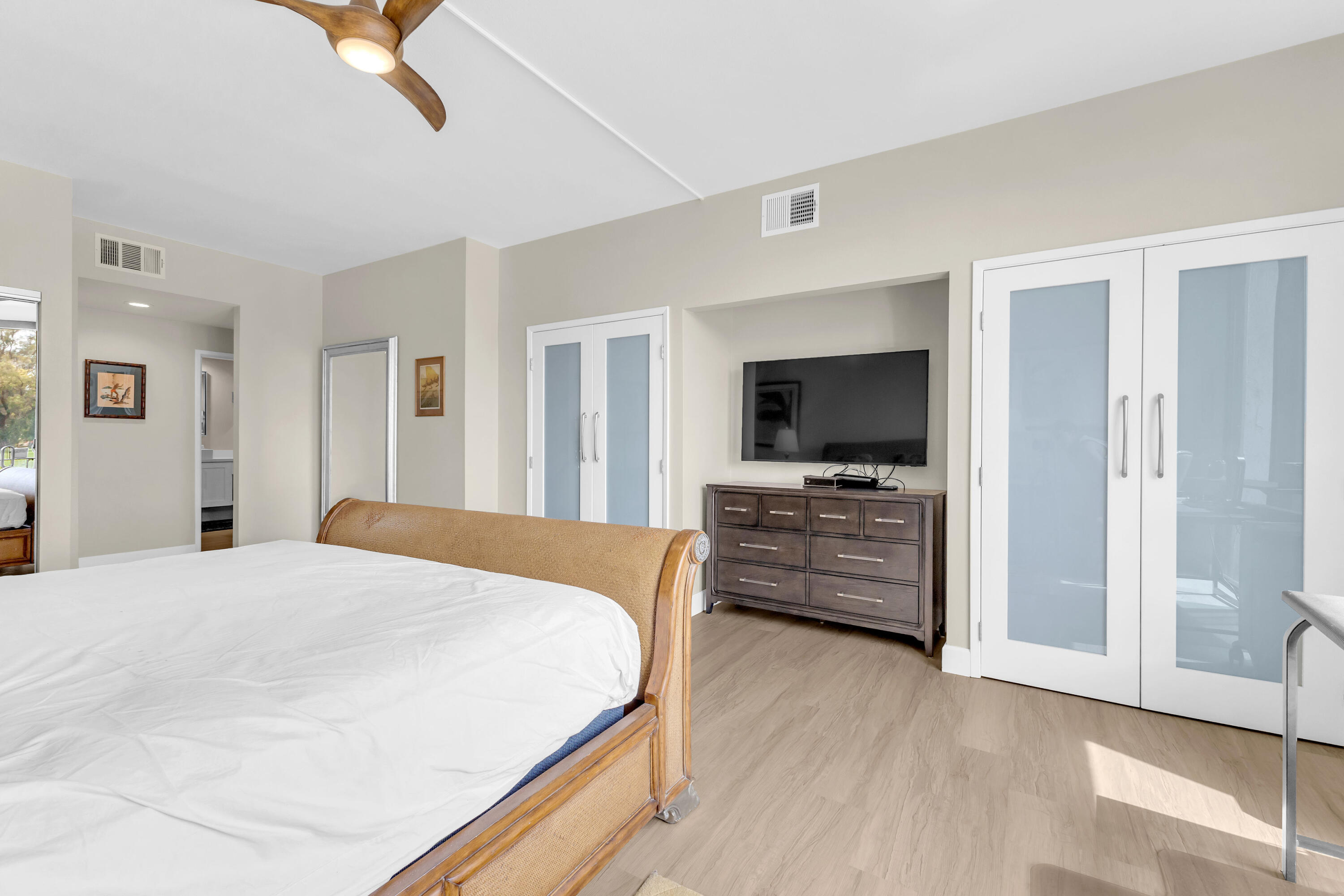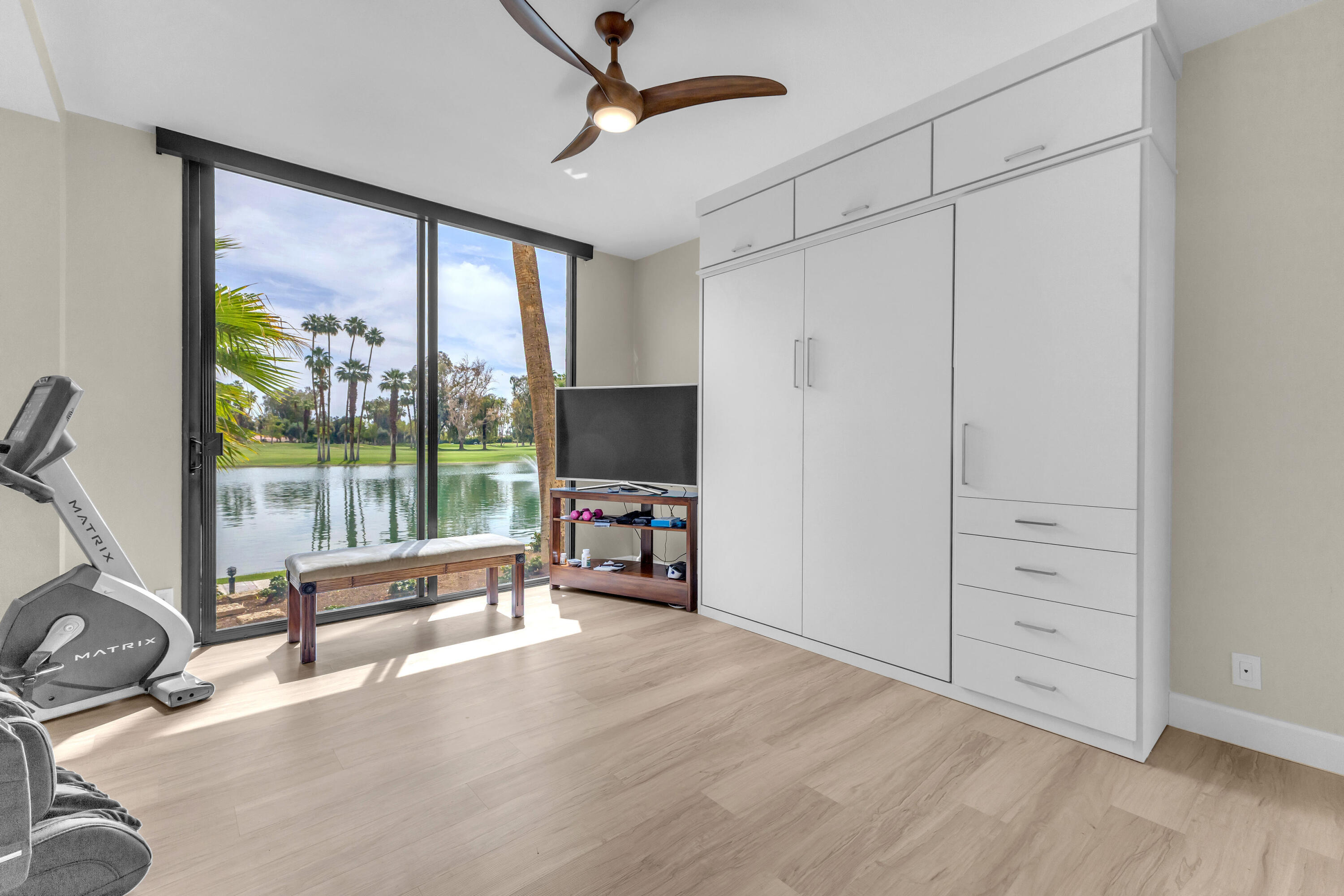 FIXED TERM LEASE - ONLY AVAILABLE NOW UNTIL END OF OCTOBER 2025PRICE NEGOTIABLEWelcome to this elegant two-bedroom, two-bathroom, east-facing ground-floor condo with breathtaking lake and golf course views. As you enter through the double front doors, you are greeted by a spacious living and dining area. Floor-to-ceiling glass doors create a seamless connection between the indoor and outdoor spaces. The condo has been remodeled to a high standard, with modern finishes and attention to detail. The open-plan kitchen features top-of-the-line Thermador appliances, including an induction cooktop. The kitchen was designed for functionality and convenience, with pullout drawers and a lazy Susan that creates a well-organized storage space. Soft closing drawers. Quartz countertops and a breakfast bar complete the kitchen. The bathrooms have a spa-like feel. Sensor lighting under the cabinets provides a soft ambient glow, making them both efficient and convenient. Bedroom closets have motion detectors. Recessed lighting is in the entry, kitchen, and bathrooms. Dimmers and ceiling fans are throughout the condo. New remote-controlled shades throughout. And a new water heater. Desert Island is a unique property with 24-hour gated security, an on-site management office, and maintenance staff. Tennis and pickleball courts. Each building has its own pool and spa.Interested in this Listing?