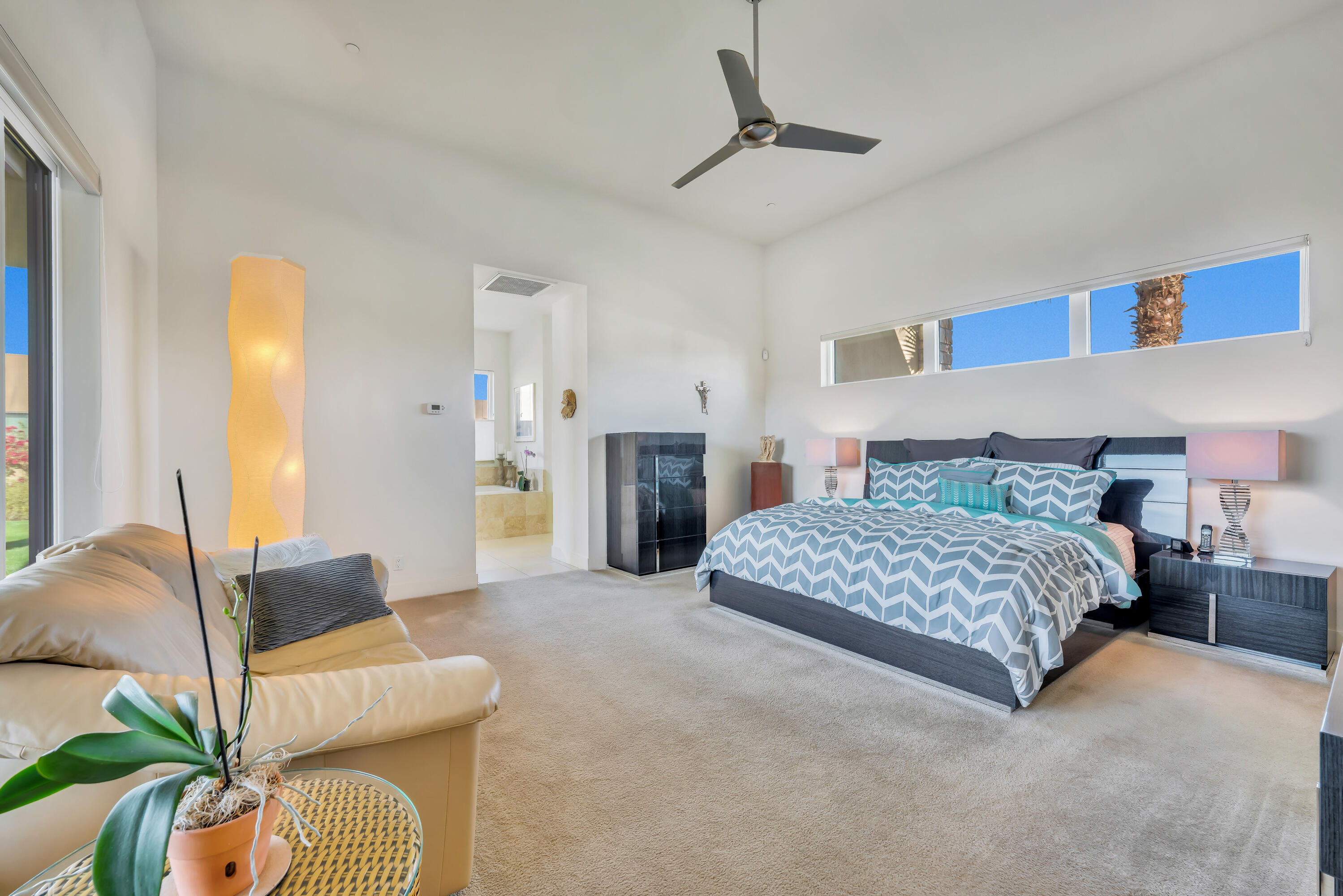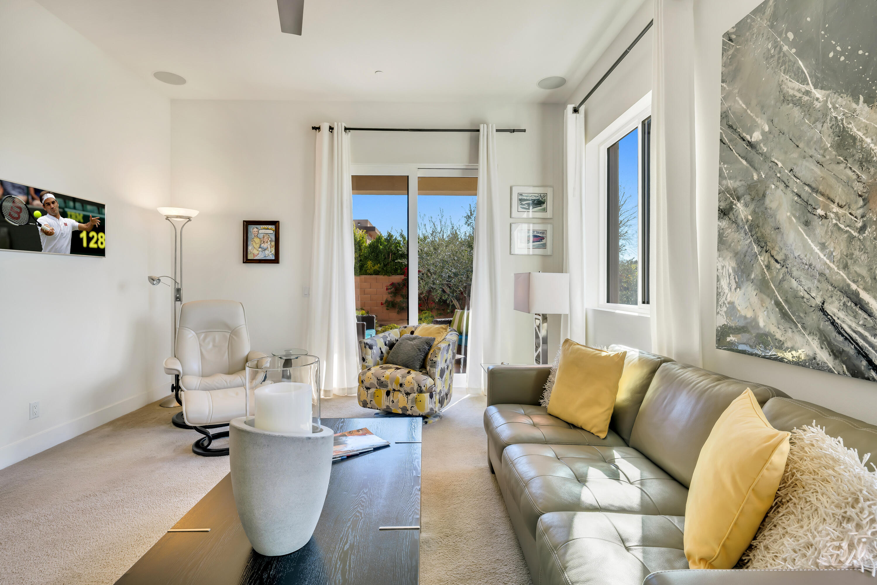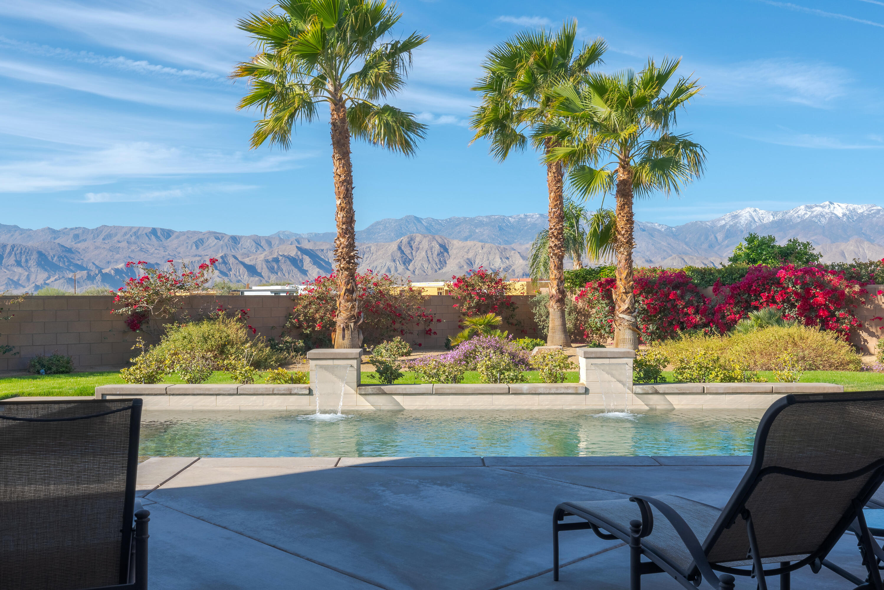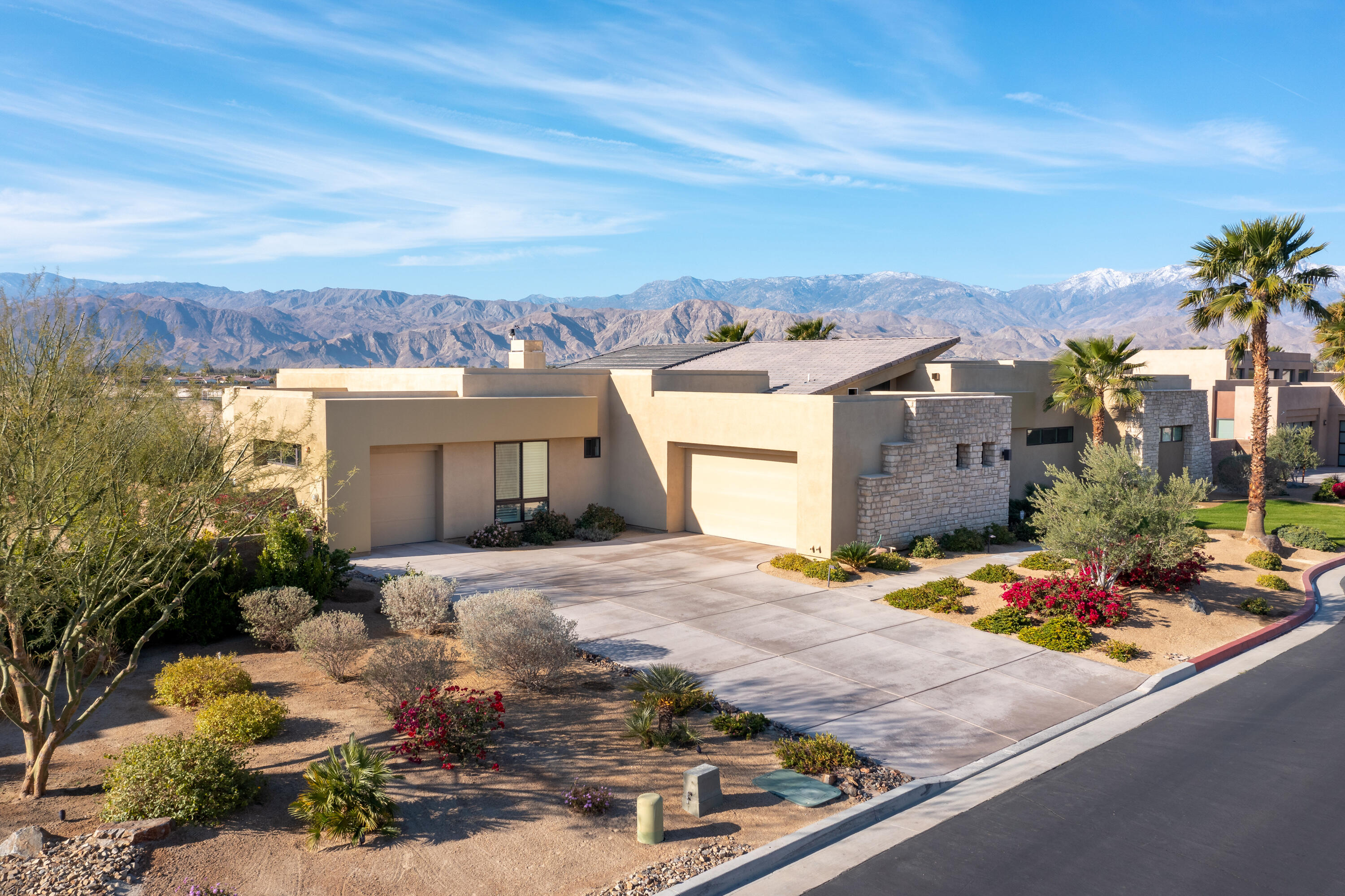 Welcome to Estilo at Rancho Mirage! This Amazing home is available for long term! Enjoy Breathtaking Panoramic Mountain Views from every angle of this Contemporary home. Enter the home and take in the stunning architecture, walls of glass with rolling Mountain Views, soaring ceilings and tons of natural light. The Great Room has a fireplace with open niches on either side and connected to a wet bar. The kitchen has a large center island, stylish Cambria Quartz countertops, backsplash and stainless-steel Kitchen Aid appliances. This desirable home offers 3 bedrooms, 2.5 baths with a designer powder room with floating vanity. The oversized rear yard is a private resort with spectacular mountain views, lush landscaping including a citrus tree garden, an extended covered patio, Solar Heated pebbled pool & raised water features. There is a split 3-car garage which all have an epoxy floor. For energy savings the home features an on demand tankless hot water system and is located in IID for low-cost electricity. This is the unique contemporary view home you have been waiting for!Interested in this Listing?