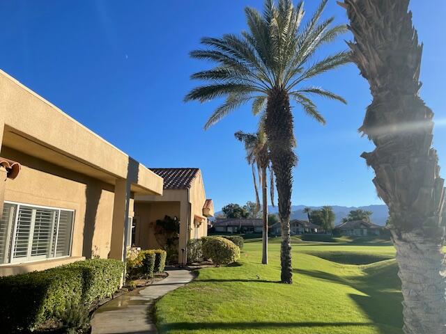 House has southwest exposure and great sunsets with endless sun. Breathtaking Southwest San Jacinto Mountain and fairway views of the Westin Mission Hills Resort and Spa Pete Dye Golf course. This highly desirable one level Cypress plan with 3 Bedroom 1 bath & 3/4, (great room feeling living/dining room area) formal dine area, breakfast bar, carpet and tile floors, living room with fireplace, wet bar and walls of glass opens to entertainer's delight with your very own spa and fairway and mountain views,ideal for entertaining. Also enjoy one of the four community pools & spas, Residents are a golf cart ride away from the Private Mission Hills Country Club or Enjoy Discount Golf Rates on the two Westin Mission Hills Pete Dye & Gary Player courses as a Rancho Mirage Resident, and also at the Westin's Restaurants and Spa Facilities, also has a newer tennis club and fitness center,rent includes WIFi & long distance to Canada and the U.S.Interested in this Listing?