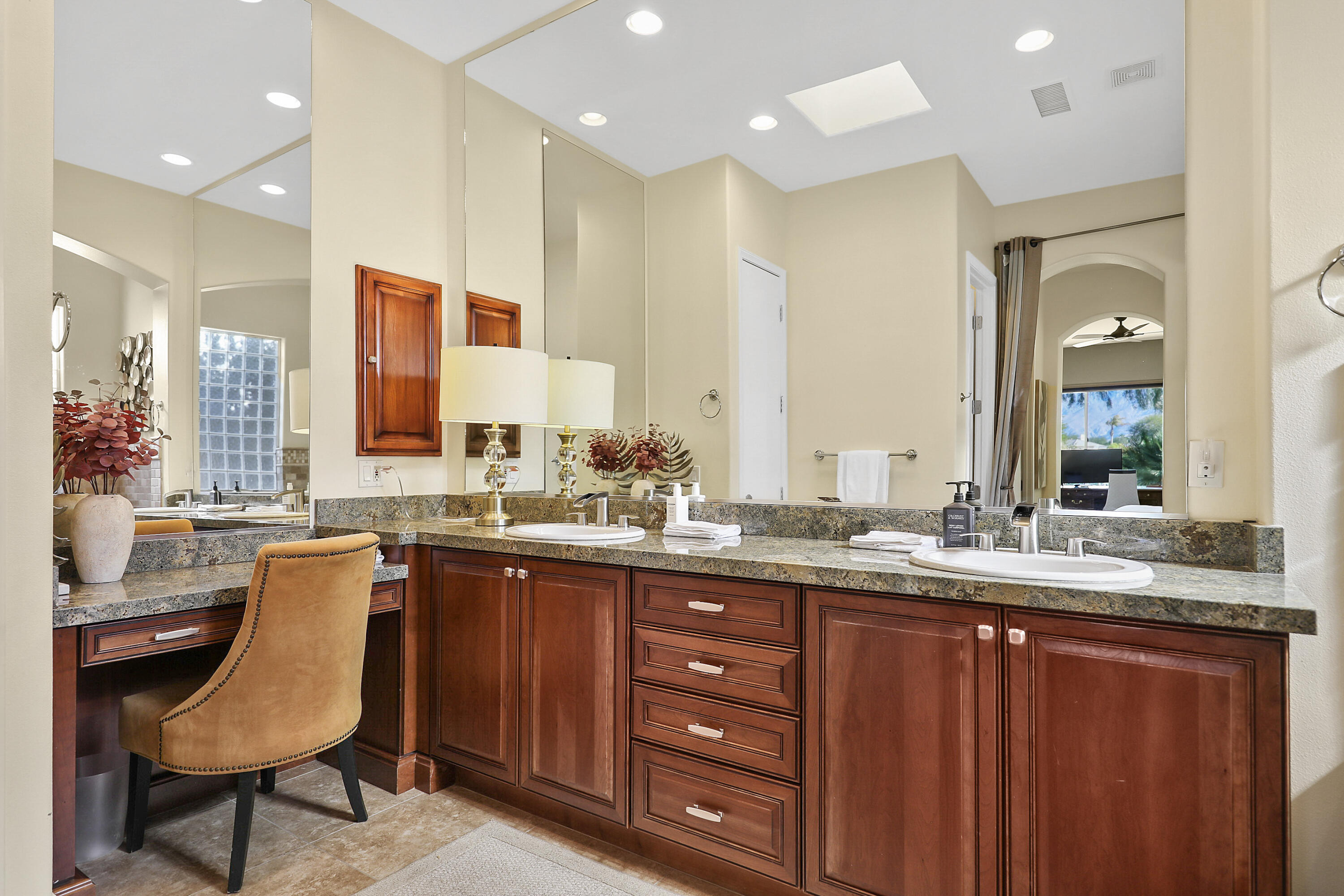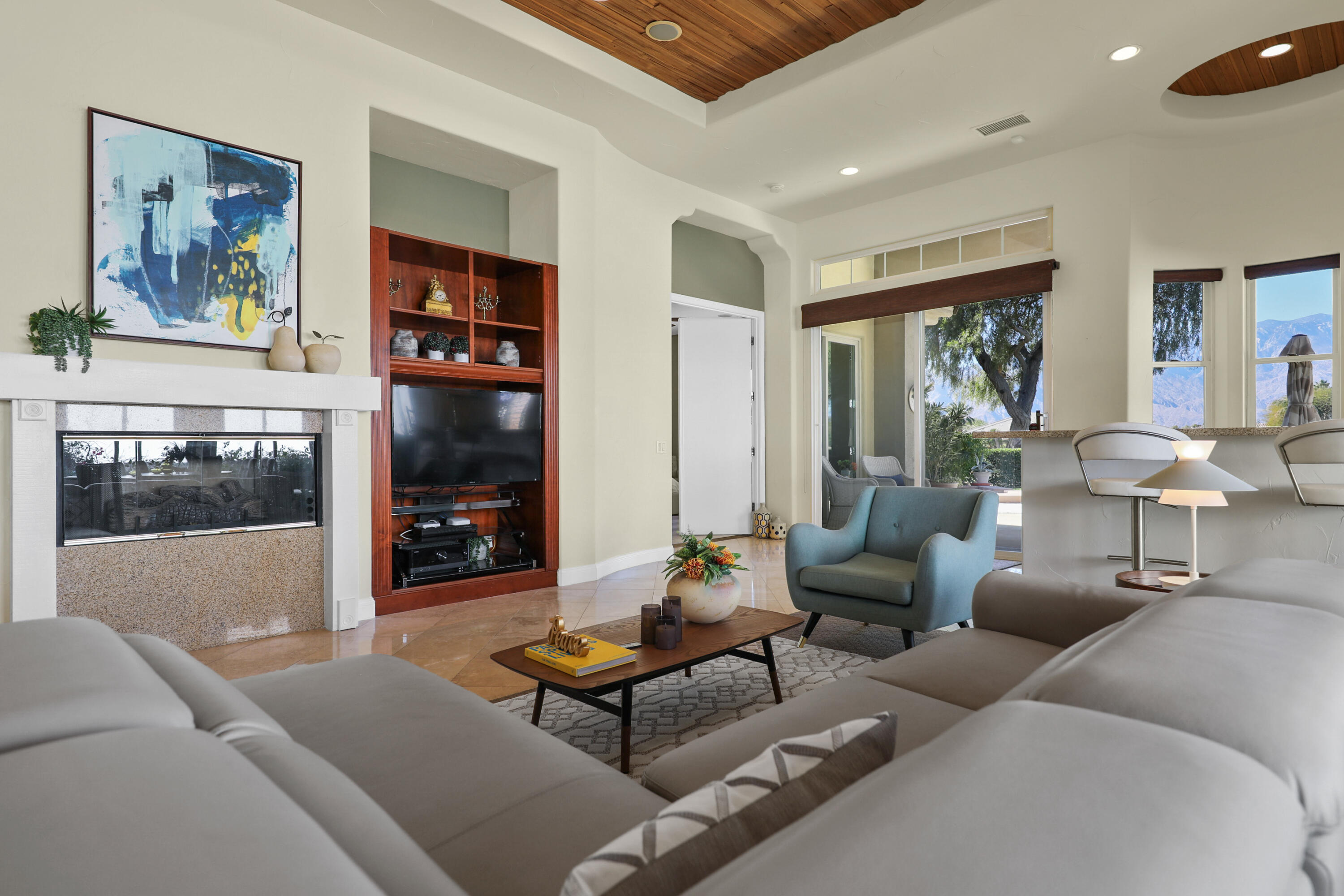 NOT AVAILABLE FEBRUARY 1ST TO APRIL 15, 2026. Beautiful, turn-key furnished home in the gated community of Mira Vista at Mission Hills. This former model home sits on one of the most premier lots, taking advantage of million door views from both inside and out. The Escondido floor plan offers 2,331 sf with 3 bedrooms, 2 bathrooms, great room with gorgeous furnishings and granite fireplace, custom wood coffered ceiling, and wet bar. The granite kitchen with island, nook, and breakfast bar has been updated with KitchenAid stainless steel appliances and espresso stained cabinetry, and opens to the great room. The rear yard offers a breath taking panoramic view of multiple golf course fairways, lakes and mountains, and goes on forever! The covered patio offers shade while the saltwater pool and spa maximize complete sun exposure. Seasonal rates apply: January through April - $9500/month, May plus October through December - $8000/month, June through September - $5,000/month.Interested in this Listing?