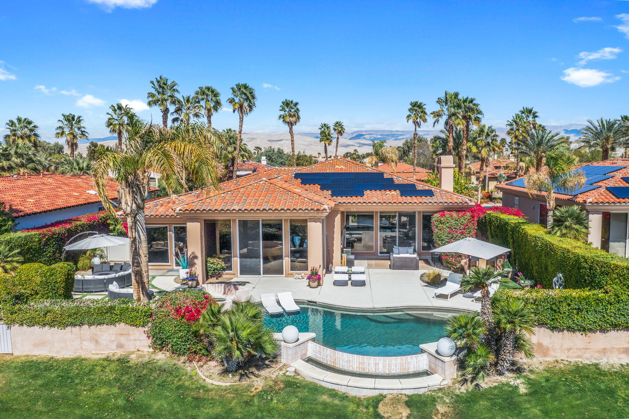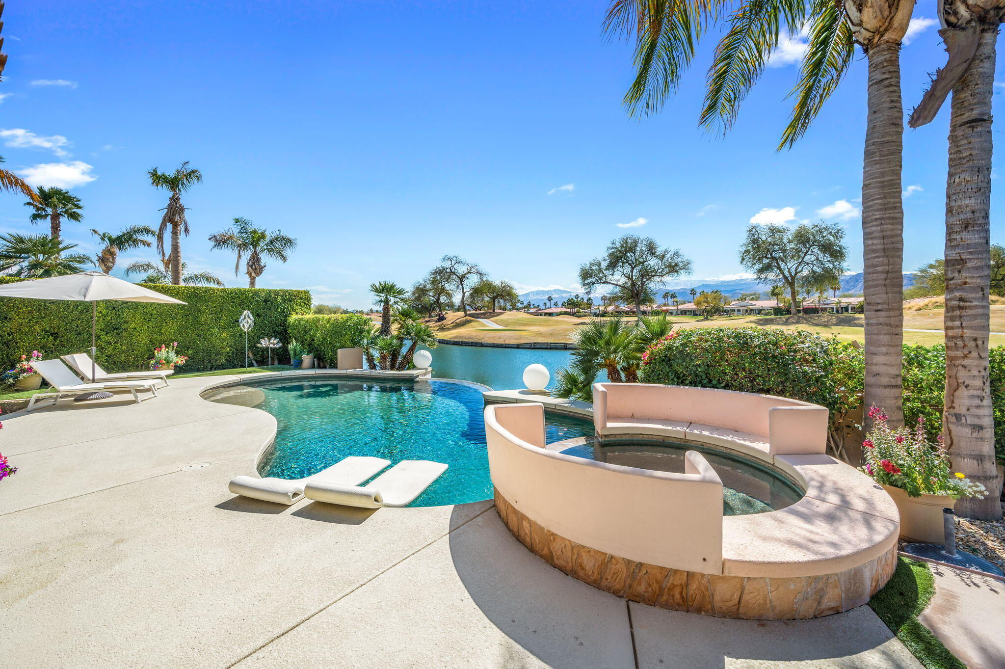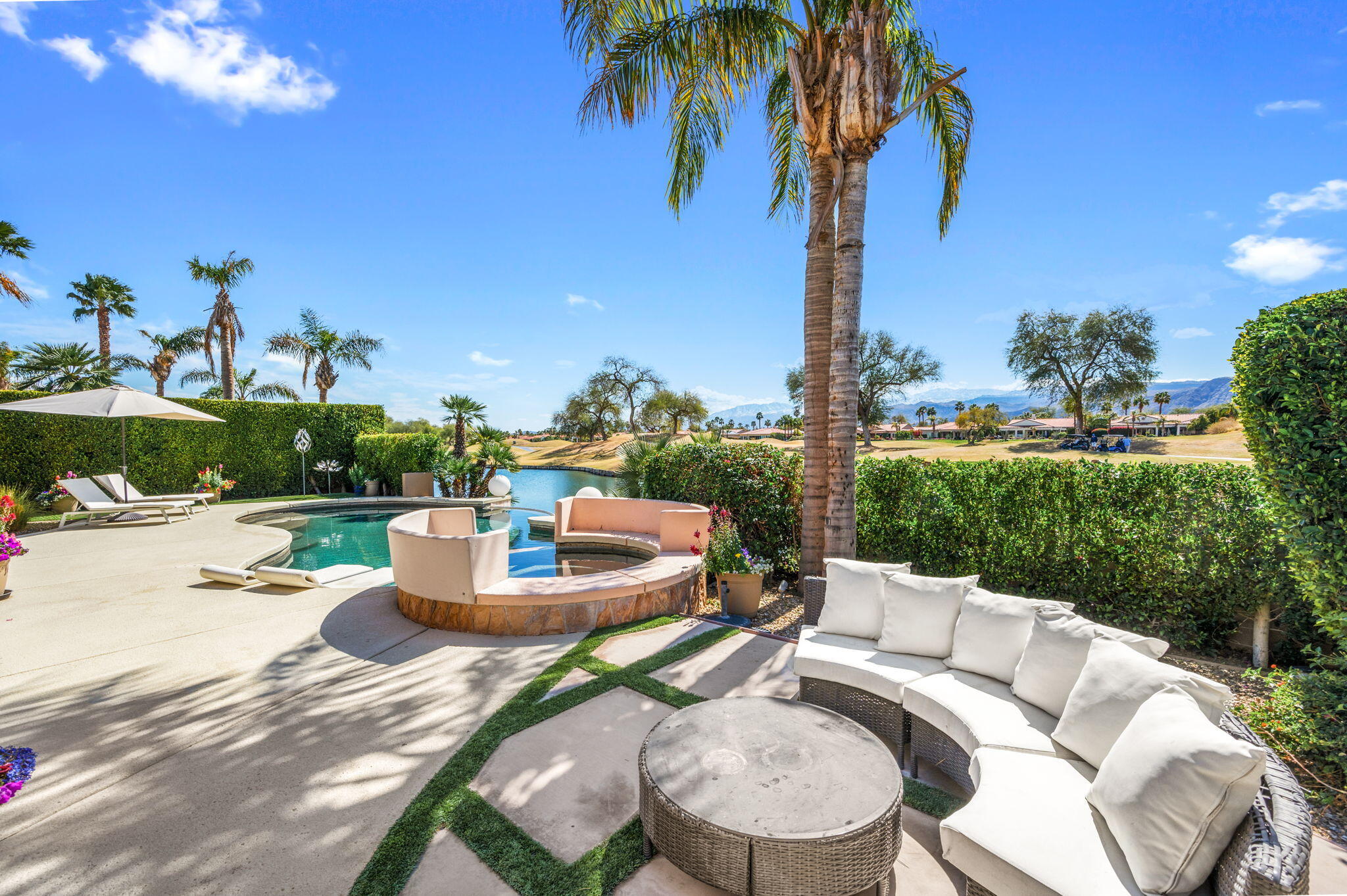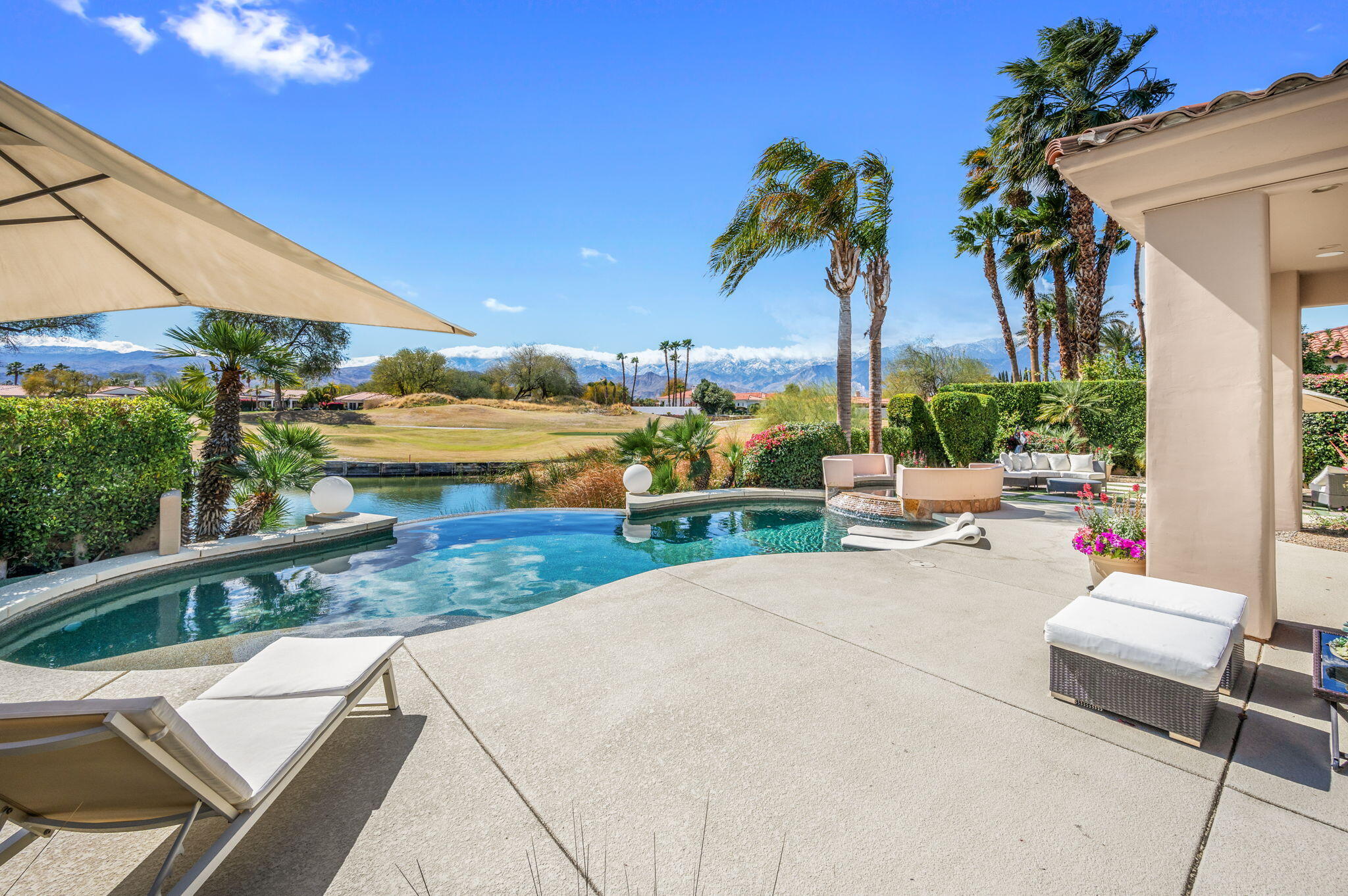 Welcome to this exquisite residence in the sought after neighborhood of Mission Hills/Legacy in Rancho Mirage. This gorgeous property has been updated and upgraded through and though, and will be available for lease during our 2026 Season for the months of January, February and March. As you enter from the private courtyard through double doors, you are greeted with opulence, soaring ceilings, open floor plan, and stunning exterior views, giving you that Five-Star resort feeling. The great room is equipped with a modern linear fireplace, marble wall housing an 80'' television, and wet bar furnished with a wine cooler and quartz counters, perfect for entertaining. Other interior amenities include chandeliers from Restoration Hardware, Sub-Zero refrigerator, double ovens, a six-burner Dacor gas range, and other top tier appliances adding to your resort type stay. The main suite has been completely remodeled including decorations from Restoration Hardware and a 400 sqft gym. Additionally, the main en suite was spared no expense to include quartz countertops, waterfall feature at the jetted jacuzzi tub, and steam shower. All bedrooms and bathrooms have been touched, not to mention the office having high-speed internet, a printer and sofa bed. Need just a little more room for extra guests? Enter the detached casita with Kitchenette, full bath, and its very own gas fireplace. Finally, exit out back to an absolutely amazing patio with custom built-in gas BBQ, smoker, refrigerator, an infinity edge pool overlooking the 16th fairway of the Pete Dye designed golf course, and absolutely incredible South-Western mountain views. This is the epitome of what desert living is all about.Interested in this Listing?