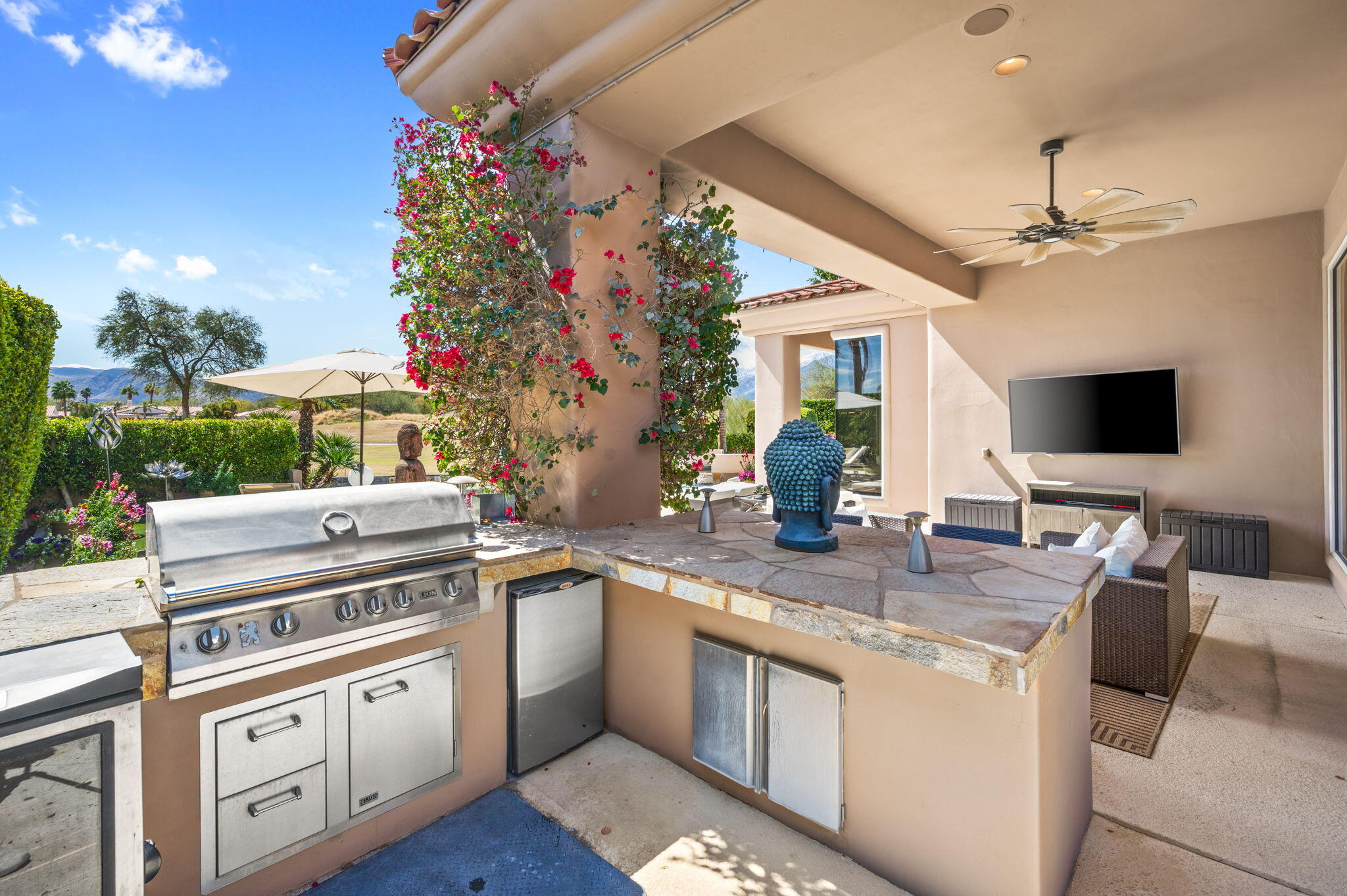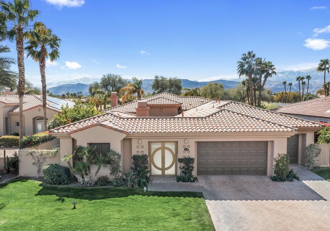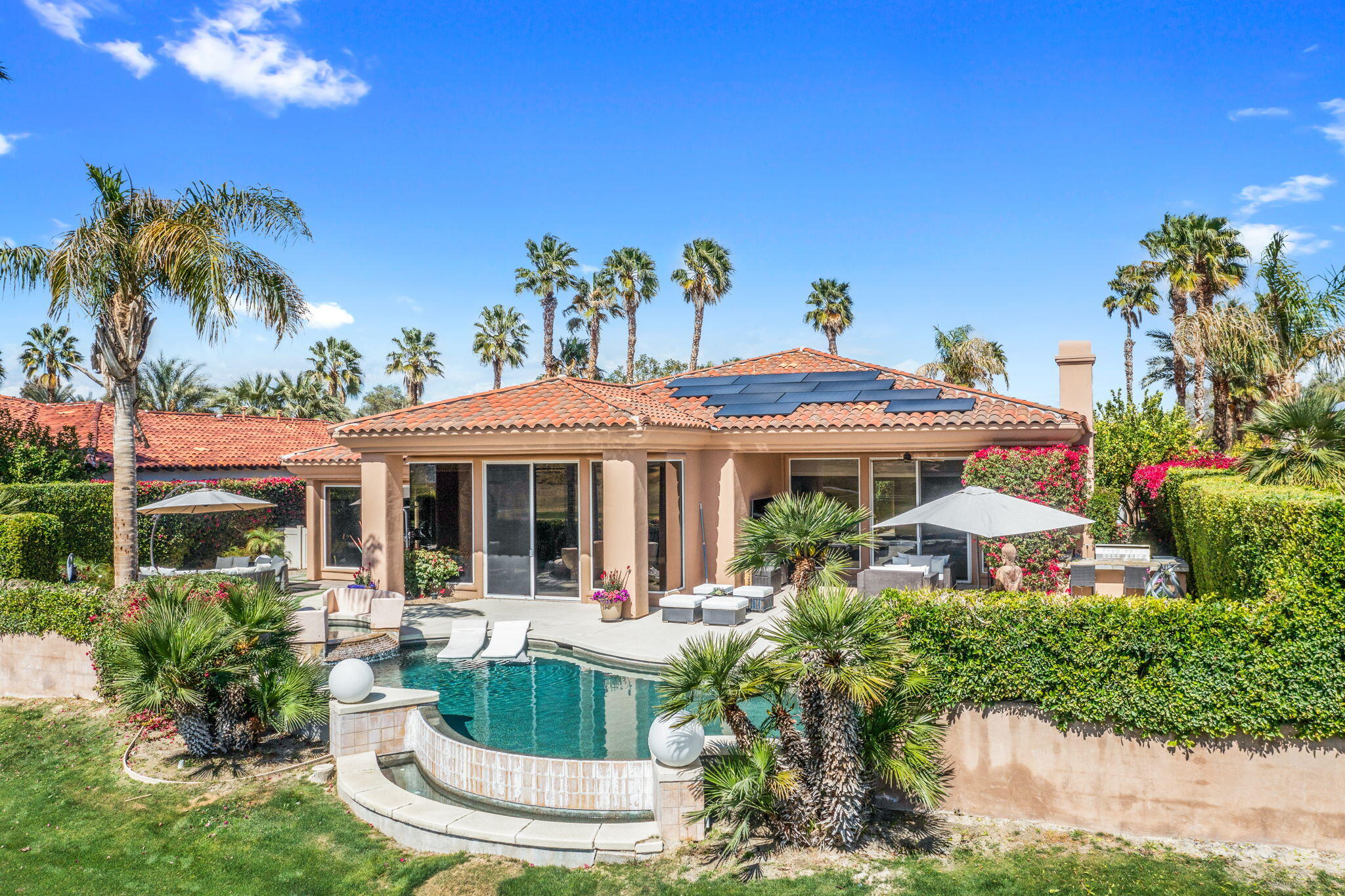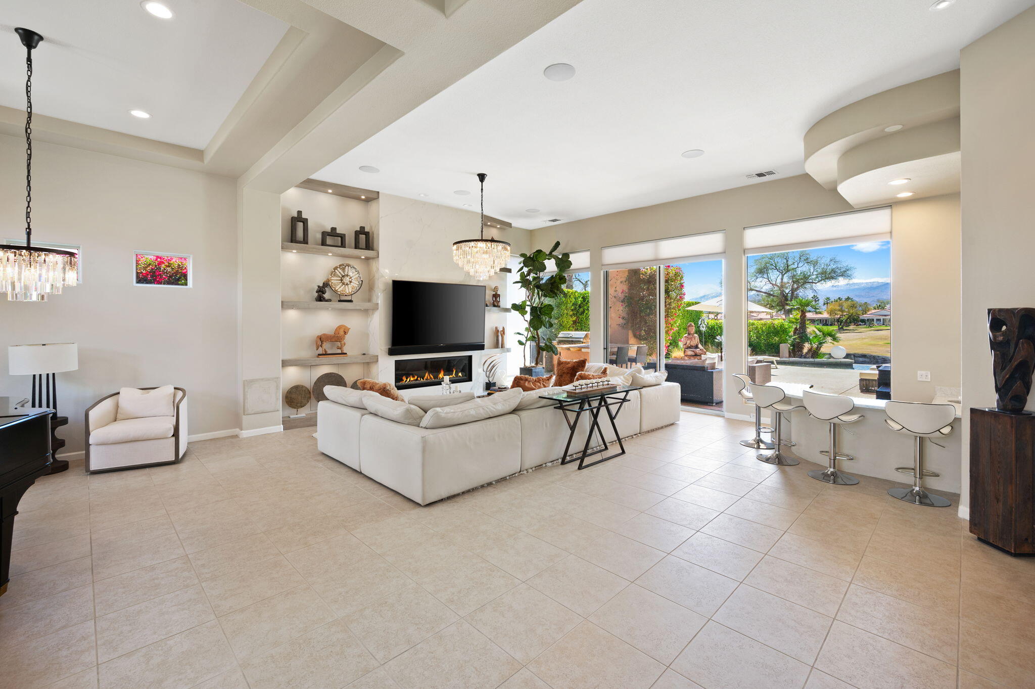 Welcome to this exquisite residence in the sought after neighborhood of Mission Hills/Legacy in Rancho Mirage. This gorgeous property has been updated and upgraded through and though, and will be available for lease during our 2026 Season for the months of January, February and March. As you enter from the private courtyard through double doors, you are greeted with opulence, soaring ceilings, open floor plan, and stunning exterior views, giving you that Five-Star resort feeling. The great room is equipped with a modern linear fireplace, marble wall housing an 80'' television, and wet bar furnished with a wine cooler and quartz counters, perfect for entertaining. Other interior amenities include chandeliers from Restoration Hardware, Sub-Zero refrigerator, double ovens, a six-burner Dacor gas range, and other top tier appliances adding to your resort type stay. The main suite has been completely remodeled including decorations from Restoration Hardware and a 400 sqft gym. Additionally, the main en suite was spared no expense to include quartz countertops, waterfall feature at the jetted jacuzzi tub, and steam shower. All bedrooms and bathrooms have been touched, not to mention the office having high-speed internet, a printer and sofa bed. Need just a little more room for extra guests? Enter the detached casita with Kitchenette, full bath, and its very own gas fireplace. Finally, exit out back to an absolutely amazing patio with custom built-in gas BBQ, smoker, refrigerator, an infinity edge pool overlooking the 16th fairway of the Pete Dye designed golf course, and absolutely incredible South-Western mountain views. This is the epitome of what desert living is all about.Interested in this Listing?