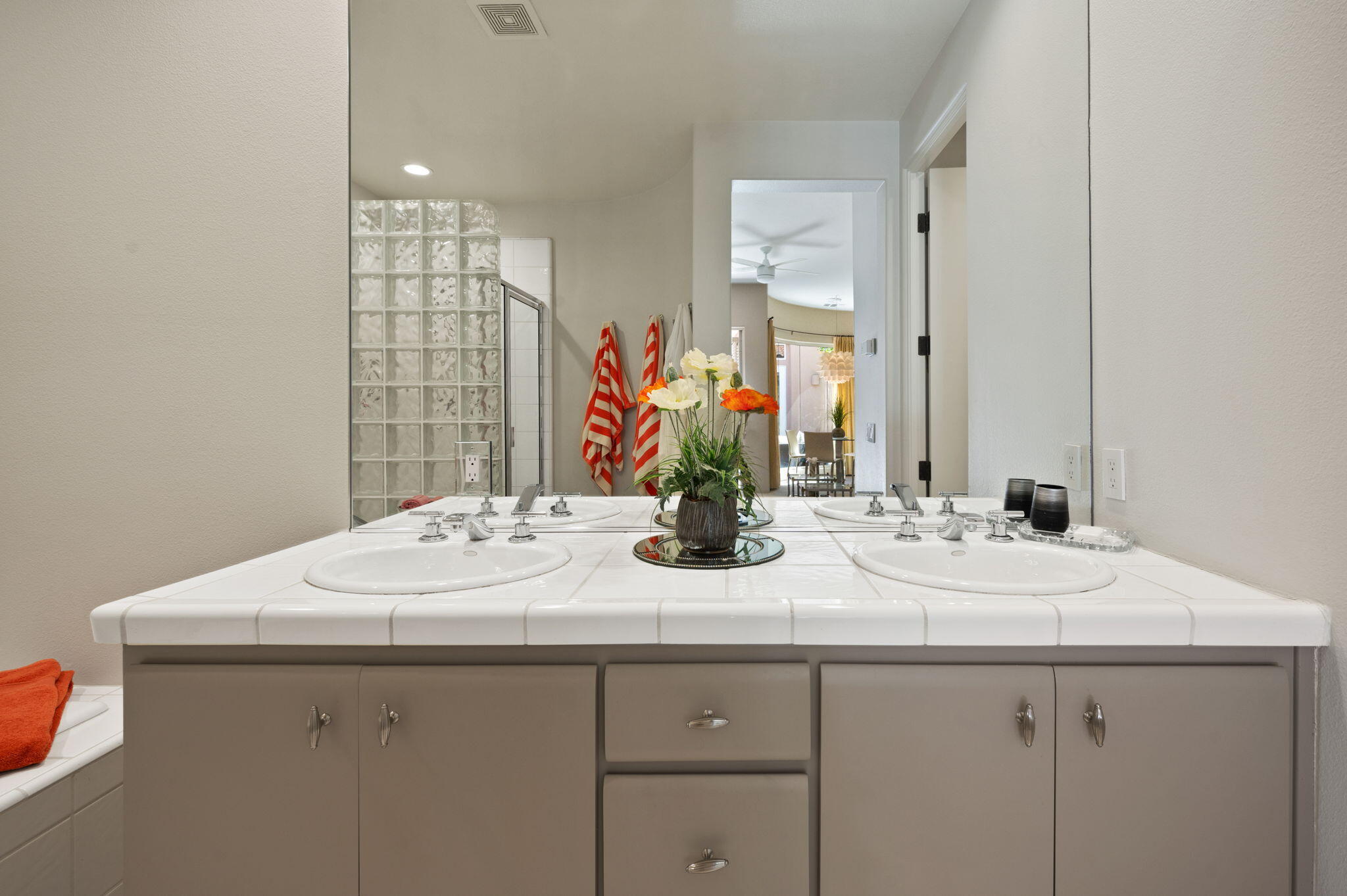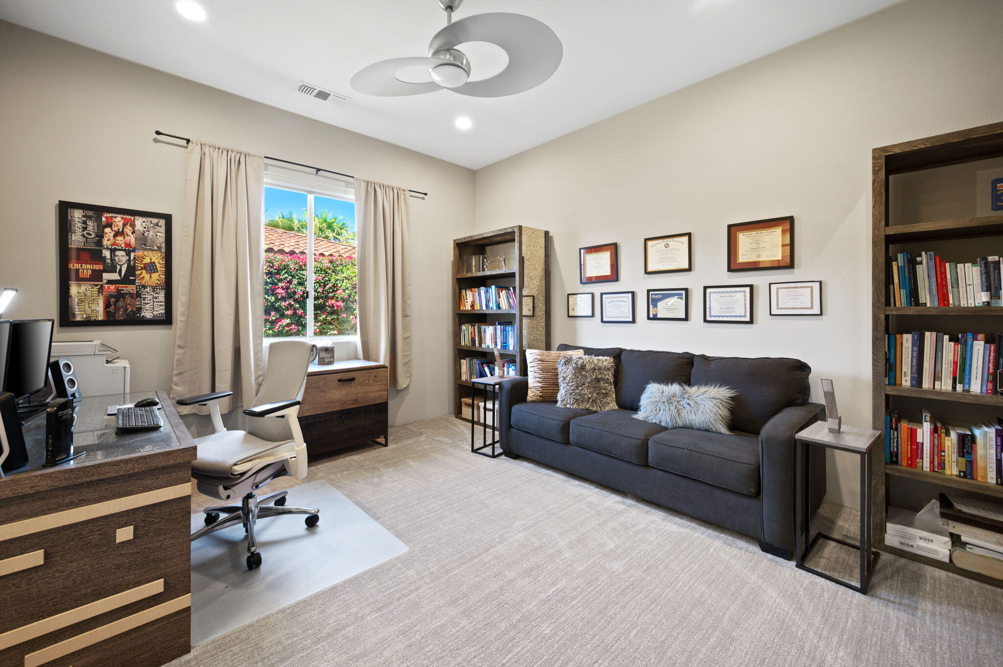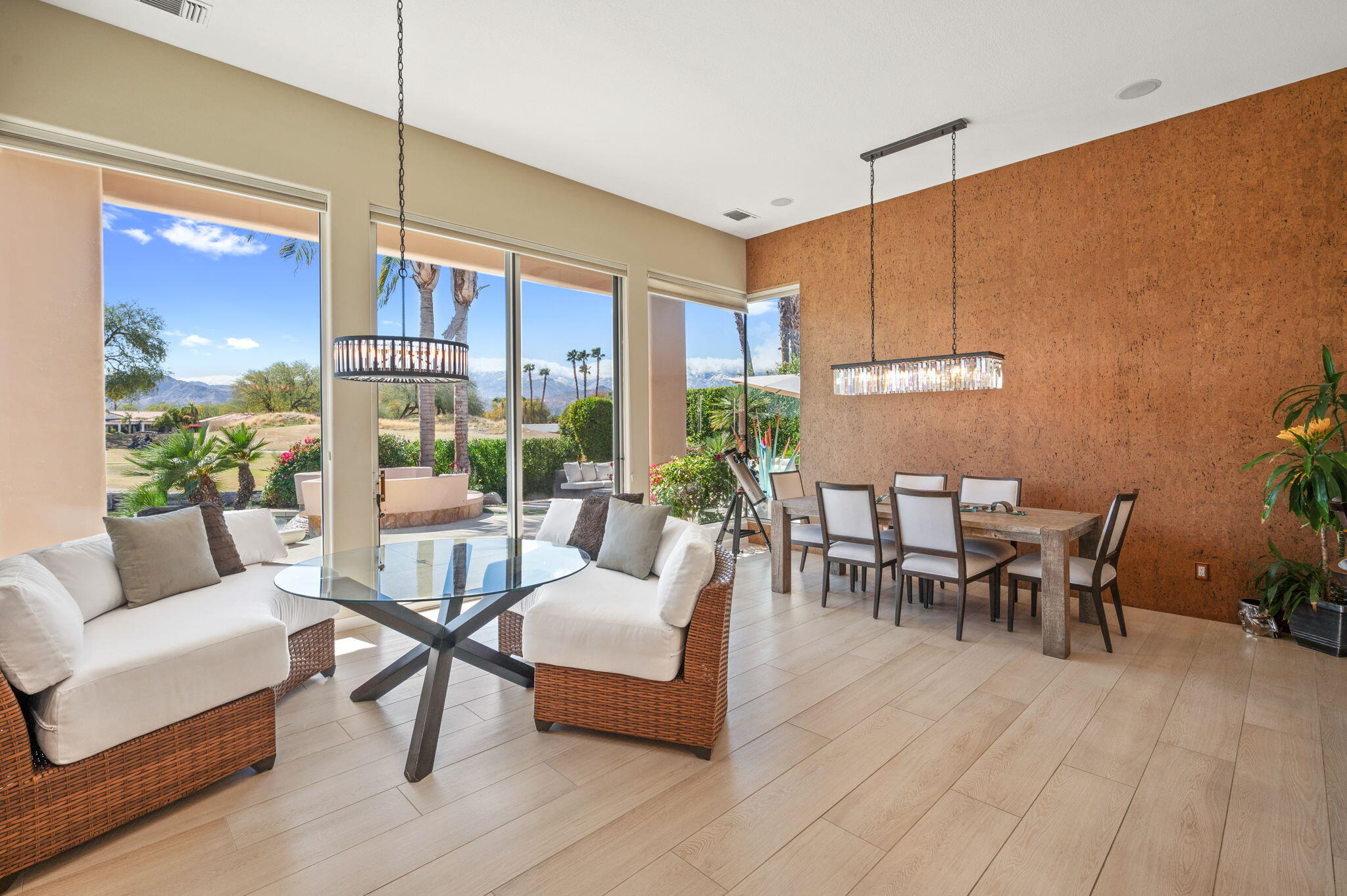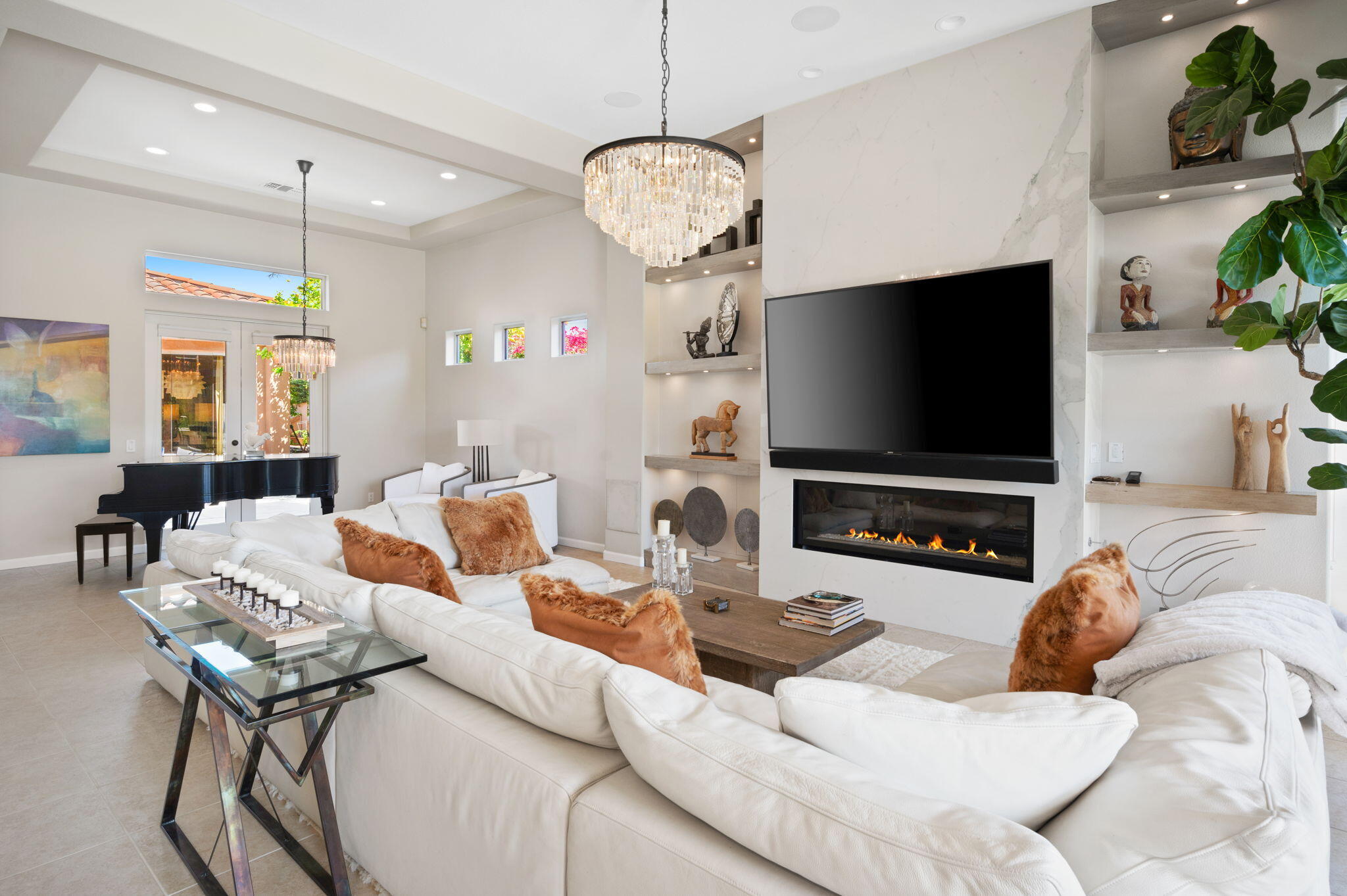 Welcome to this exquisite residence in the sought after neighborhood of Mission Hills/Legacy in Rancho Mirage. This gorgeous property has been updated and upgraded through and though, and will be available for lease during our 2026 Season for the months of January, February and March. As you enter from the private courtyard through double doors, you are greeted with opulence, soaring ceilings, open floor plan, and stunning exterior views, giving you that Five-Star resort feeling. The great room is equipped with a modern linear fireplace, marble wall housing an 80'' television, and wet bar furnished with a wine cooler and quartz counters, perfect for entertaining. Other interior amenities include chandeliers from Restoration Hardware, Sub-Zero refrigerator, double ovens, a six-burner Dacor gas range, and other top tier appliances adding to your resort type stay. The main suite has been completely remodeled including decorations from Restoration Hardware and a 400 sqft gym. Additionally, the main en suite was spared no expense to include quartz countertops, waterfall feature at the jetted jacuzzi tub, and steam shower. All bedrooms and bathrooms have been touched, not to mention the office having high-speed internet, a printer and sofa bed. Need just a little more room for extra guests? Enter the detached casita with Kitchenette, full bath, and its very own gas fireplace. Finally, exit out back to an absolutely amazing patio with custom built-in gas BBQ, smoker, refrigerator, an infinity edge pool overlooking the 16th fairway of the Pete Dye designed golf course, and absolutely incredible South-Western mountain views. This is the epitome of what desert living is all about.Interested in this Listing?