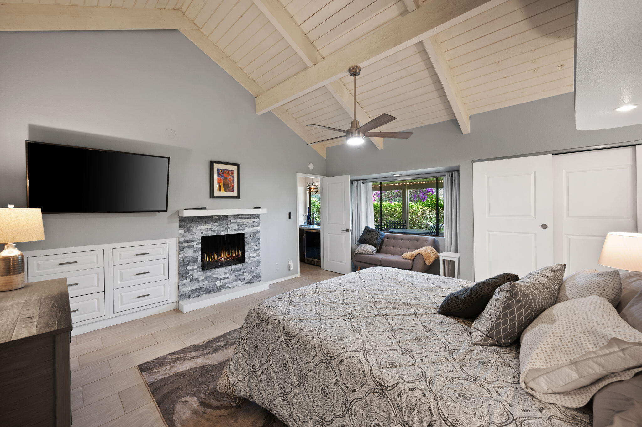 AVAILABLE Jan - Apr 2026 for $7200 per mo/3 month min. $8000 per month for a 2 month min. June to December $2800 mo/ with 2 month min.. $2700 mo/ with 3 month min, Beautifully upgraded and furnished, the extended Tennis Villa with 2 Bedrooms, 2 Baths and Office/Den features a quiet and private ambiance, surrounded by lovely greenbelts, mature landscaping and mountain views. Spacious Gathering Room features beautiful furnishings for entertaining and dining, with vaulted ceilings, fireplace, built in shelving, 65'' Smart TV, recessed lighting and Wet Bar with Beverage Refrigerator. Well appointed Granite Slab Kitchen features Gas Stove and Oven, Refrigerator, Butcher Block Prep area and abundance of storage space. Primary Bedroom features a fireplace, vaulted ceilings, recessed lighting, his and her closets, his and her separate vanities and custom glass enclosed walk in shower. Guest Bedroom is spacious and includes vaulted ceilings, walk in closet, sliding doors and a rare, second window overlooking a greenbelt and mature landscaping. Extra large extended patio. Laundry room includes Washer and Dryer. Detached 2 Car garage is a short walk from the condo. Spectrum Cable TV/Wifi and 4 pools and 4 spas. Sports Courts, Ftiness Center and Clubhouse require separate membershup fee.Interested in this Listing?