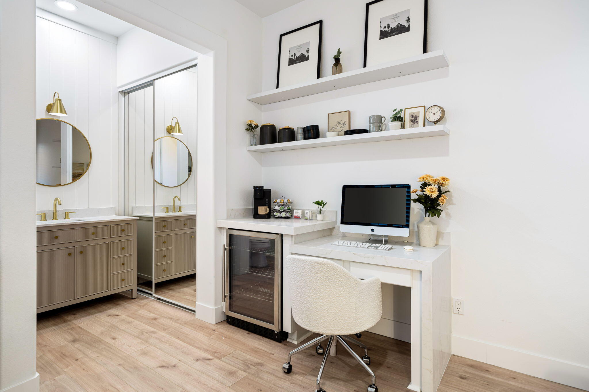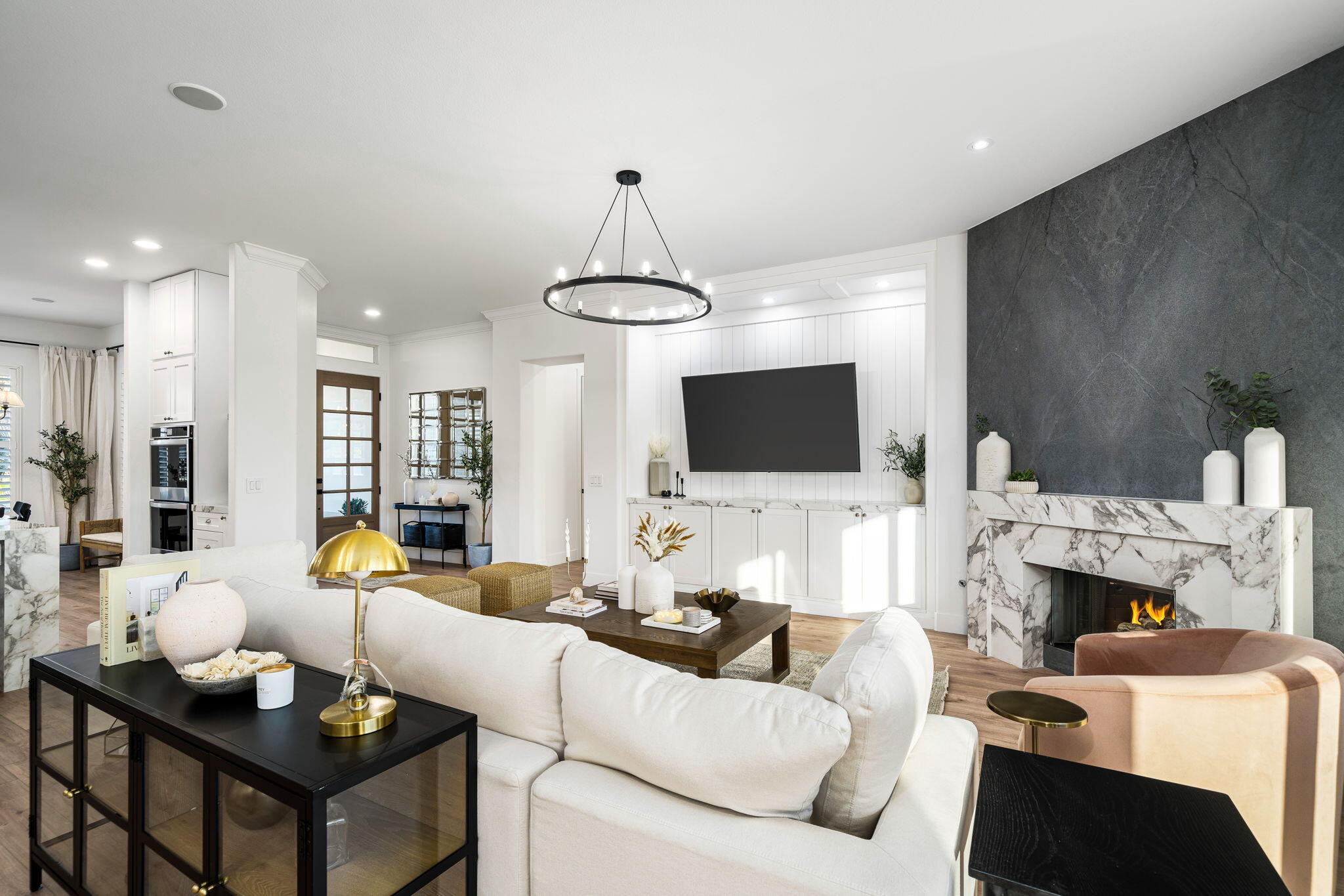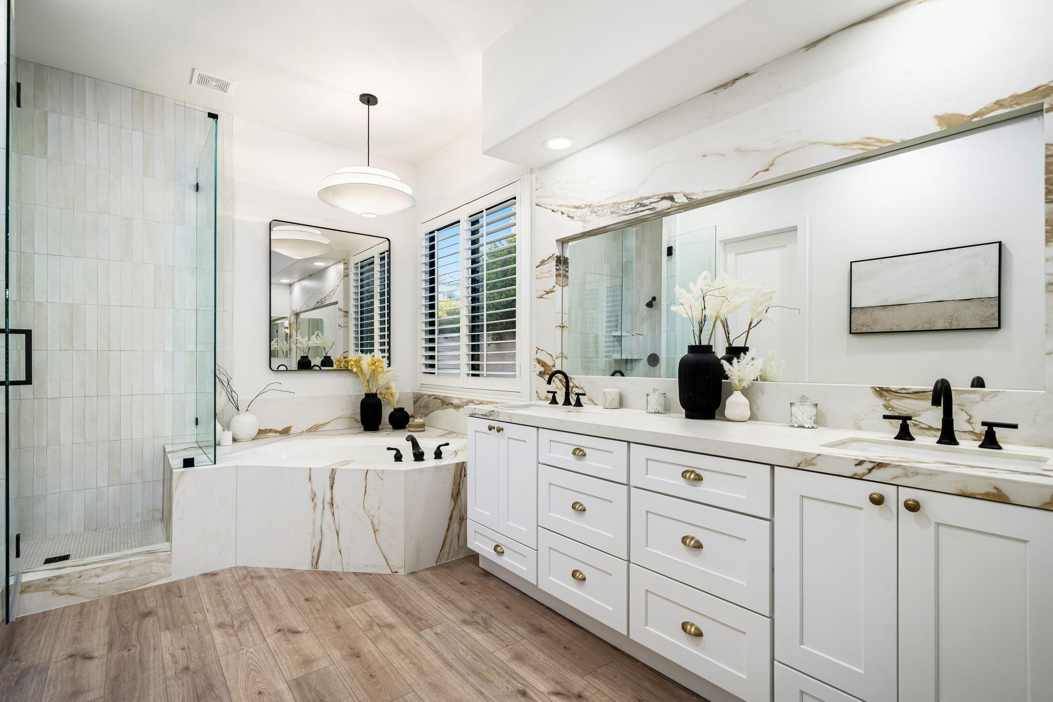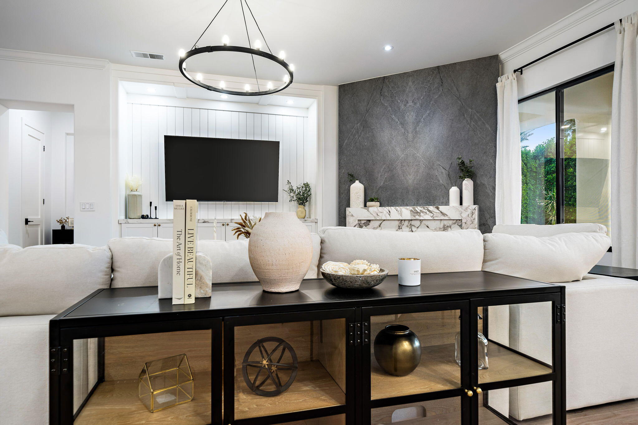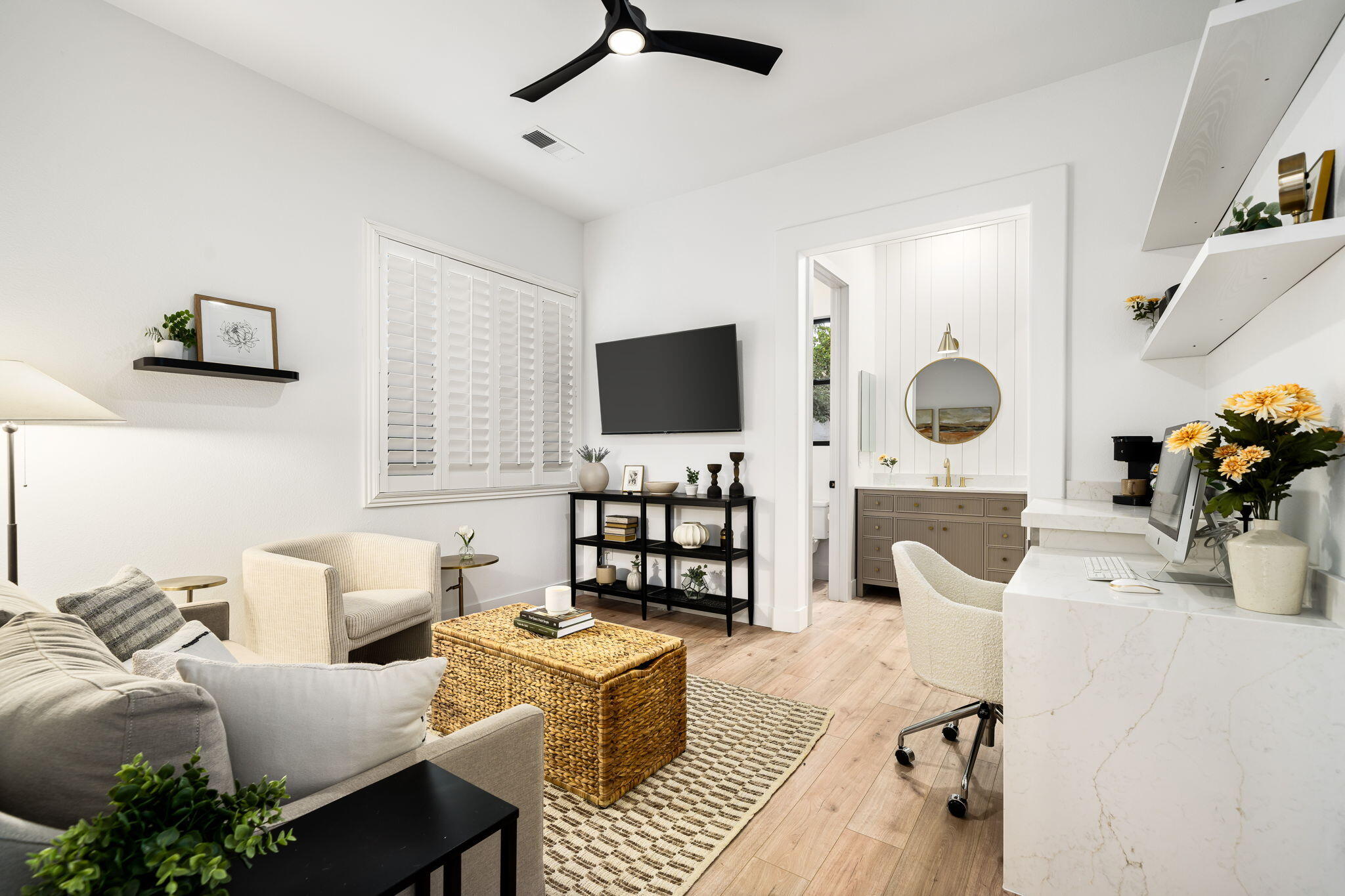 NOW AVAILABLE ALL MONTHS!!!Discover this newly remodeled luxury home nestled within the gated community of La Terraza in Rancho Mirage. Once the model for the community's most desirable floorplan, this spacious single-level residence features 4 bedrooms, including a detached casita with a private entrance, and 3.5 baths, along with a 3-car garage. Set on an expansive nearly 10,019 square foot lot, the home boasts breathtaking mountain views.Spanning approximately 2,362 square feet, this thoughtfully designed property includes a primary suite with backyard access, a double-tray ceiling, a walk-in closet, and a luxurious spa-inspired bath. Every detail has been meticulously crafted, from the high-end luxury vinyl plank flooring to stylish LED lighting fixtures, new millwork, remodeled baths, and a new laundry room equipped with an LG washer and dryer set.As you enter through custom French-style doors, you'll be welcomed by high ceilings and abundant natural light, creating an inviting atmosphere perfect for entertaining or everyday living. The open living and dining area features a stunning custom fireplace, adorned with floor-to-ceiling book-matched porcelain slabs and an elegant full-frame porcelain mantle.The chef's kitchen serves as a true centerpiece, showcasing a custom dual-waterfall island illuminated by premium Visual Comfort pendants, solid birch Shaker cabinetry, polished porcelain countertops with a matching backsplash, a custom porcelain hood, a cozy breakfast nook, and stainless steel appliances, including a 48'' built-in commercial-grade Sub-Zero refrigerator.Step outside to enjoy the expansive pool and spa, a putting green for leisurely activities, and a built-in BBQ station complete with a two-drawer beverage refrigerator--perfect for hosting gatherings. Guests will appreciate the separate casita, which offers a kitchenette with a new under-counter refrigerator and an ensuite bath with a modern vanity. This space also includes a custom-built cabinet wInterested in this Listing?