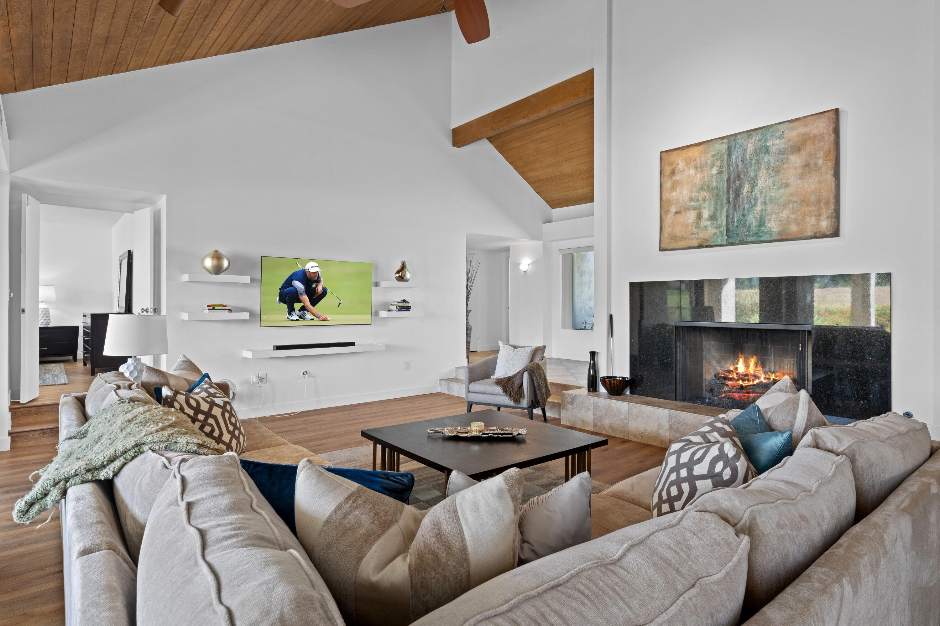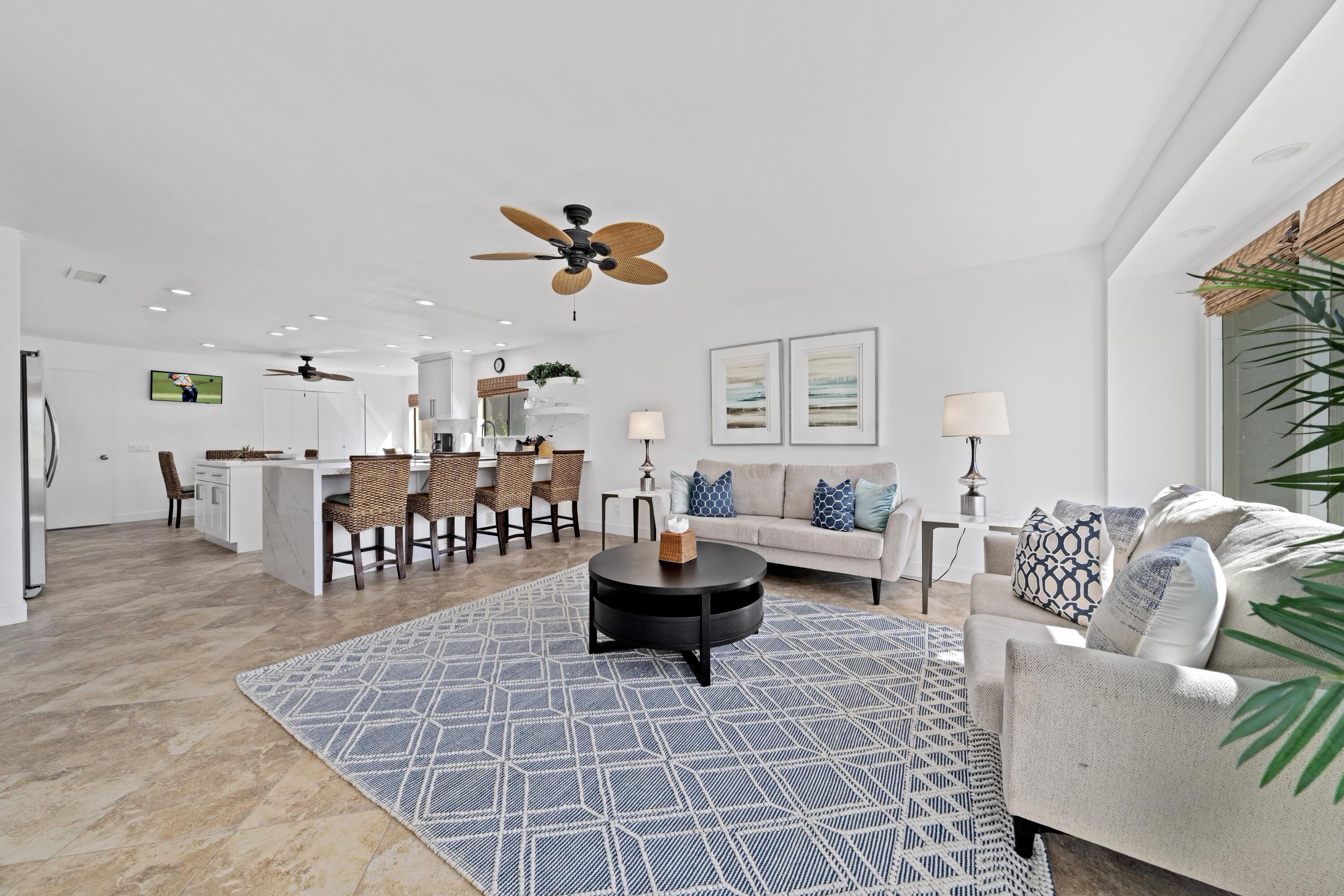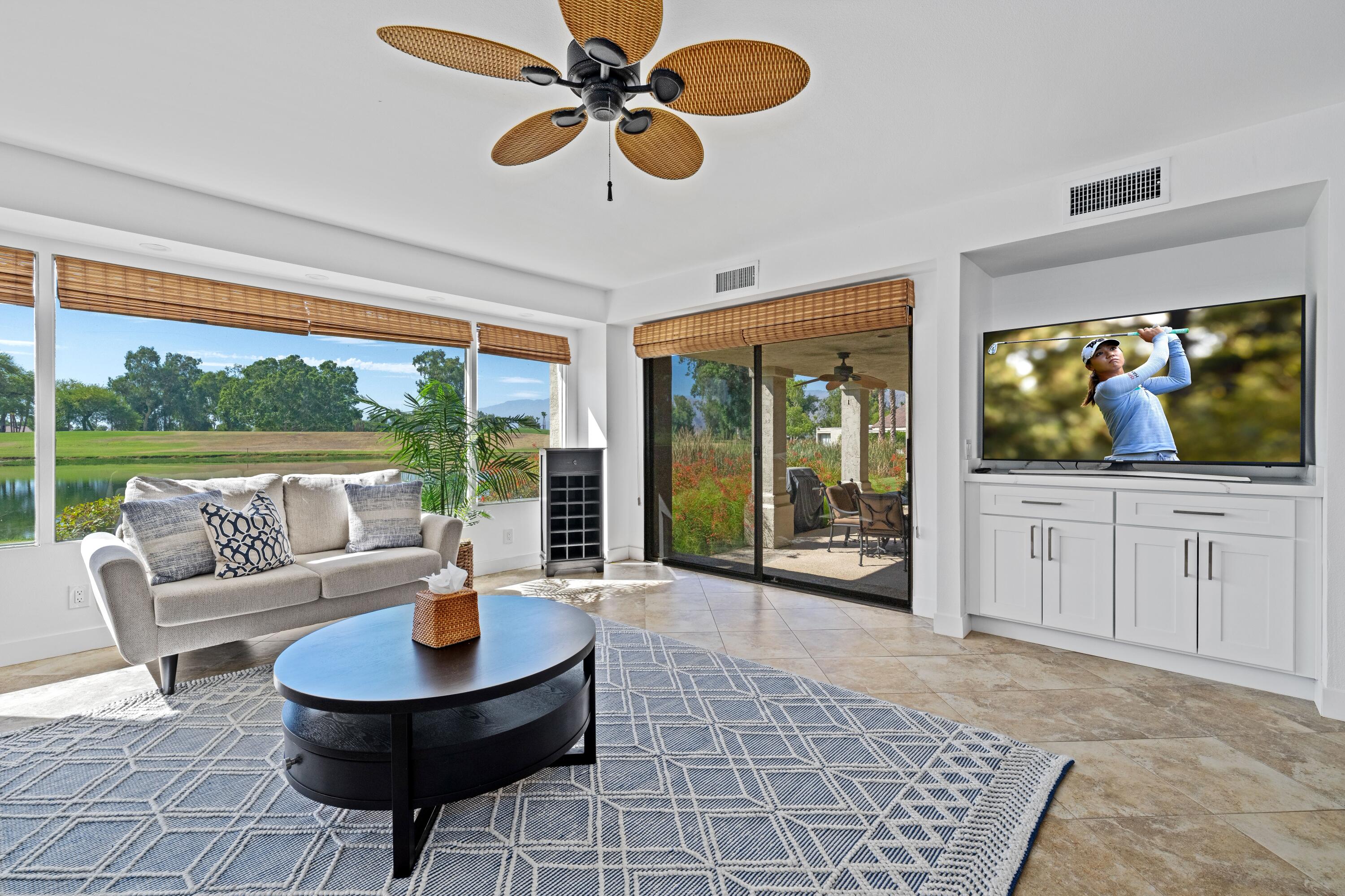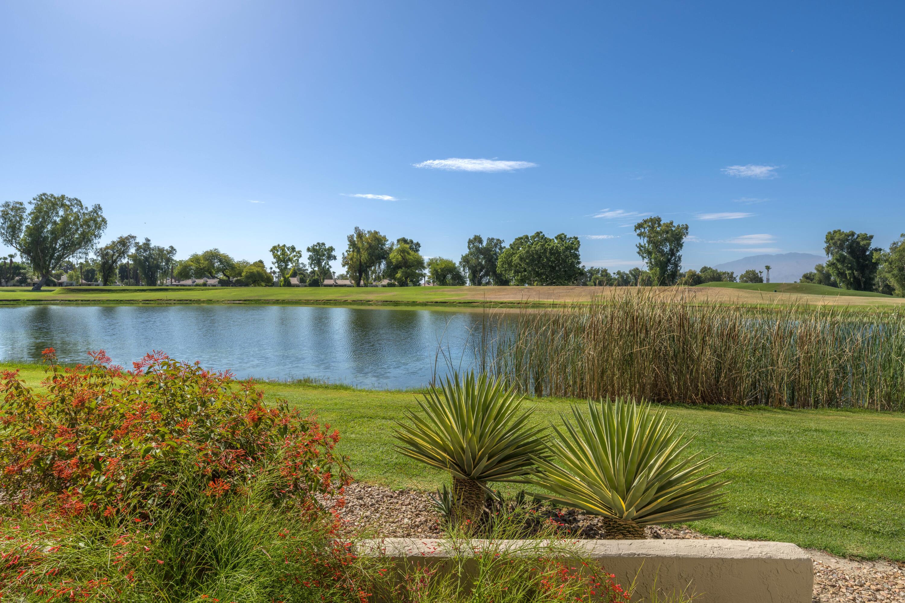 Experience the epitome of modern luxury in this fully furnished, remodeled contemporary home overlooking a serene lake and the 18th fairway of the Dinah Shore Tournament Course. The entrance opens to a spacious courtyard, offering abundant outdoor living space. Inside, the remodeled kitchen, featuring a large island, is perfect for culinary delights, while the open concept encourages socializing in the adjoining great room. The living room and formal dining area provide breathtaking views of the lake, complemented by a contemporary fireplace and convenient bar with quartz counters throughout the home.Step onto the expansive back patio to enjoy impressive views of the golf course and lake, creating a private and tranquil space to unwind. The primary bedroom also features stunning views and a remodeled ensuite bathroom with a spacious shower and double vanities. Each guest bedroom has its own private bathroom adjacent, ensuring comfort and privacy. A golf cart is available in the garage for tenants to use during their stay.This residence seamlessly blends comfort and sophistication, inviting you to savor lakeside living with breathtaking golf course views. Welcome to contemporary elegance in a spectacular natural setting.House cleaning service is included in the lease price as well as the use of a golf cart. Not available Jan. thru Mar. 2025. Not Available Jan. through April 2026.Interested in this Listing?