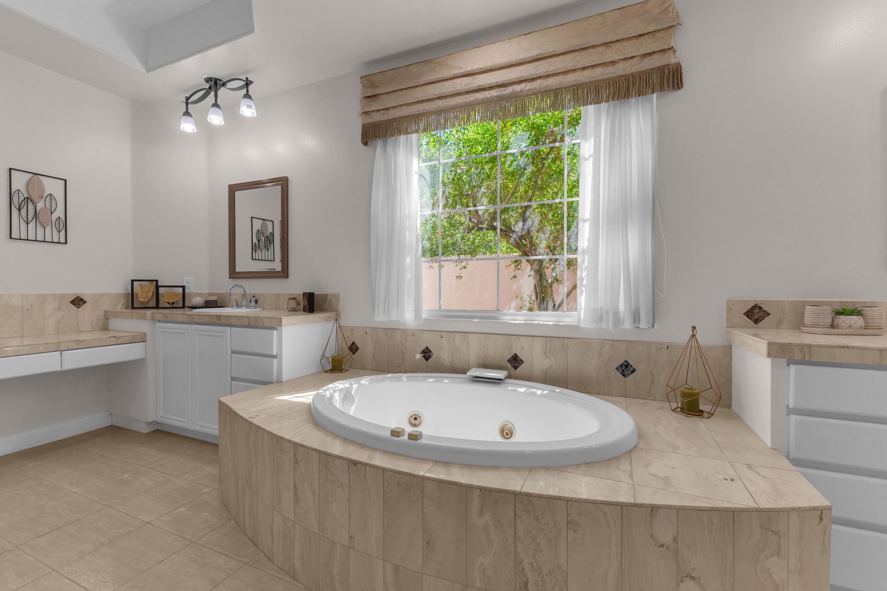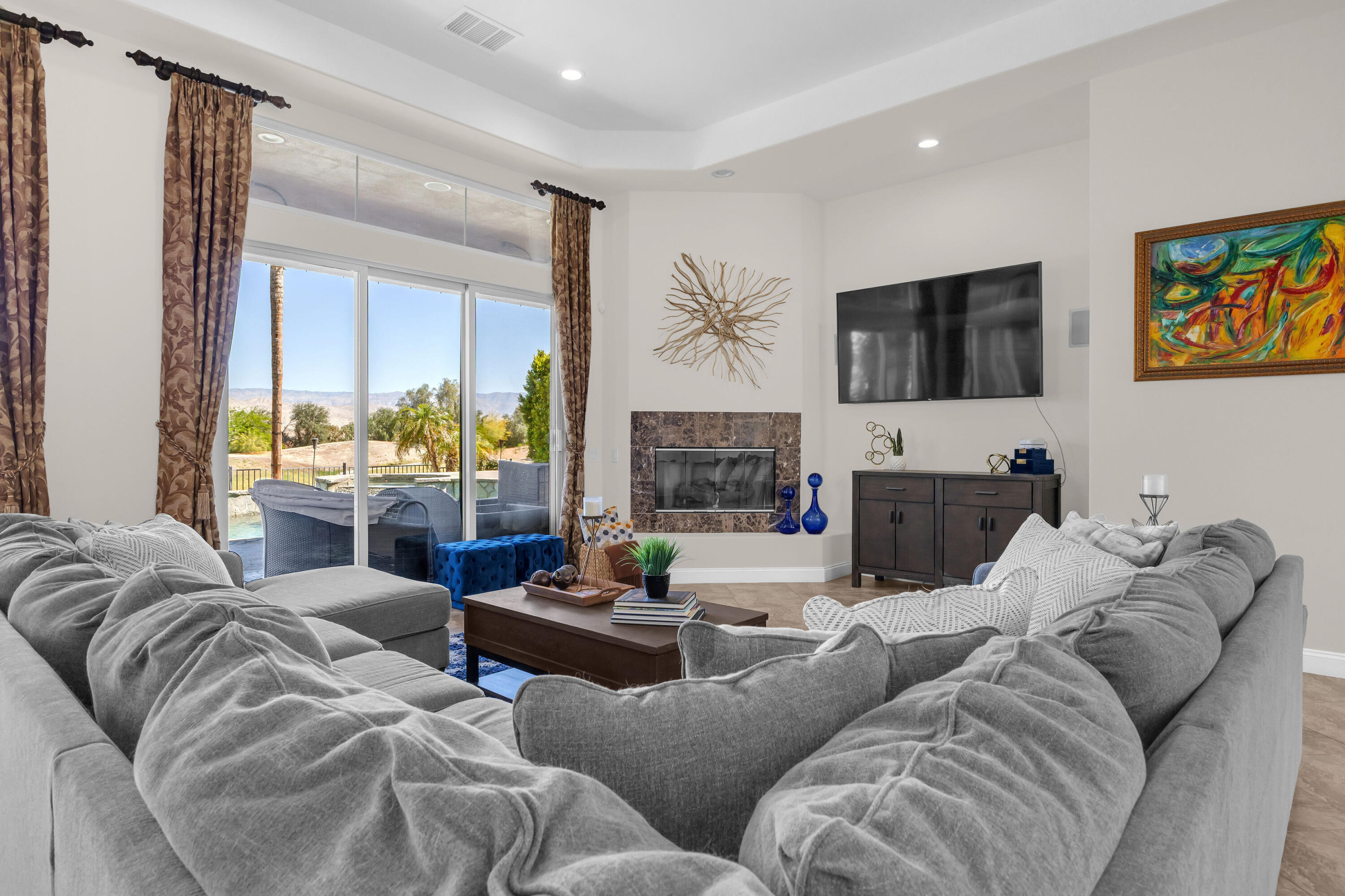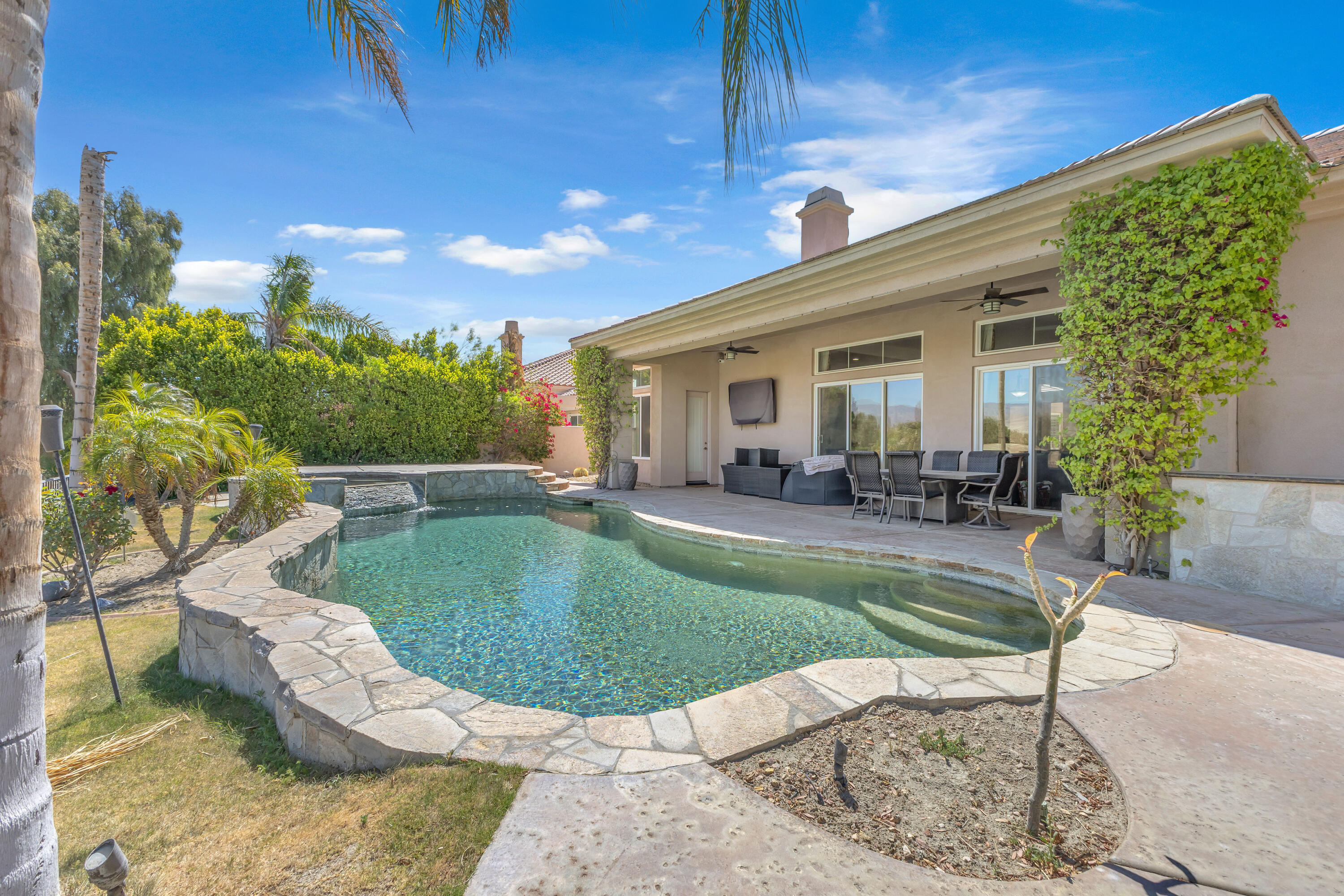 Let your time in the sunshine begin with this beautiful well appointed home! Discover Elevated Desert Living at Guard Gated Mira Vista! This expanded Piedra floor plan offers 4 spacious en suite bedrooms, 4.5 bathrooms, and solar system--blending luxury with efficiency. The attached casita, complete with its own bath and steam shower, is perfect for guests or multi generational traveling. Step through a private courtyard and into a light-filled interior with soaring ceilings and uninterrupted views of the Gary Player Mission Hills North Golf Course--plus striking mountain backdrops. The open layout is ideal for both relaxing and entertaining, featuring thoughtful upgrades like surround sound (indoors and on the patio), a Swarovski crystal chandelier, and a cozy outdoor gas fire pit. Outside, enjoy your own private oasis with a saltwater pool and spa, extensive patio space, and peaceful golf course views--perfect for gatherings or quiet sunset evenings. Access to two tennis courts, this home checks every box for desert luxury. Rates Vary by time of year and lengeth of stay!Interested in this Listing?