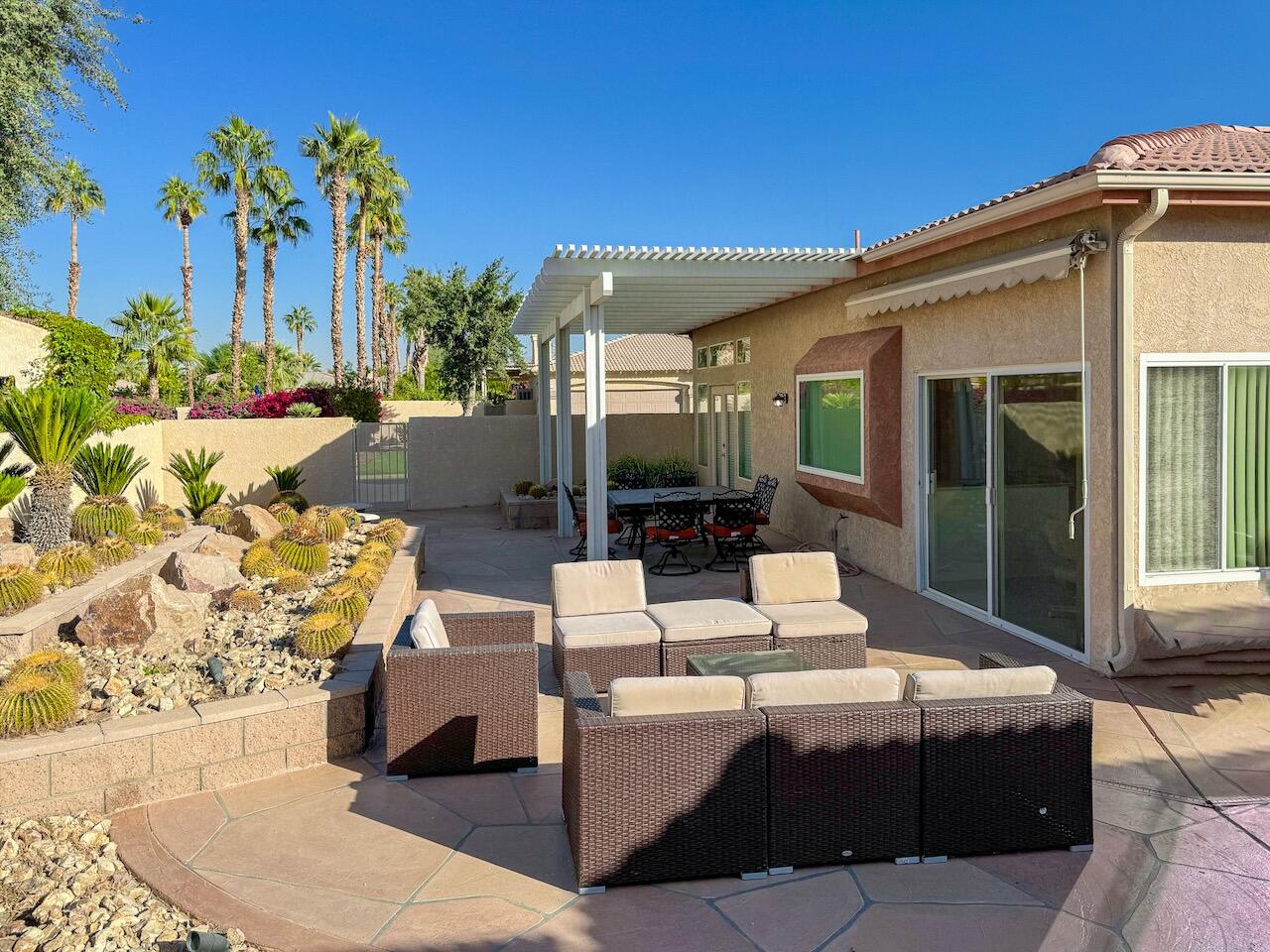 Tucked away amidst gorgeous mountain views, this 3-bedroom, 2-bathroom vacation rental offers the perfect blend of comfort and convenience. You'll love the spacious living room boasting a cozy fireplace and a state-of-the-art flat-screen TV, perfect for relaxing after a day of exploration. Windows bathe the rooms in natural light, creating a warm ambiance throughout the home. Enjoy meals in a spacious dining room with a picturesque backyard view. The fully equipped kitchen with an eat-in dining area is perfect for enjoying breakfast with family or preparing a gourmet meal. Step outside to the large wrap-around patio and soak in the mountain views. Whether sipping morning coffee or hosting an evening soiree, this outdoor haven will become your favorite spot. The attached 2-car garage adds convenience, providing ample space for vehicles and recreational equipment. Within the community, you'll have access to the nearby community pool and two spas, allowing you to indulge in relaxation or invigorating swims. Stroll through the community's scenic walking paths and experience serenity at its finest. And when you're ready to explore beyond the gates, you'll discover many attractions just outside. The McCallum Theater presents world-class entertainment, and you can shop to your heart's content on El Paseo or enjoy dining and entertainment at The River. Rental rates: $6,000 Jan-Ap & Oct-Dec, $4,000 May-Sep.Interested in this Listing?