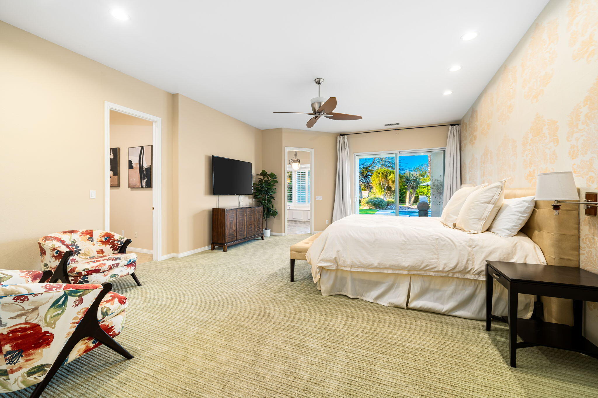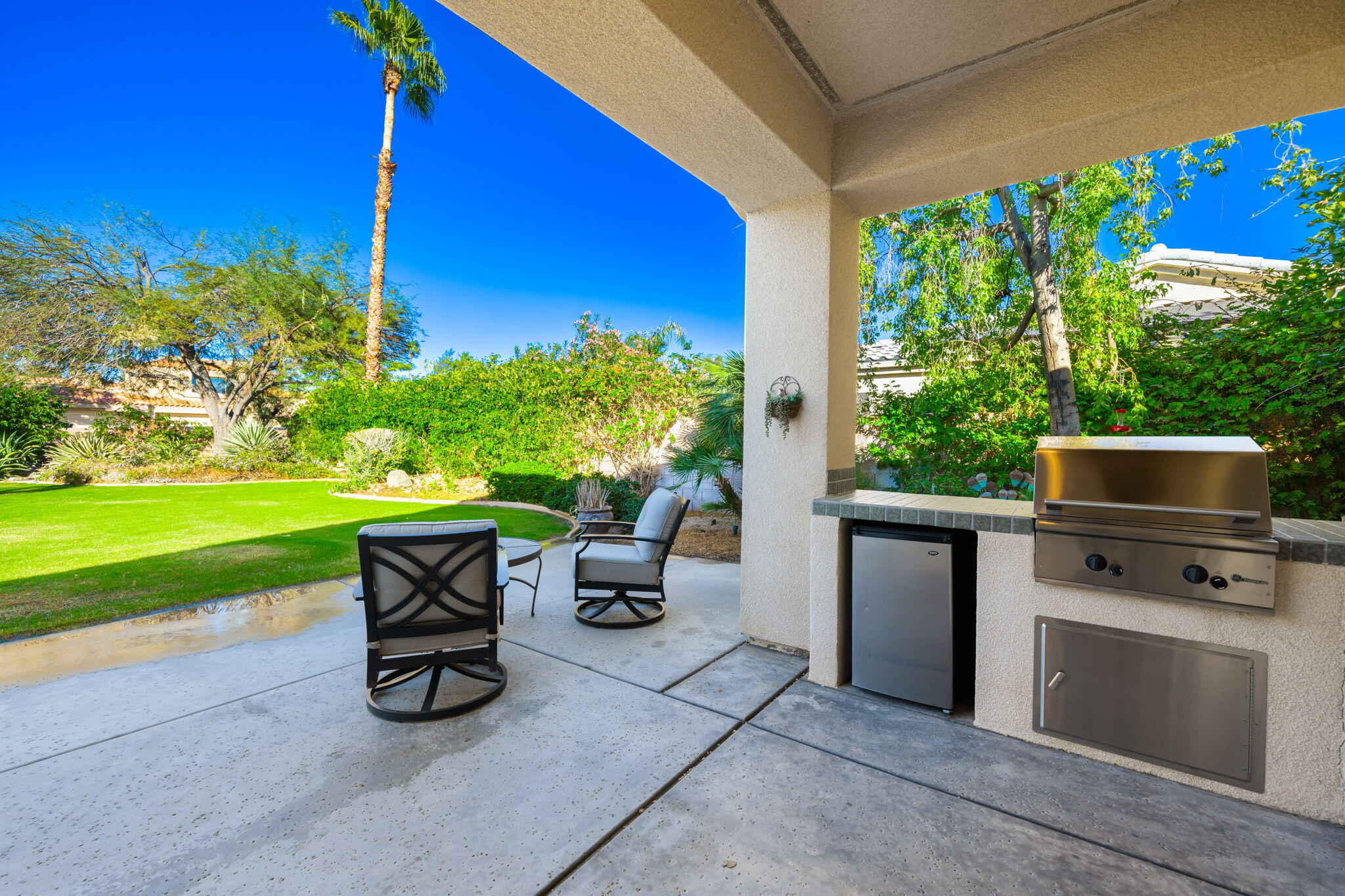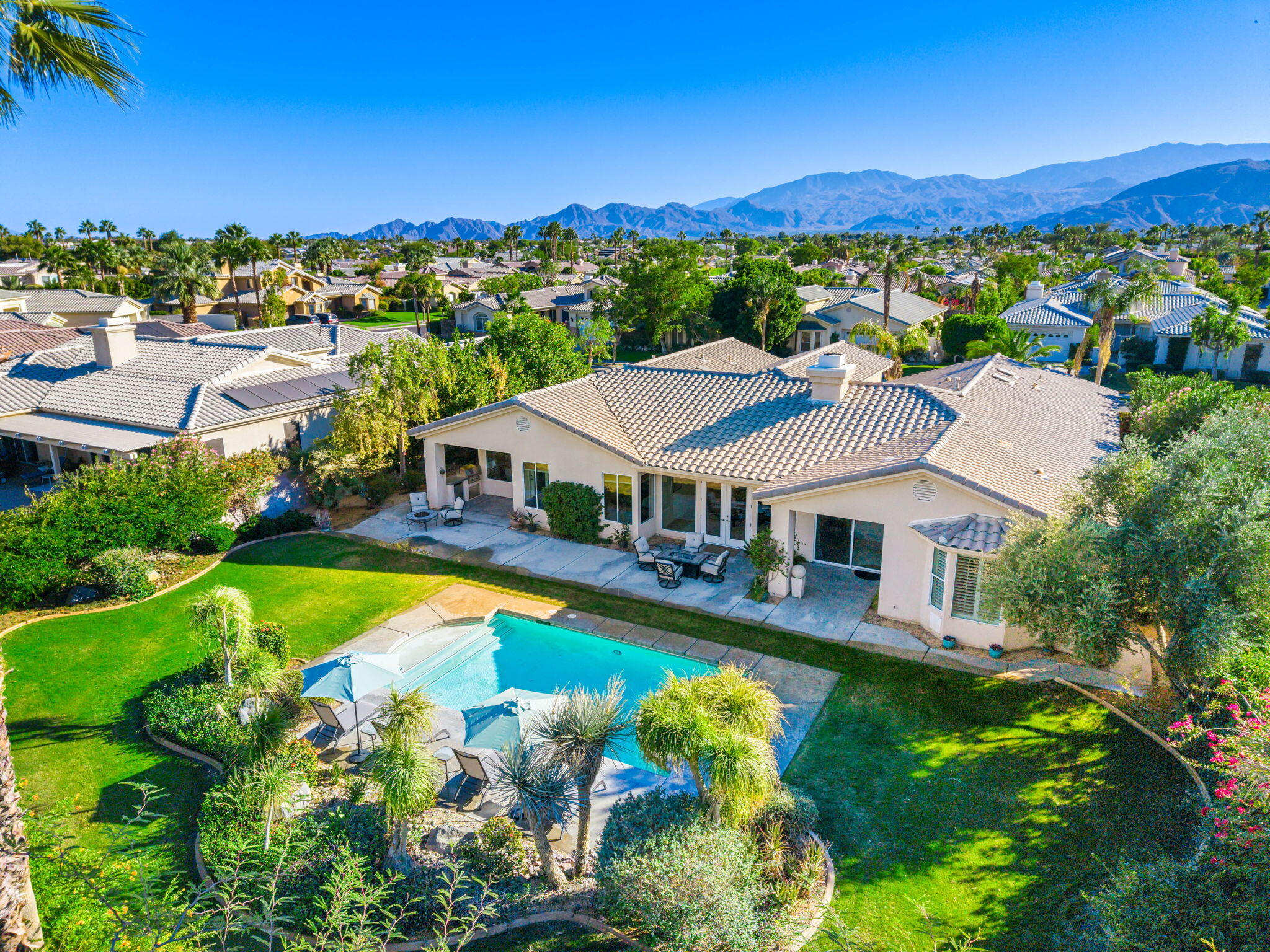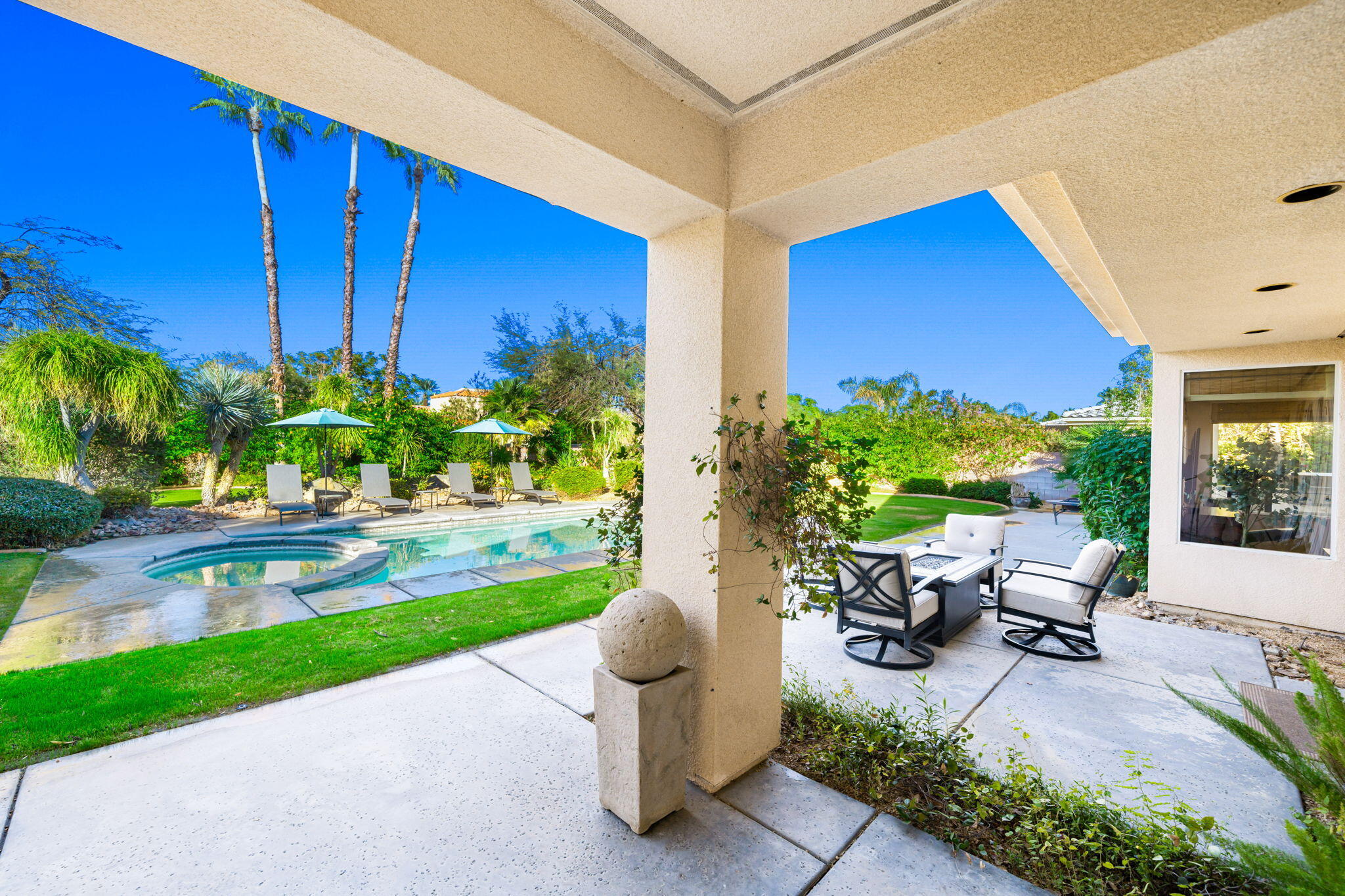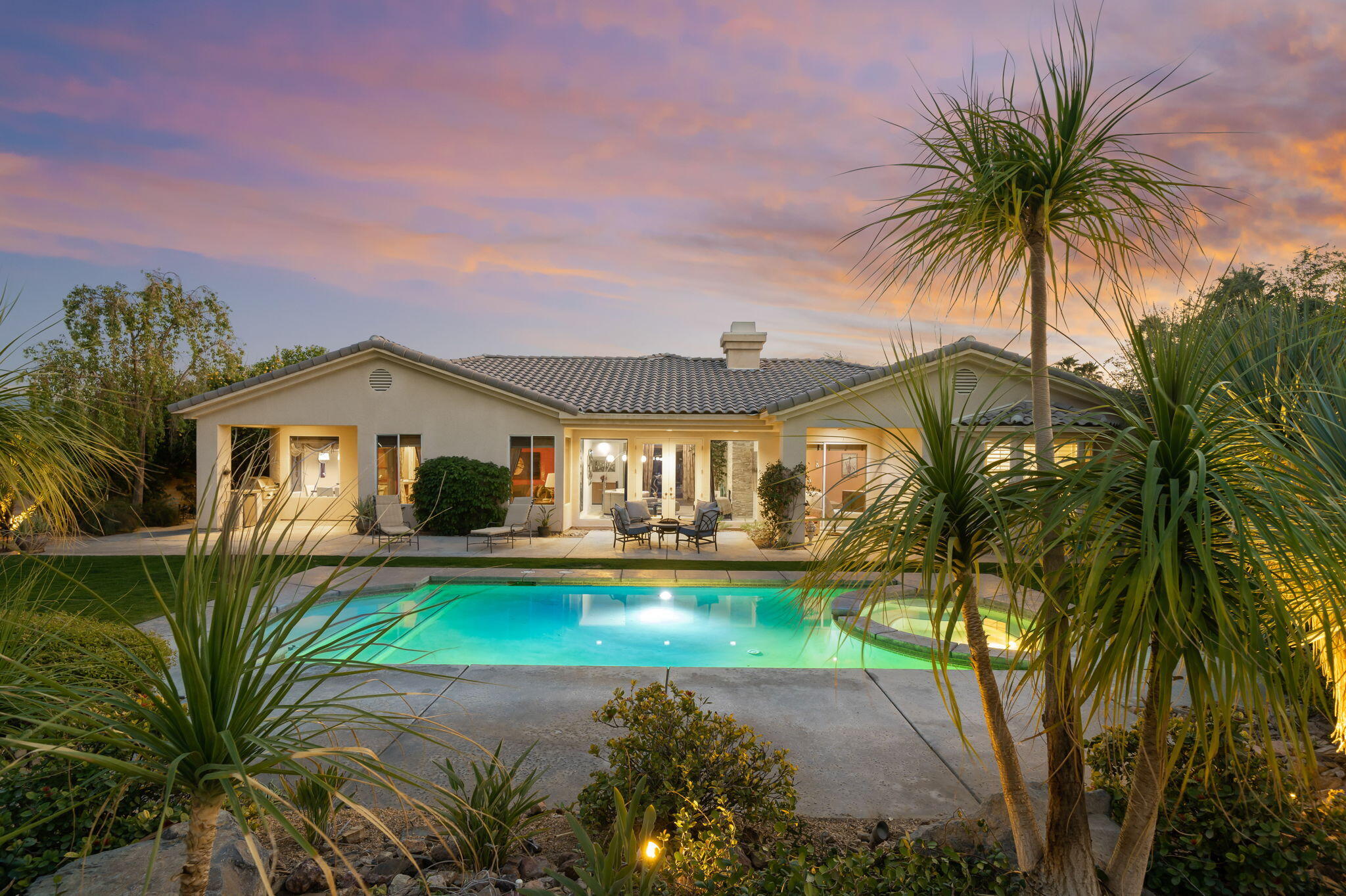 NOW AVAILABLE ALL MONTHS, LONG TERM OR SEASONAL Discover an unparalleled blend of sophistication and effortless elegance in this stunning 5-bedroom, 4-bathroom Princess model home, nestled in the highly sought-after Victoria Falls community. Designed for both grand entertaining and intimate gatherings, this spacious residence features an open and flowing layout with impeccable craftsmanship at every turn.Step inside to find soaring ceilings, pristine tile floors, and striking architectural details that create a warm yet luxurious ambiance. The gourmet kitchen is a chef's dream, boasting custom cabinetry, gleaming granite countertops, and premium appliances, all seamlessly connected to a breakfast nook and an oversized family room for added comfort and privacy. The elegant living and dining areas offer a welcoming space to entertain guests in style.The lavish primary suite is a private retreat, complete with a spa-inspired bathroom, dual vanities, an expansive walk-in closet, and a versatile flex room--perfect for a home office, nursery, or designer dressing room. Four additional guest bedrooms provide ample space for family and visitors, ensuring comfort for all.Step outside to your private desert sanctuary, where a sprawling 17,000-square-foot lot boasts a sparkling lap pool and spa, perfect for enjoying the serene surroundings. The entertainment patio offers the ideal setting for outdoor relaxation and gatherings.Interested in this Listing?