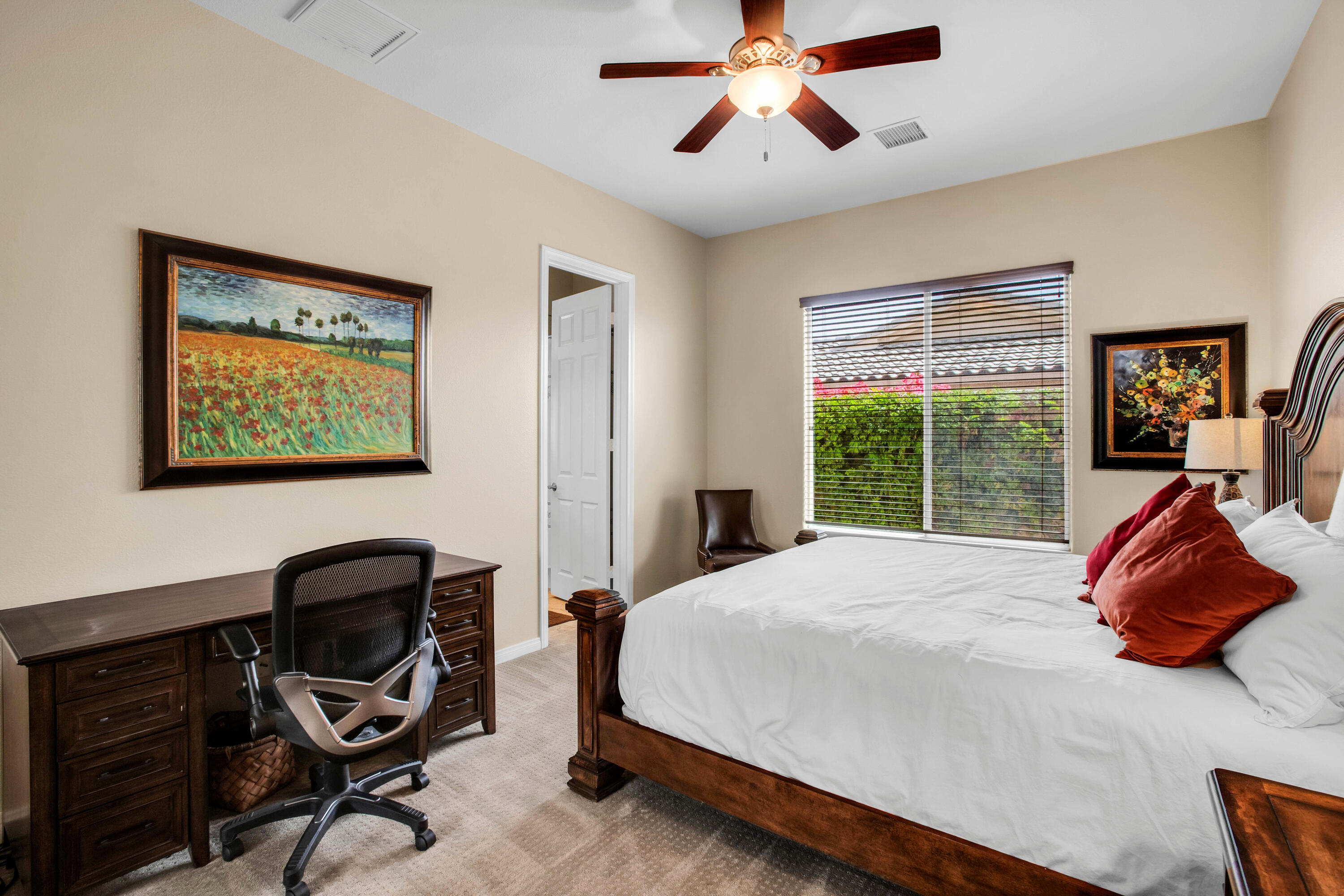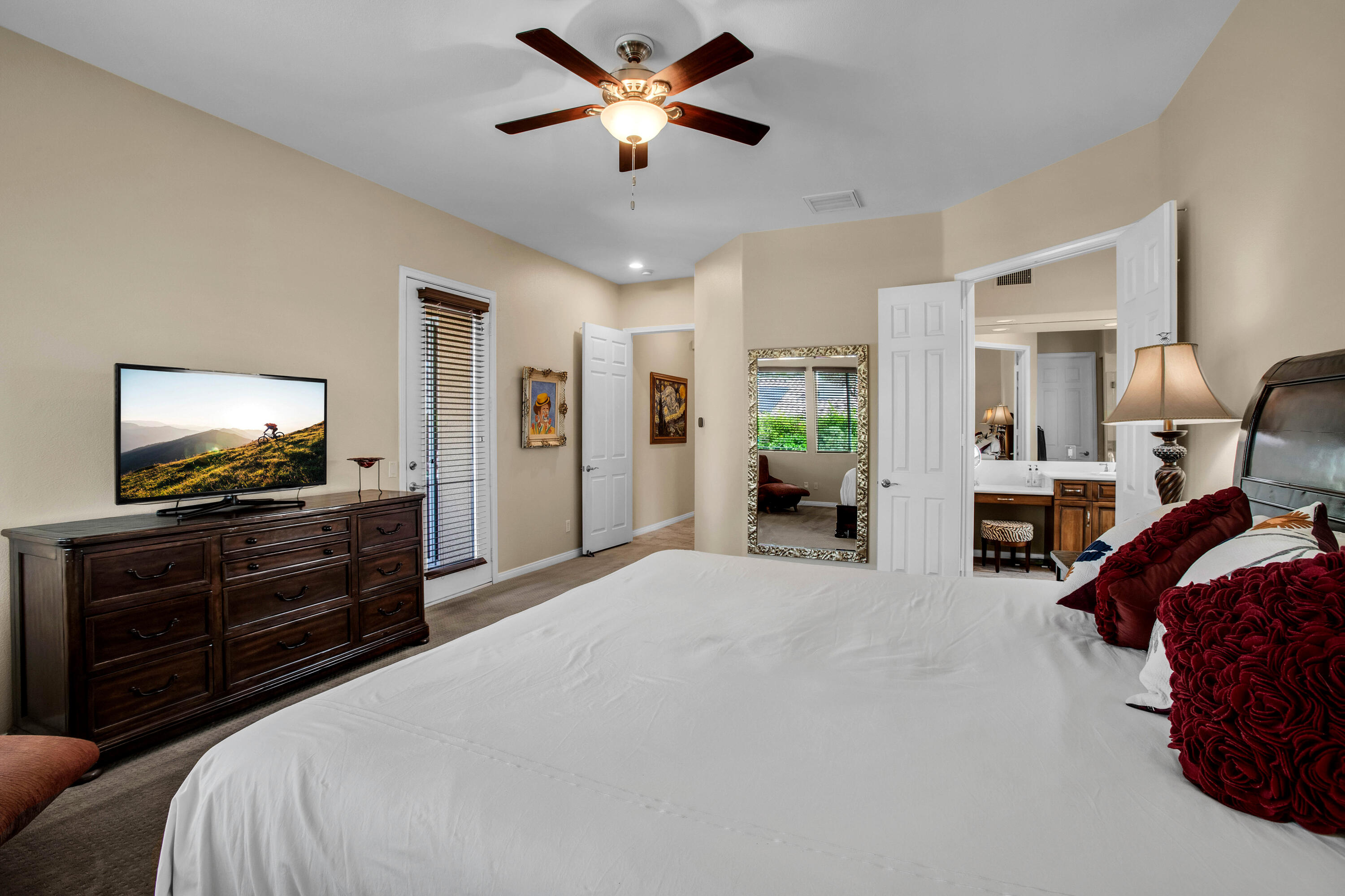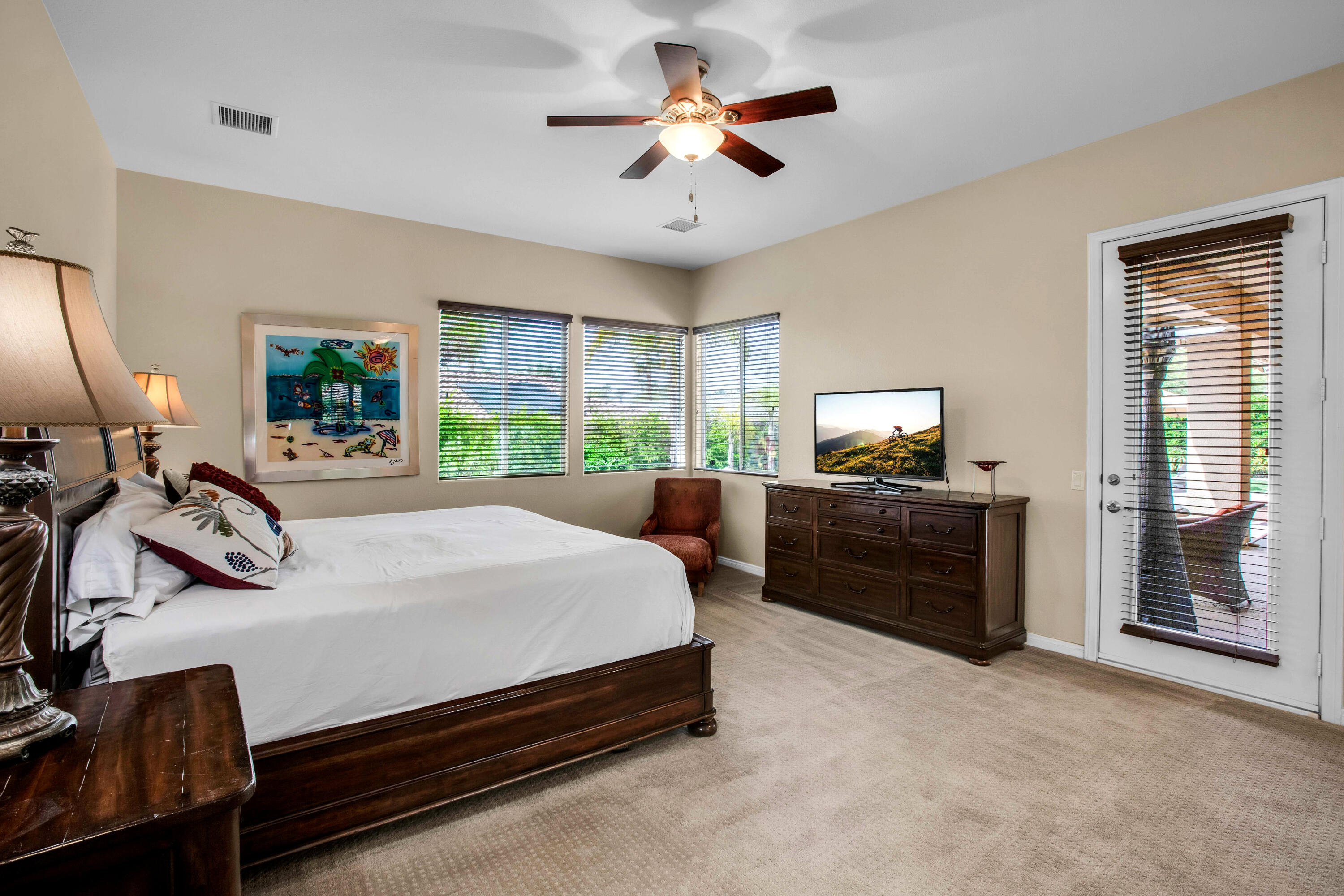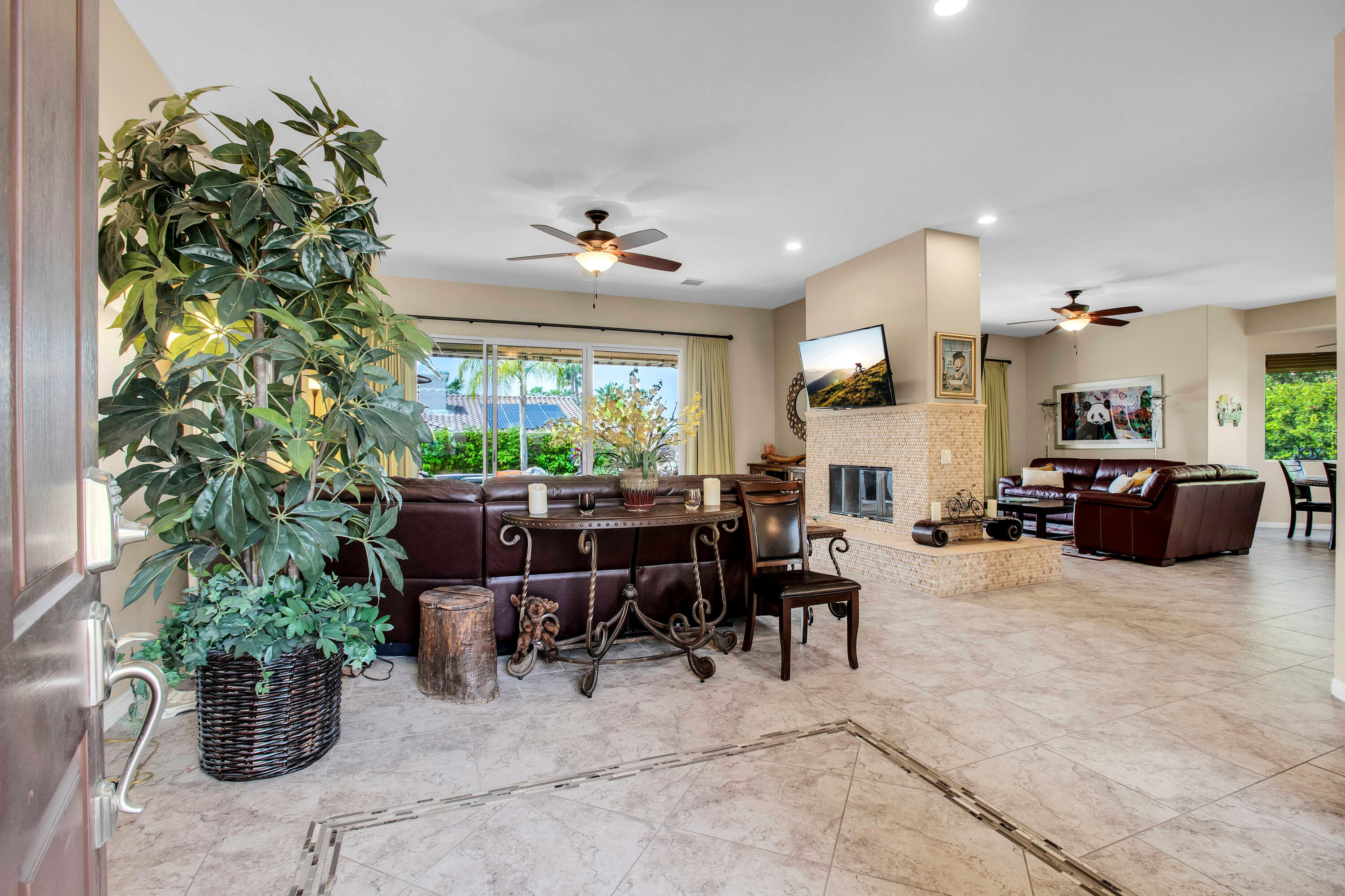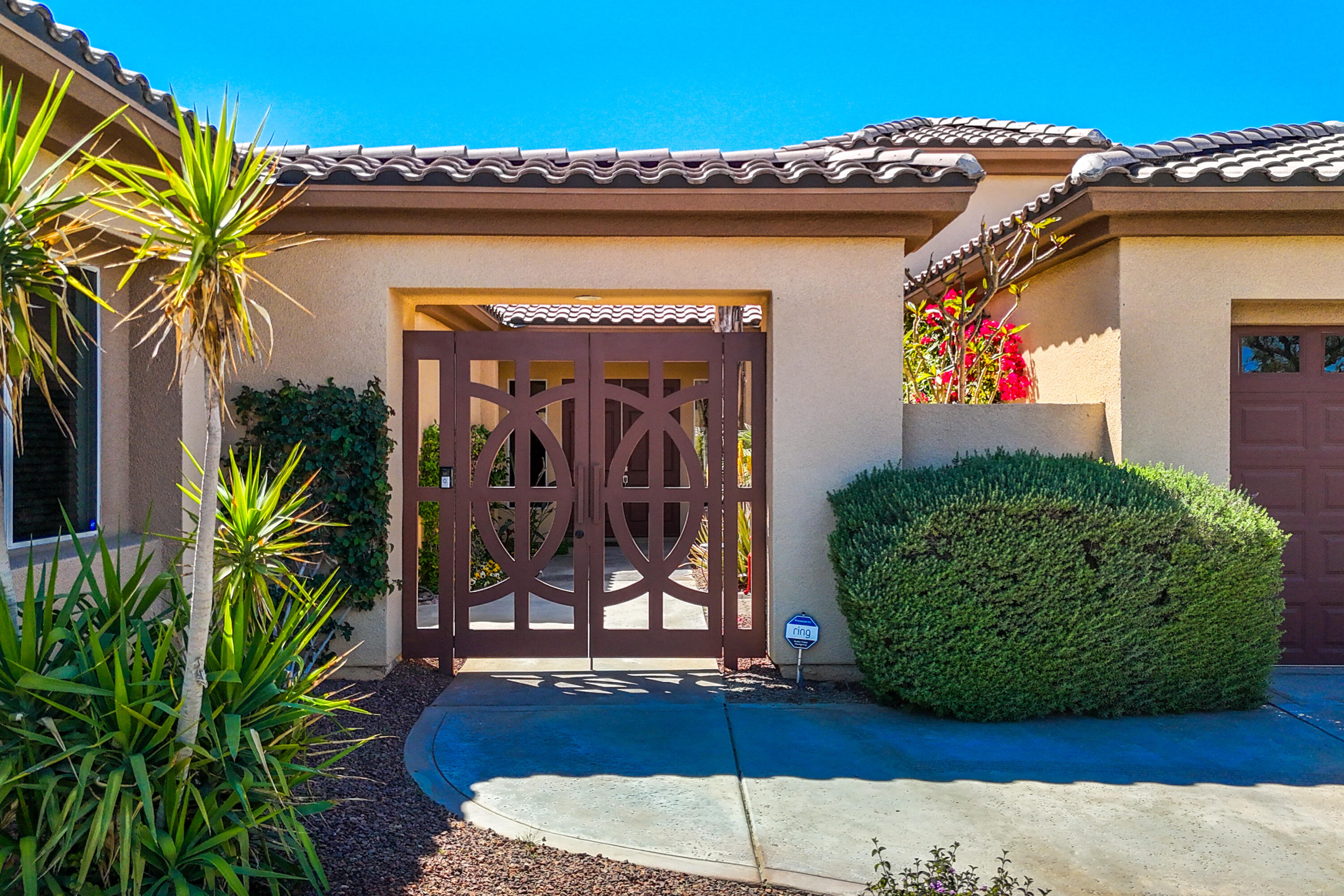 3 months minimum furnished rental available until Jan 15th, 2026. Turnkey furnished, totally remodeled, resort style, saltwater pool w/waterfall home, in super secure, quiet, gated, prestigious neighborhood, located at the end of a quiet cul de sac. Massive security gate into gorgeous courtyard entry. Open floor plan as you enter showcases high-end furnishings like Kreiss, Brown Jordan, Bernhardt, etc. Gorgeous, totally private fenced yard with 8' tall block walls! Outside area encompasses all Palm Springs in known for. Luxury pool and spa, fire pit area, built in BBQ and bar area, plus of course the requisite tangelo and Meyers lemon fruit trees. Inside is equipped for the professional chef or entertainer with every imaginable item a gourmet cook could possibly need in this fully equipped kitchen. The open family and living rooms, plus the primary suite, all feature 55'' TV's. The 3-bedroom suites feature king size, deluxe comfort beds. The community is located mid valley and is extremely convenient to everything, wherever you want to go, and offers Pickleball, Tennis, and basketball courts. West facing rear yard has beautiful views of the San Jacinto mountains.Interested in this Listing?