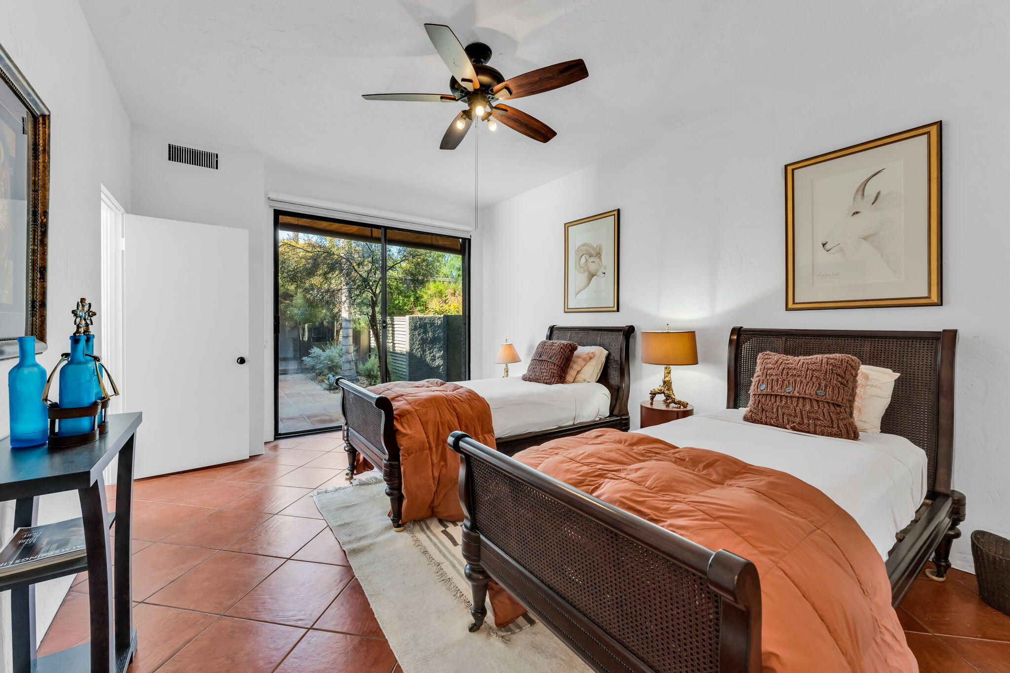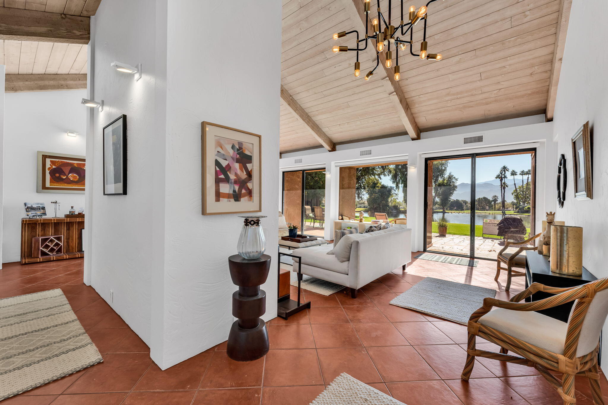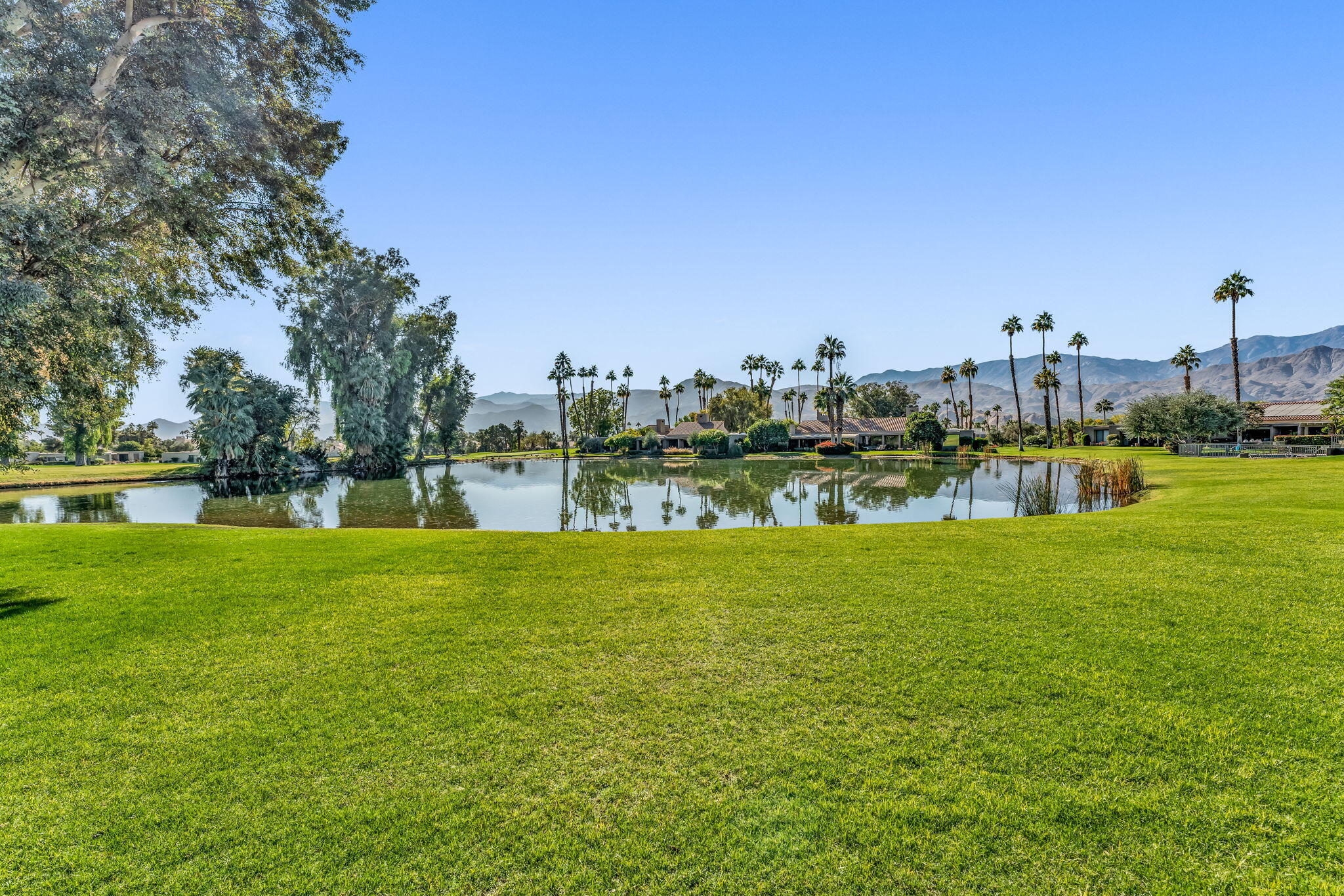 Prepare to be amazed by the breathtaking southwest-facing views that greet you the moment you step into this remarkable home, set in the picturesque Mission Hills Country Club. Enter through a custom gate into a private courtyard, and let your gaze be drawn through the entry window to the stunning rear yard with its awe-inspiring vistas of the Santa Rosa Mountains, golf course, and tranquil lake. The great room boasts a vaulted wood-beam ceiling and a cozy fireplace, perfect for relaxation. The stylish, modern kitchen features sleek white cabinetry, new quartz counters, a tile backsplash, new stainless-steel appliances, and a breakfast bar with a wine chiller and bar sink, seamlessly opening to the dining room. The dining room's expansive picture window offers a postcard-perfect view. Natural light floods the home through an abundance of doors and windows. The spacious primary suite takes full advantage of the incredible views and provides direct access to the rear patio and expansive open lakefront space. Both guest bedrooms are located on opposite corners of the home and have direct access to the front courtyard for enhanced privacy and independence. The oversized south-facing rear patio, finished with pavers and equipped with a BBQ, is one of the most picturesque settings in the entire country club. The perfect blend of trees, lush grass leading to the lake with a waterfall, the distant golf course, and panoramic mountain views create an idyllic backdrop to this home. Mission Hills offers three championship golf courses, 27 tennis courts, croquet courts, and fitness center. Come home to this one-of-a-kind wonder and experience desert living at its finest! Perfect seasonal or annual rental. Turnkey furnished!**$5,800 is the annual rental price. Seasonal months are $8,500-$9,500 depending on month and duration of lease*Interested in this Listing?