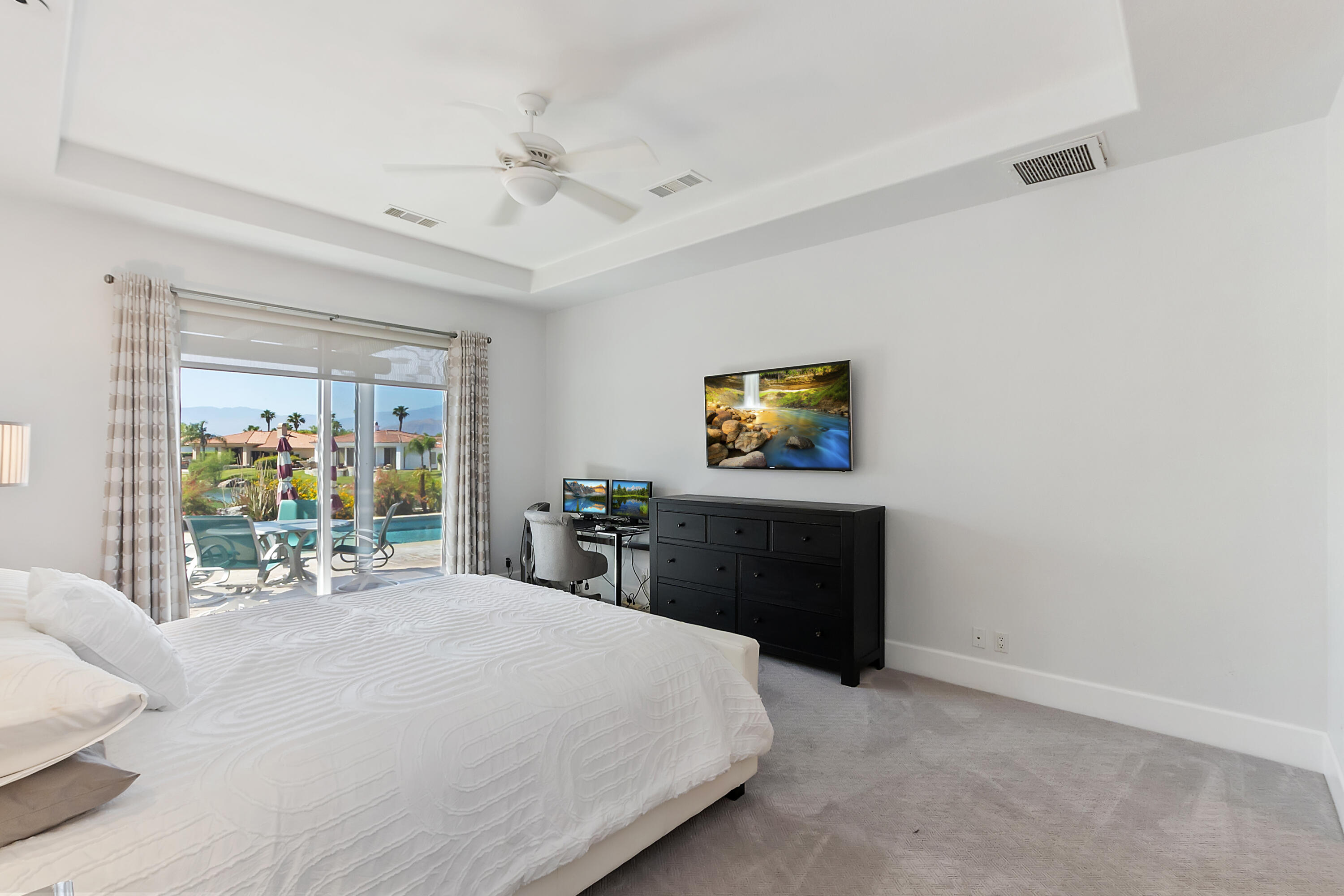 Available for the 2026 season. Stunning Serano plan, recently remodeled with stunning lake, fairway and mountain views. Located on the 8th green of the highly regarded Gary Player course. From the moment you enter through the glass paneled entry door into the circular foyer, you'll note the laminate wood flooring leading to the inviting great room. The views here are truly unbelievable. This home has been upgraded to include additional windows to take advantage of the views. A remodeled kitchen with new Viking appliances, new cabinets and quartz countertops. A spacious great room with built-ins and a commanding fireplace for cozy evenings. This floorplan features a great flow for entertaining, high ceilings, huge primary quarters with golf course views, a guest wing with 3 bedrooms (2 have their own bathroom). Backyard has a sparkling pool and spa where you can soak in the sun, enjoy the golf and spectacular views.Interested in this Listing?
