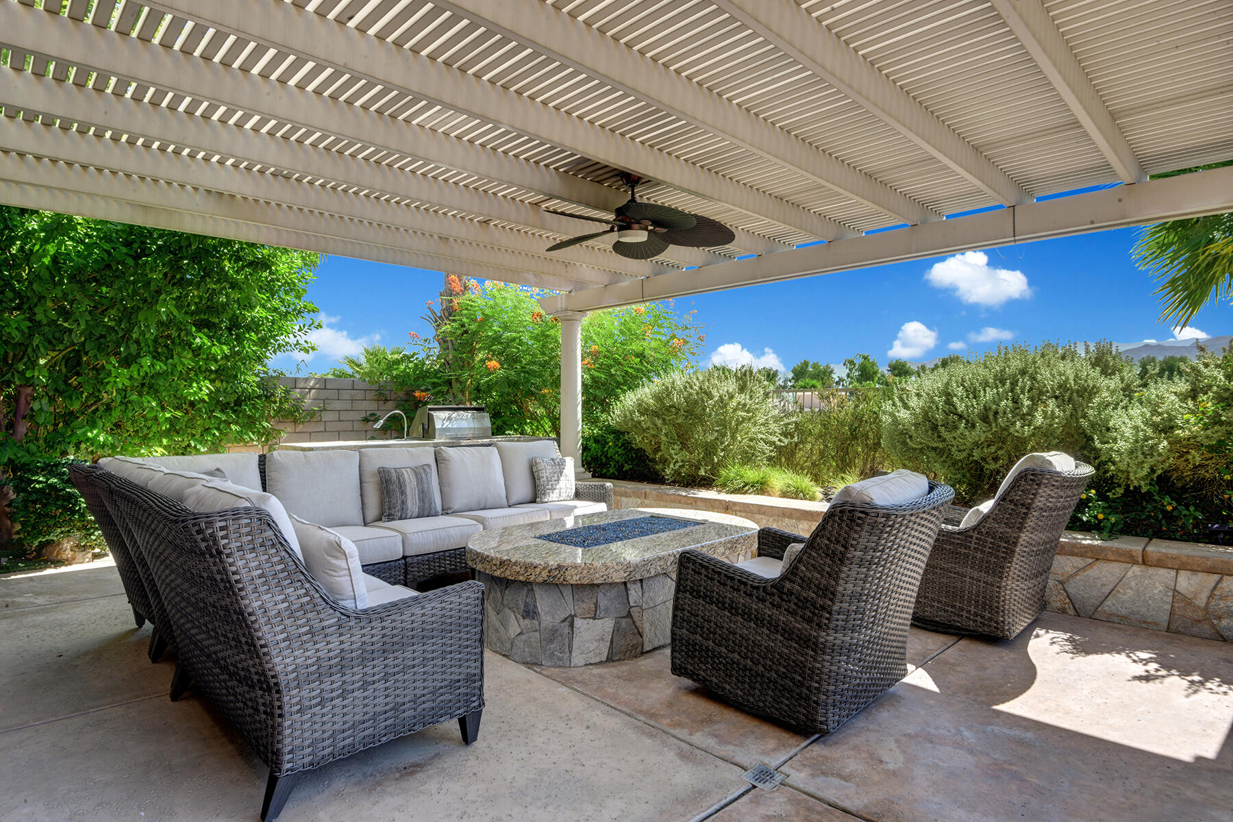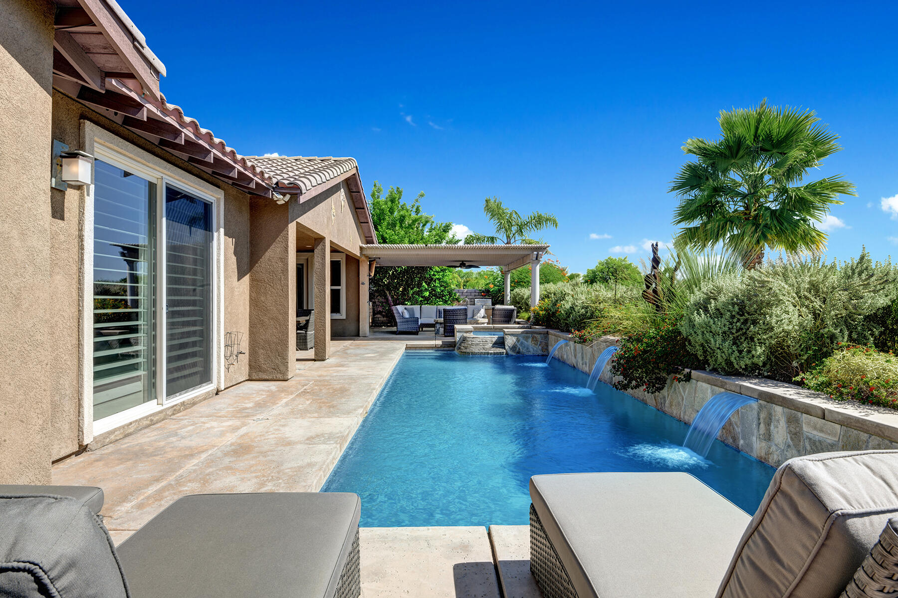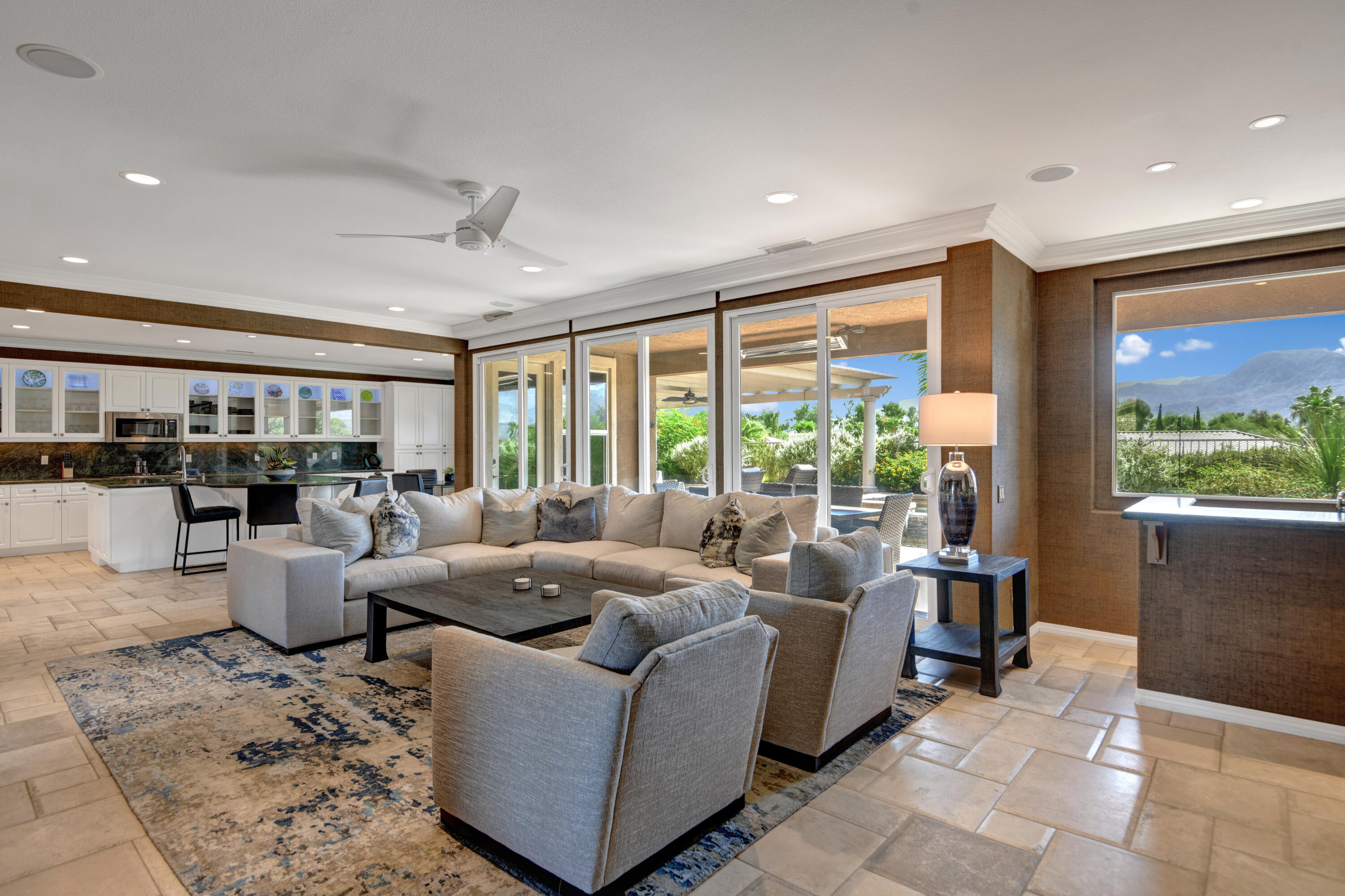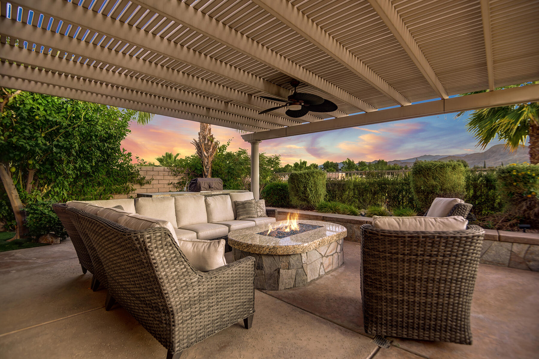 Get ready to be wowed! The owners of this home have spared no expense in creating a vacation paradise with richly-appointed designer furniture and stunning artwork. Amazing location only 15 minutes from Palm Springs and 15 minutes from Palm Desert! Upgraded, ultra-fast 1 gigabyte WIFI. Huge open concept kitchen, dining and living areas backed by incredible views through the floor to ceiling sliding glass doors. The kitchen is very well equipped and offers stainless steel appliances with gorgeous granite countertops and impressive custom lit glass front cabinets above. Adjacent to the kitchen is the spacious family room with designer furniture and a large flat screen television. For further indoor entertainment, the billiards room is a great place for the whole family to enjoy a competitive game of pool. Outside you'll find jaw-dropping views surrounding your private pool and spa with plush lounge chairs to soak up the sun. The trellised seating area has a built-in BBQ with comfortable and stylish seating surrounding a fire table for those chilly winter nights. The elegant primary suite Master bedroom offers extreme comfort with a king size bed with the latest Intellibed technology with adjustable base, gorgeous custom build-ins, a large walk-in closet, and flat screen television. There are two nicely appointed guest bedrooms and a wonderful private office that doubles as a 4th bedroom. All offer attached and nicely updated full bathrooms.Interested in this Listing?