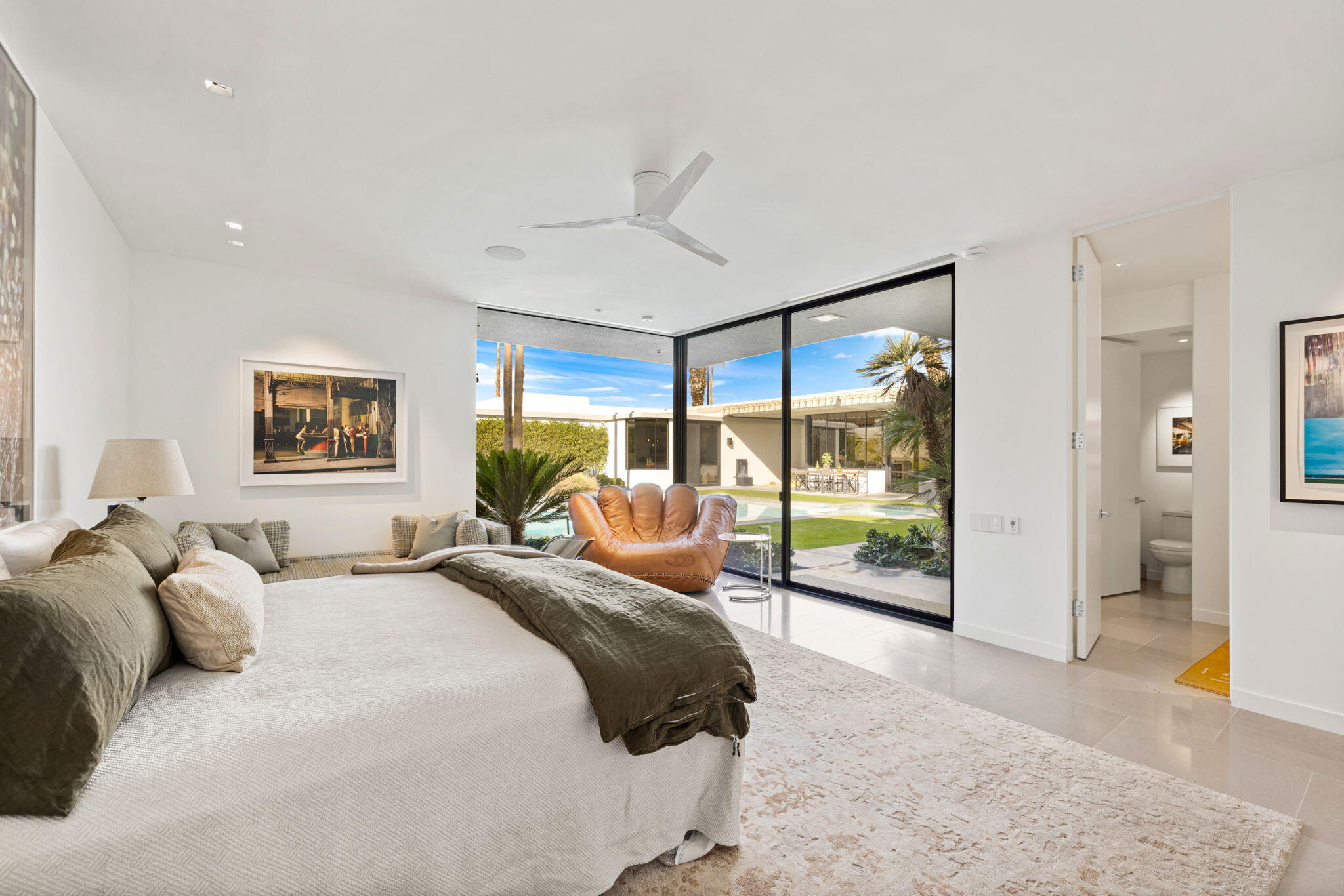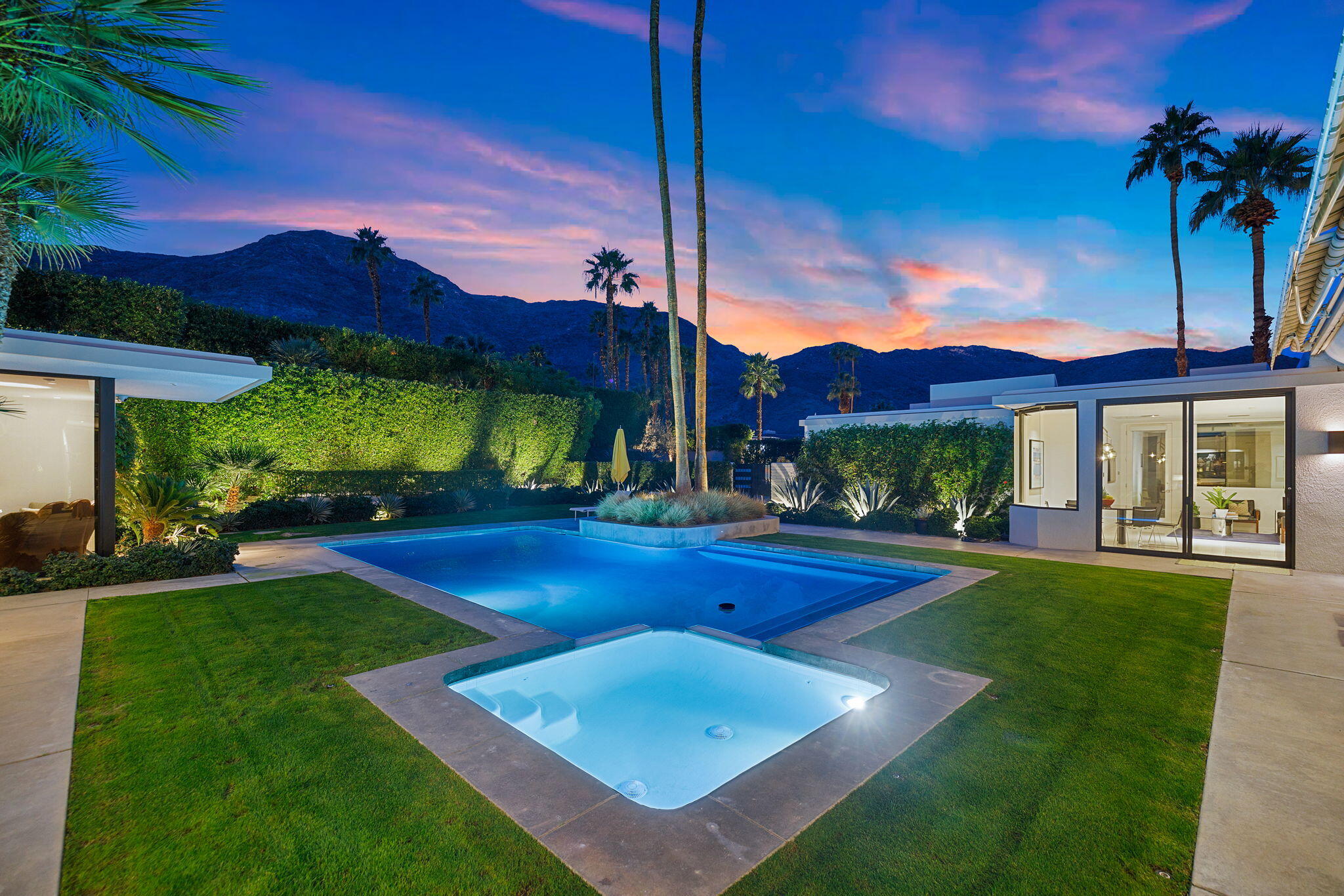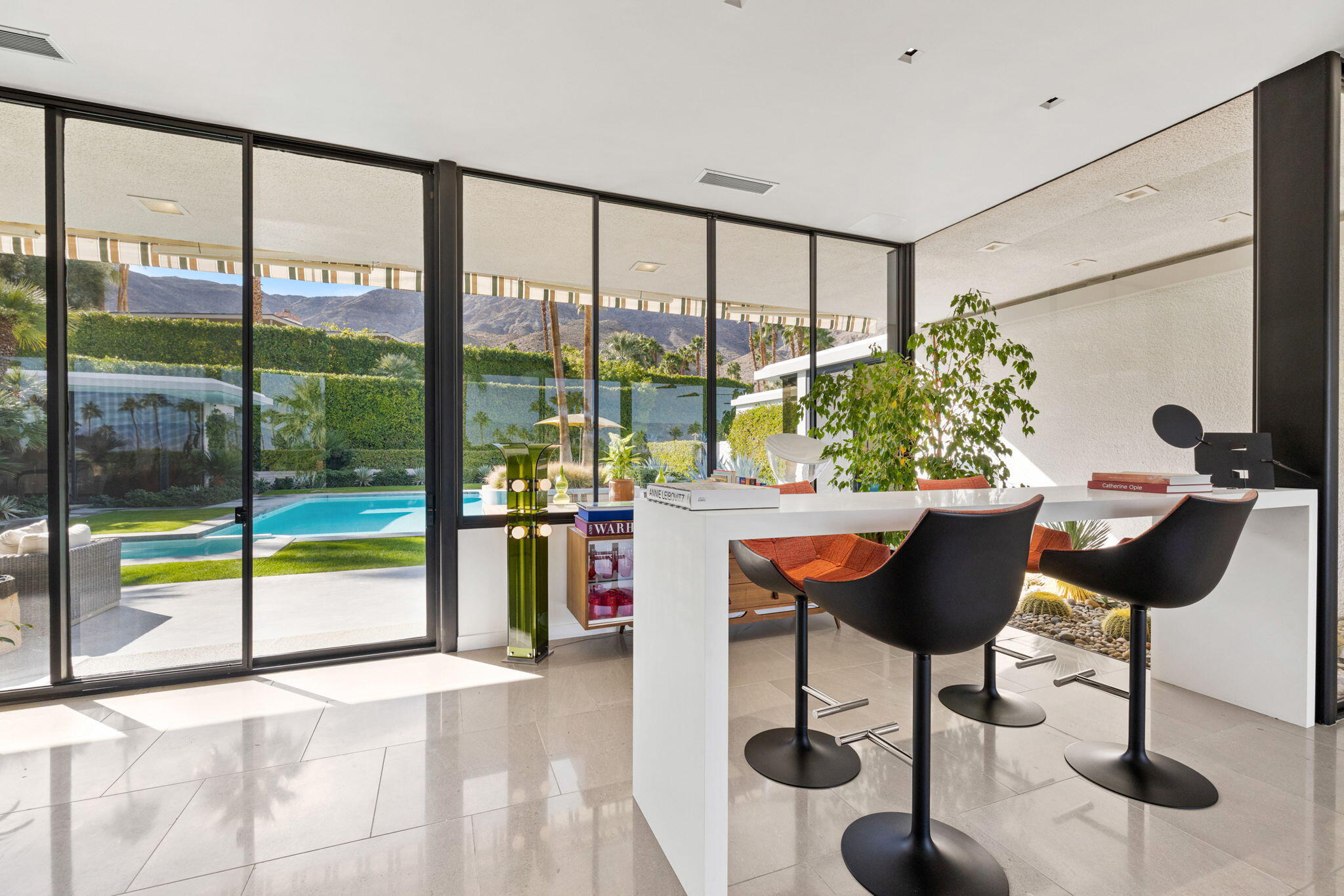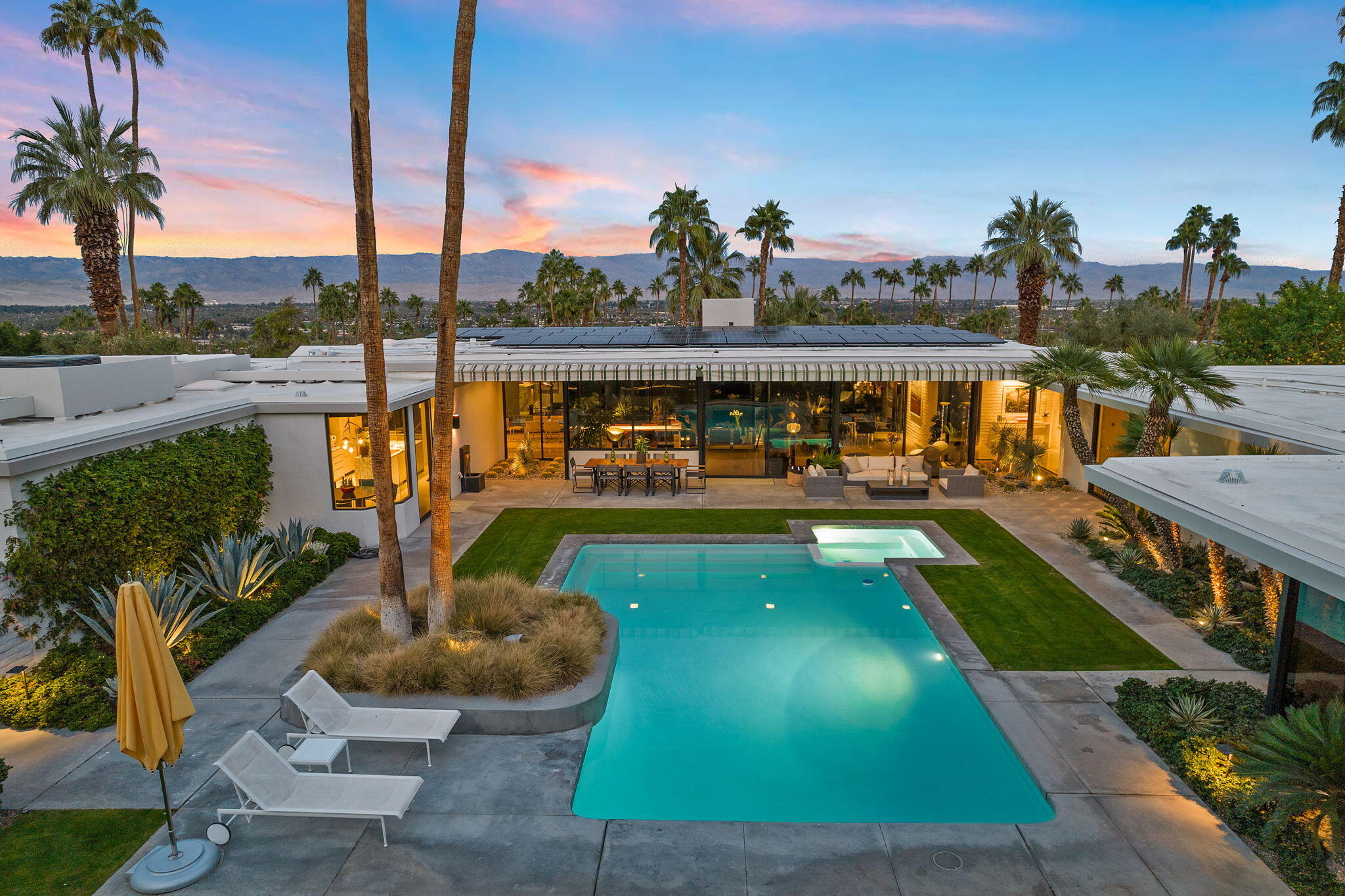 Exceptional 1970's modern estate located high above the desert floor in the exclusive gated community of Thunderbird Heights, offering 360-degree panoramic views. This sleek, extremely private luxury home boasts steel beam construction with slump stone white walls. The house was designed by Ira Johnson, AIA, and George Ritter, AIA, both understudies of William Cody. The house is a 70s interpretation using the latest architectural materials (big sliders/steel beam trusses) of homes Cody built in the 50s and 60s with white mud brick walls. In addition, it is essential to note that a significant architectural goal was perfecting the site lines for ALL bedrooms, which were designed to offer extraordinary views of the Santa Rosa mountains. Attention to detail in design and function provides a Zen environment and evokes peaceful living in perfect harmony with the desert lifestyle. Unwind in a great open room with glass walls, bringing the outdoors in and providing a panoramic vista of mountains, lush outdoor landscape, and the city lights below. 4-bedroom suites, separate office, 4.5 baths with approximately 4,845 square feet of living space, a three-car garage, and three automatic steel and glass gates for ultimate privacy. The home is offered designer furnished with exquisite custom European Mid Century modern furniture. In addition, the house has a museum-quality art collection that is highlighted by custom Element light fixtures connected to a Control 4/Lutron system.Interested in this Listing?