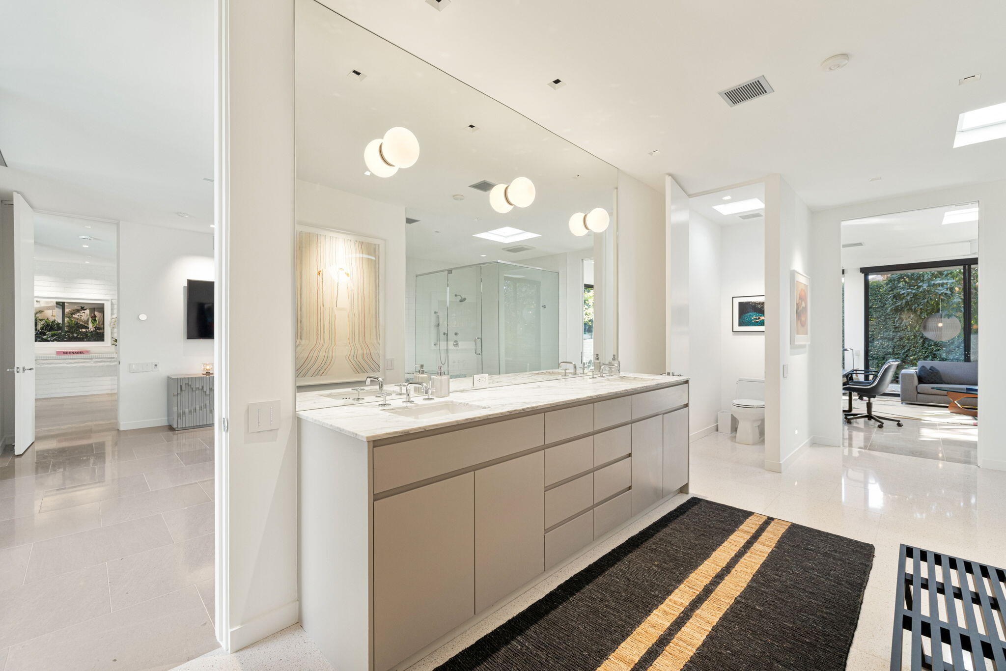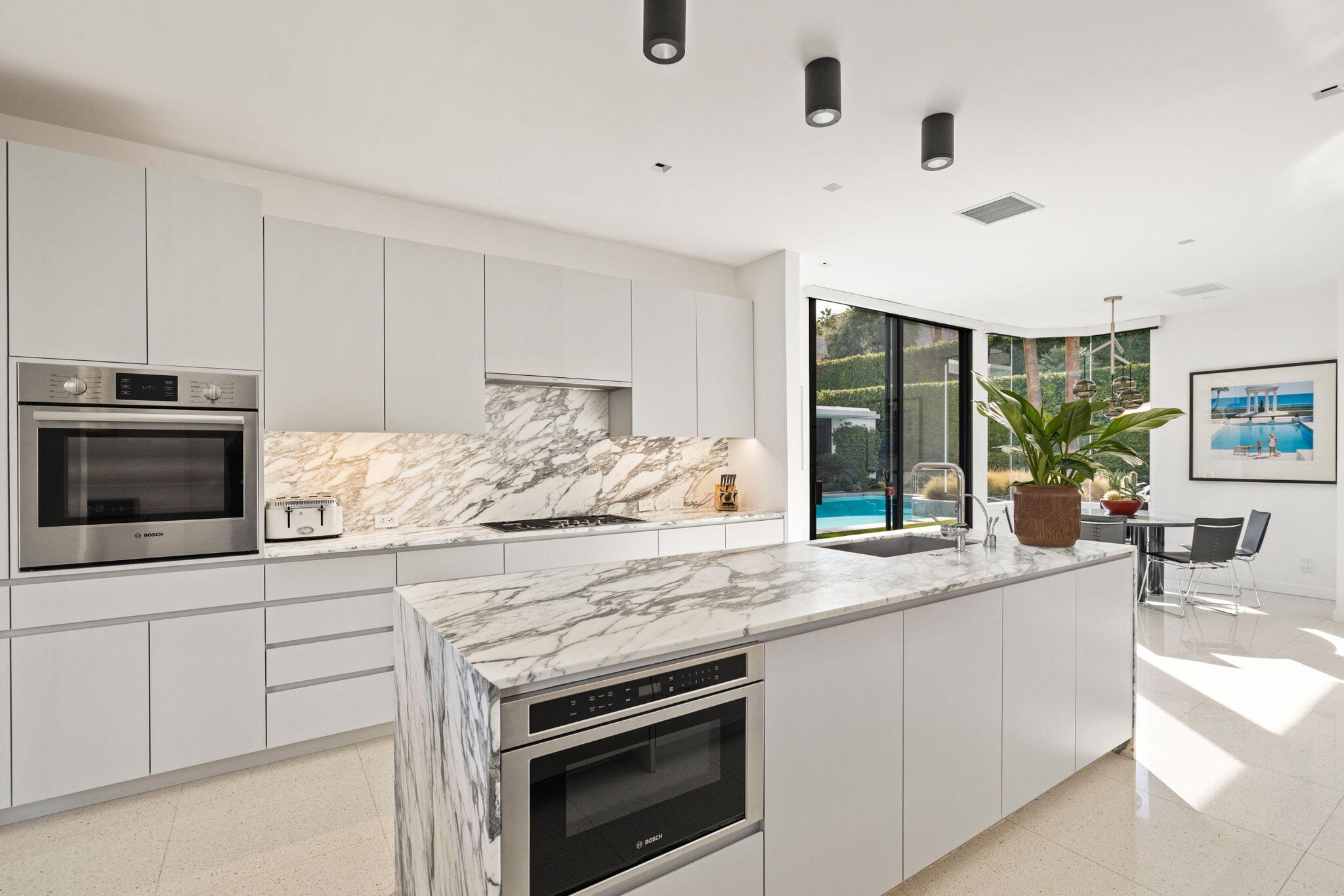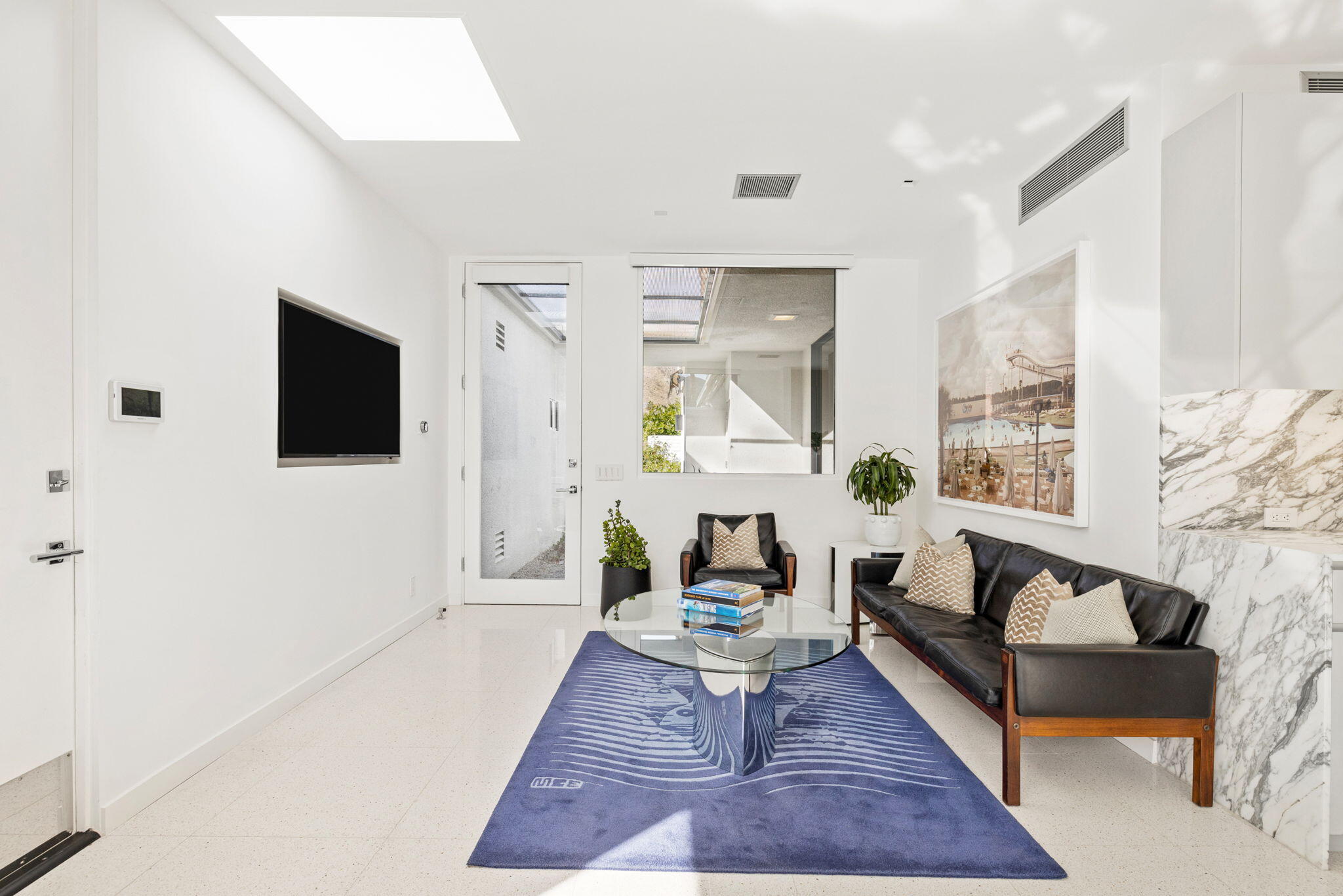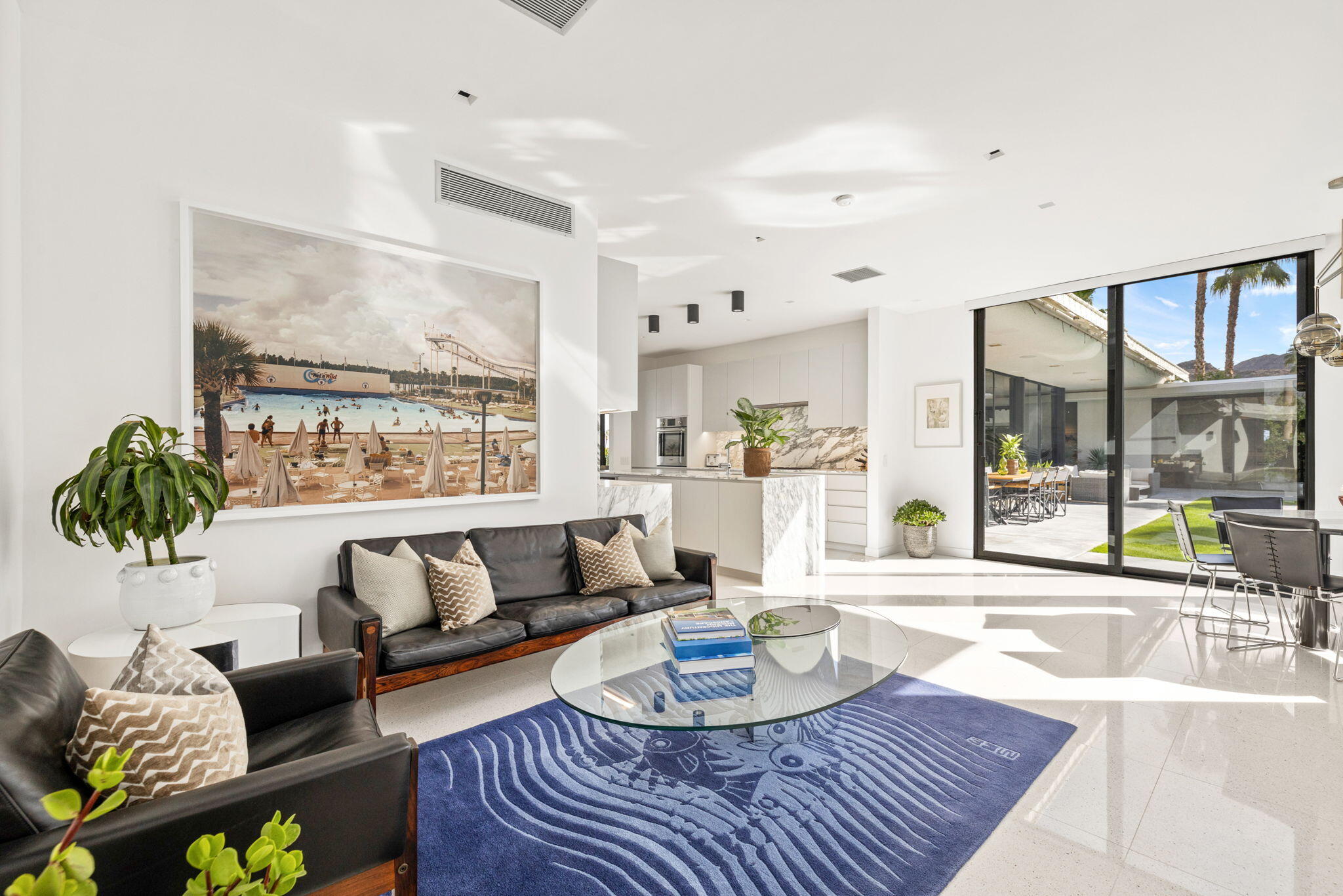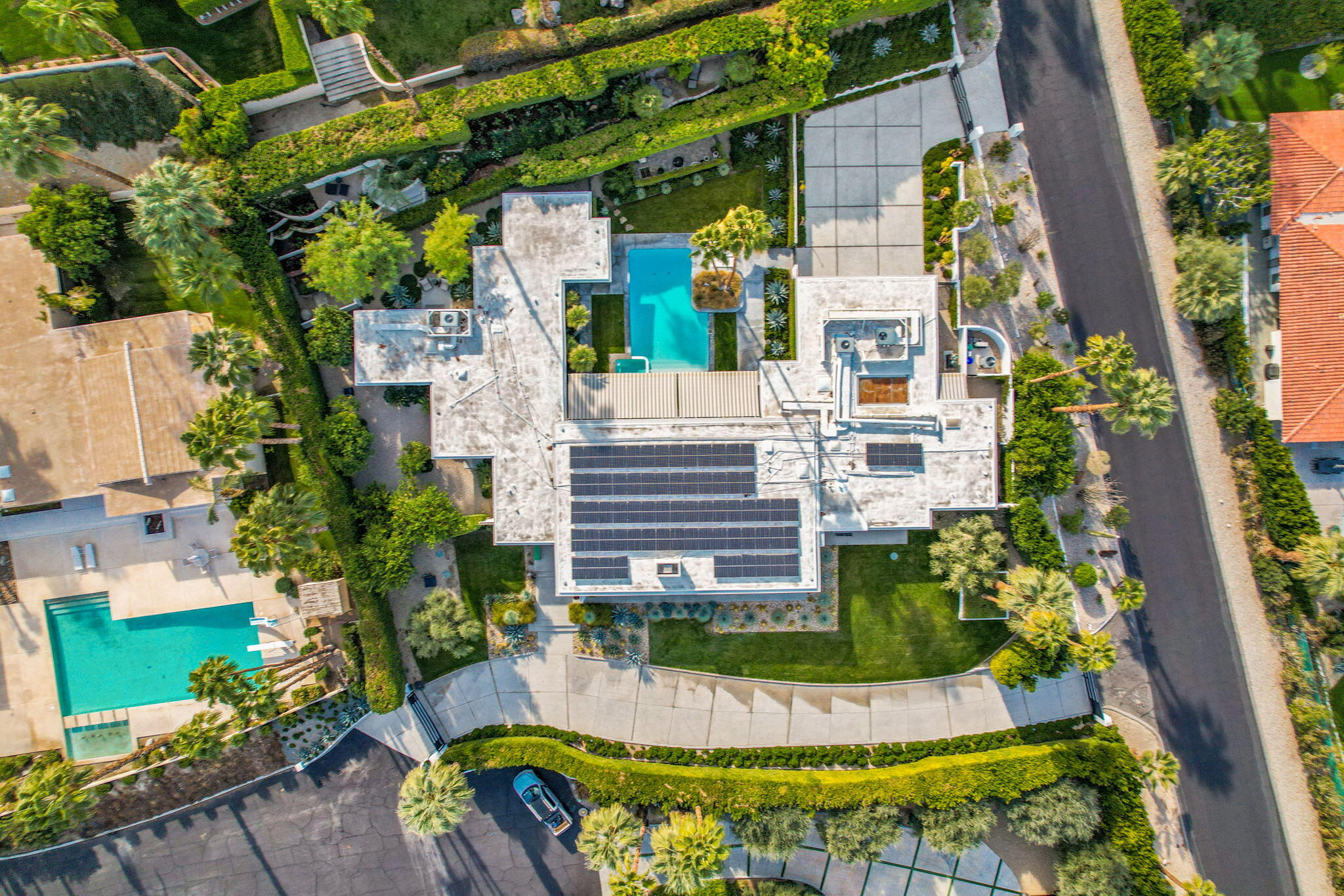 Exceptional 1970's modern estate located high above the desert floor in the exclusive gated community of Thunderbird Heights, offering 360-degree panoramic views. This sleek, extremely private luxury home boasts steel beam construction with slump stone white walls. The house was designed by Ira Johnson, AIA, and George Ritter, AIA, both understudies of William Cody. The house is a 70s interpretation using the latest architectural materials (big sliders/steel beam trusses) of homes Cody built in the 50s and 60s with white mud brick walls. In addition, it is essential to note that a significant architectural goal was perfecting the site lines for ALL bedrooms, which were designed to offer extraordinary views of the Santa Rosa mountains. Attention to detail in design and function provides a Zen environment and evokes peaceful living in perfect harmony with the desert lifestyle. Unwind in a great open room with glass walls, bringing the outdoors in and providing a panoramic vista of mountains, lush outdoor landscape, and the city lights below. 4-bedroom suites, separate office, 4.5 baths with approximately 4,845 square feet of living space, a three-car garage, and three automatic steel and glass gates for ultimate privacy. The home is offered designer furnished with exquisite custom European Mid Century modern furniture. In addition, the house has a museum-quality art collection that is highlighted by custom Element light fixtures connected to a Control 4/Lutron system.Interested in this Listing?