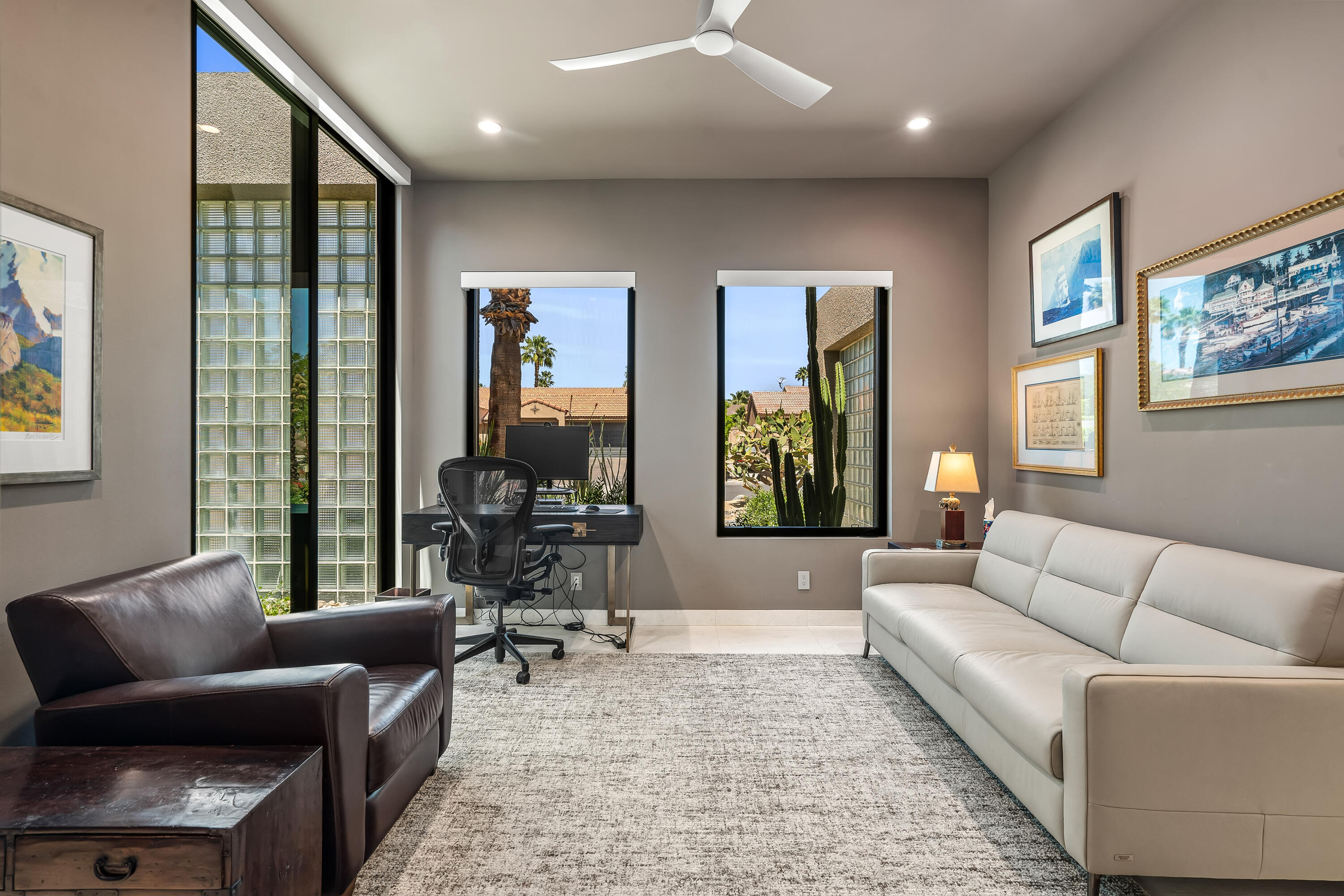 Your Rancho Mirage Oasis Awaits: 12-16 Month Luxury LeaseImagine settling into a completely reimagined desert retreat, where every detail exudes modern elegance and effortless living. This isn't just a rental; it's a lifestyle upgrade. Available for a long-term 12-16-month turnkey furnished lease, this stunning Rancho Mirage residence, situated on a desirable corner lot, has undergone a breathtaking, no-expense-spared remodel completed in 2023. Prepare to be captivated from the moment you arrive.Beautiful curb appeal and lush, new desert landscaping, dramatically illuminated both front and back, lead you through a gated courtyard and into a world of sophisticated design. Custom double doors welcome you to an expansive open-concept home, boasting nearly 2,400 sqft of exquisitely appointed living space.Step onto elegant large format Limestone flooring that flows seamlessly throughout. The inviting living area features a chic fireplace with integrated TV and custom built-ins, creating a perfect ambiance for relaxation and entertainment.For the culinary enthusiast, the open-concept gourmet kitchen is a dream come true. Revel in the beauty of granite slab and Quartz countertops and backsplash, the convenience of wall oven, and the abundance of stylish cabinetry.This exceptional home offers unparalleled comfort with 3 spacious bedrooms and 4.25 luxurious baths. The primary retreat is a true sanctuary, complete with a spa-like en-suite bath featuring a deep soaker tub, separate shower, and generous closet space. Guests will feel pampered in the dedicated guest suite, while the versatile office suite can easily transform into an additional guest bedroom to suit your needs.Step outside to your own private paradise. The elevated backyard boasts panoramic mountain views that will take your breath away. Enjoy sunny afternoons by the sparkling saltwater lap pool and spa, entertain on the spacious deck, or gather around the built-in BBQ island. Mature fruit trees add a touch of nInterested in this Listing?