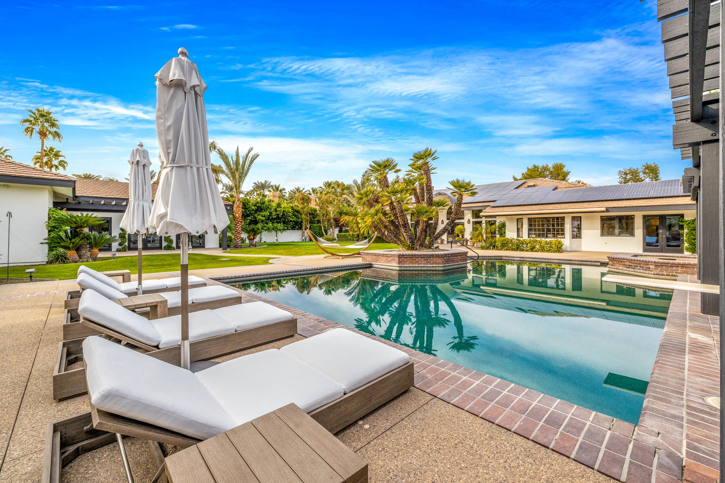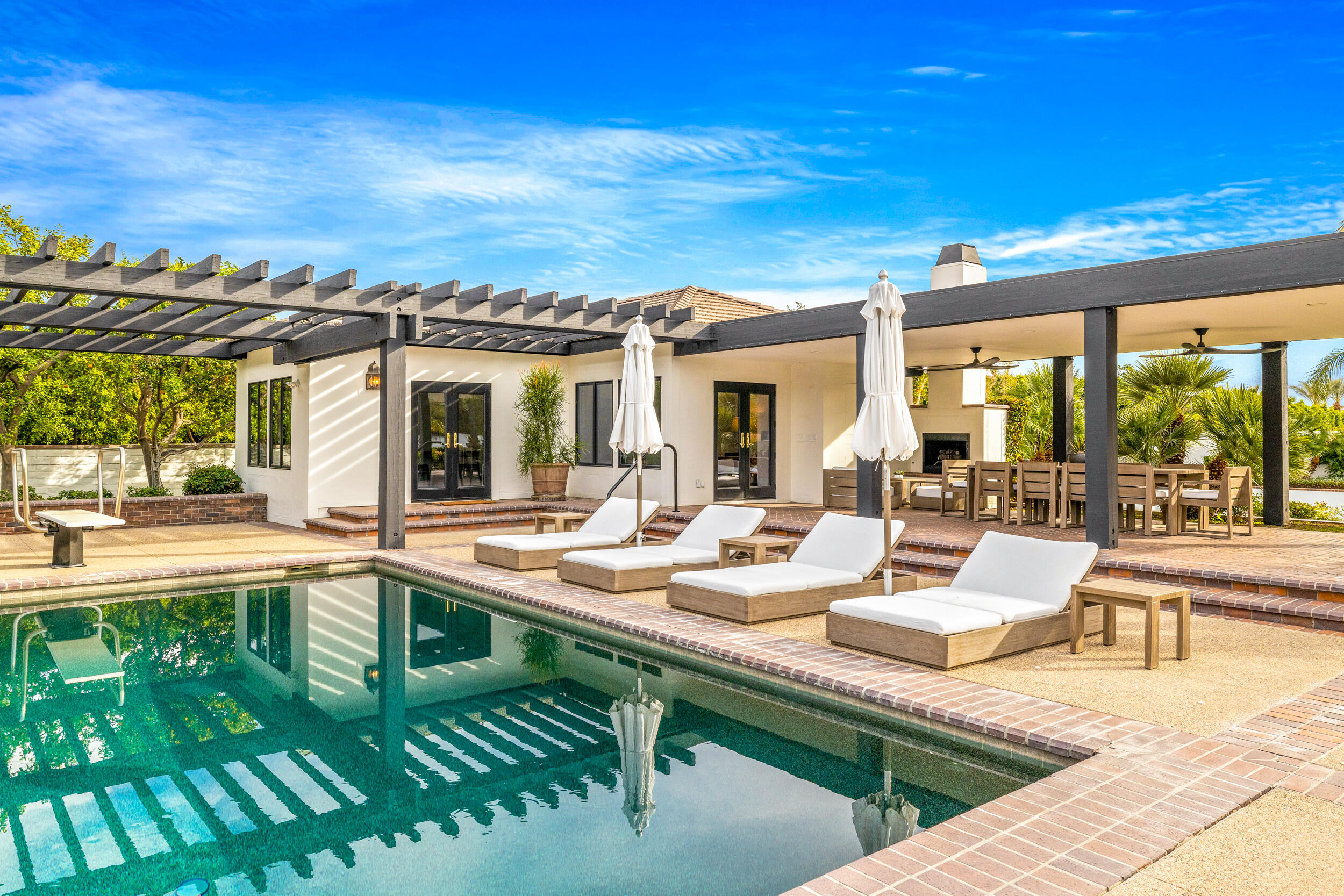 The Modern Ranch Estate awaits your next desert getaway. Walkthrough the front door and take in the bright natural light, show-stopping decor, tons of natural wood, and organic surfaces. This newly remodeled masterpiece features a spacious formal living area that includes just one of many fire features, a state-of-the-art kitchen, four highly appointed bedrooms in the main house, and one detached casita with a full kitchen. Totaling aprox. 8,000 sqft and 6 ensuite bedrooms. The expansive outdoor living area features tremendous grounds that blend together with an outdoor fireplace and dining area that is situated next to a relaxing pool & spa. All the amenities you need and more - pool table, billiard room with bar, state-of-the-art golf simulator, full-size gym, outdoor putting green, tennis court, full-size basketball court, and outdoor shower/pool room. The Modern Ranch Estate was designed by local designer Hagit Taylor and featured in an article by Southern California based interior-designer Becki Owens. This meticulously curated home was also showcased on Ashley Stark's Instagram, Creative Director at STARK.Interested in this Listing?