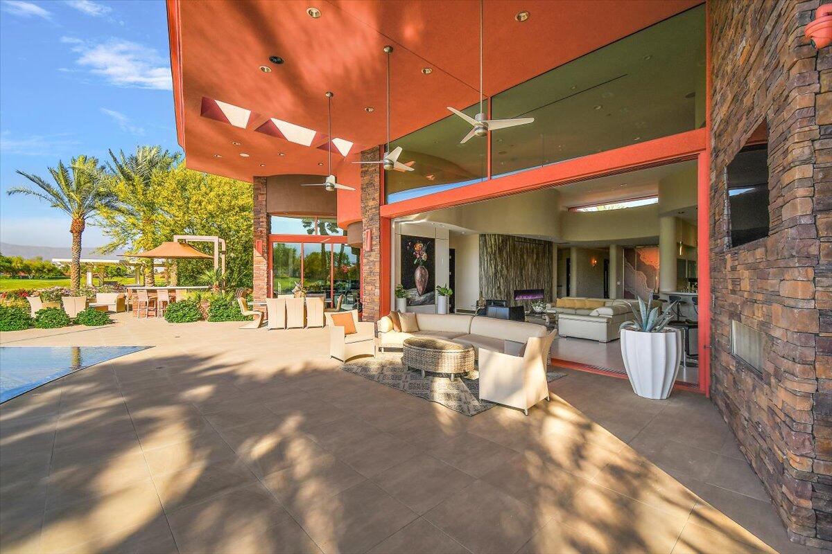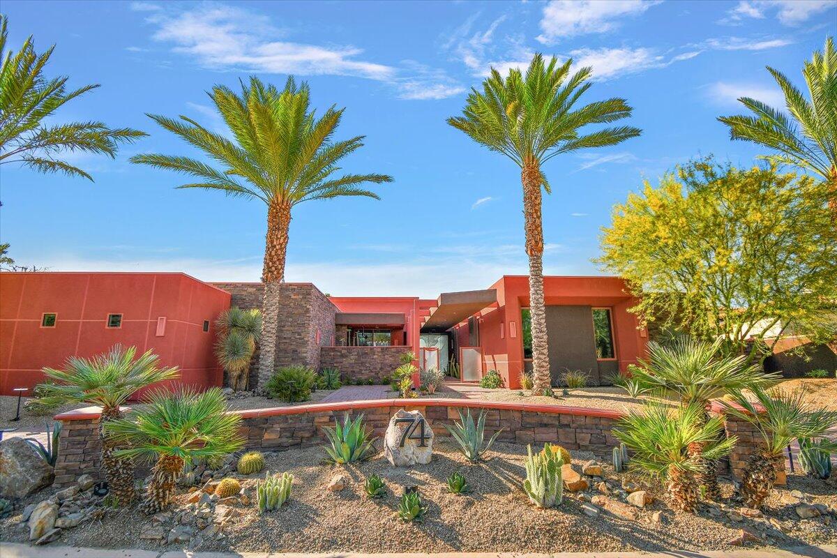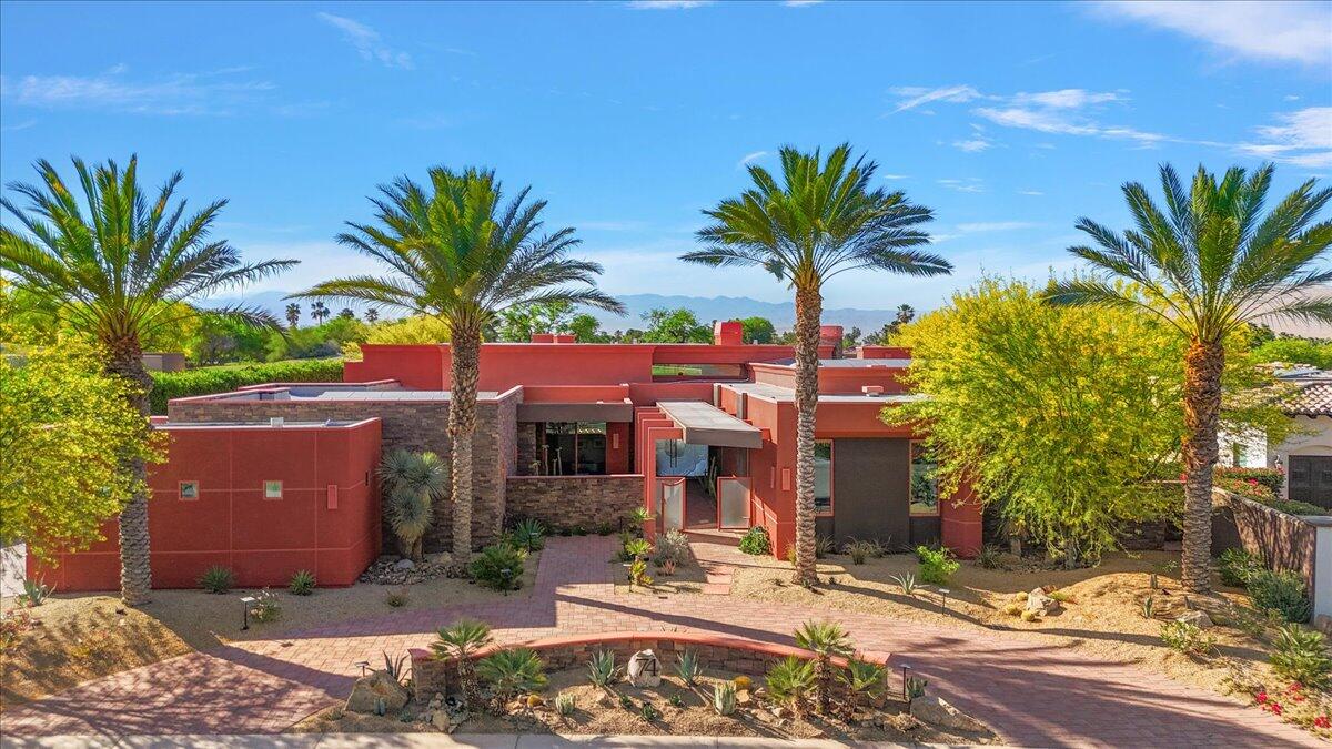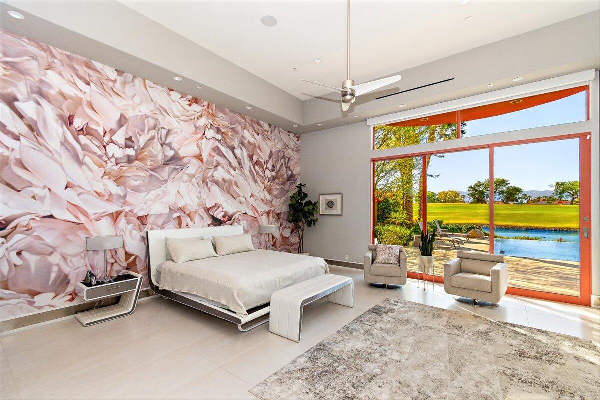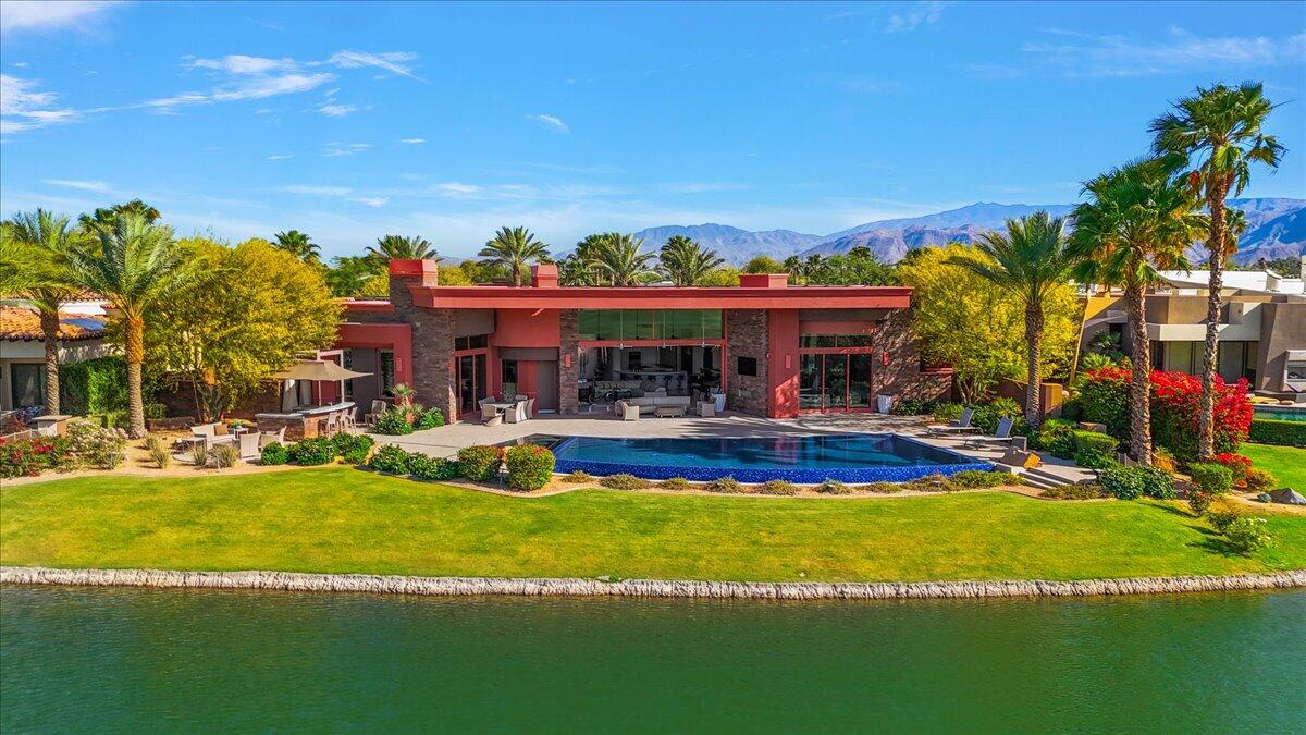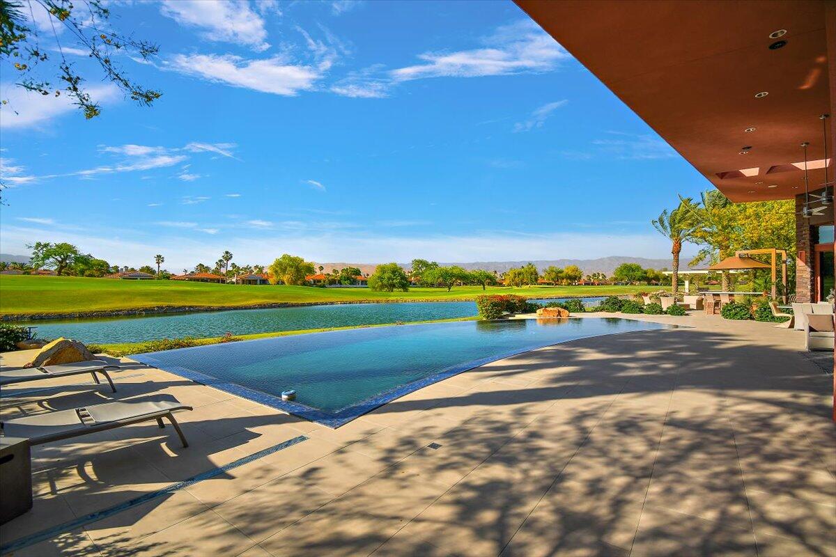 Bring your toothbrush to move in! Nestled within a Prestigeous Mission Hills Country Club, this architecturally significant estate in the exclusive double-gated enclave of Westgate offers security and tranquility. This estate provides an unparalleled living experience within a renowned community, famous for its views, luxurious amenities, and events like The Galleri Classic Golf Tournament, The Presidents Cup Croquet Tournament, the Desert Classic, The National Hardcourt Tennis Tournaments, and the PPA Pickleball Event.Built in 2017, this estate exemplifies modern architectural excellence with clean lines and durable steel construction. Spanning over a half-acre, it features 35 feet of sliding Fleetwood pocket doors that open to an infinity-edge pool, a lake, and the Pete Dye Golf Course. Two outdoor kitchens enhance the indoor-outdoor living experience with the San Jacinto Mountains as a backdrop.Inside, the estate offers four large bedrooms, five and a half baths, a media/viewing room, and a game lounge with a full bar. The great room centers around a leathered marble fireplace. The European-inspired kitchen boasts a Sub-Zero refrigerator, Wolf double wall ovens, a professional 48' Wolf gas cooktop, and translucent quartz countertops. The primary suite is a luxurious sanctuary with a fireplace, private patio, spa-like bath, and custom closet.Modern amenities include fully owned solar panels and an active security system. Offered with designer furnishings.Interested in this Listing?