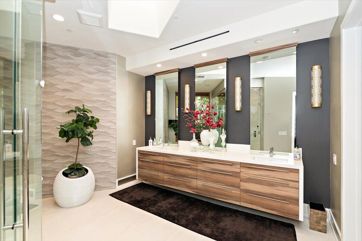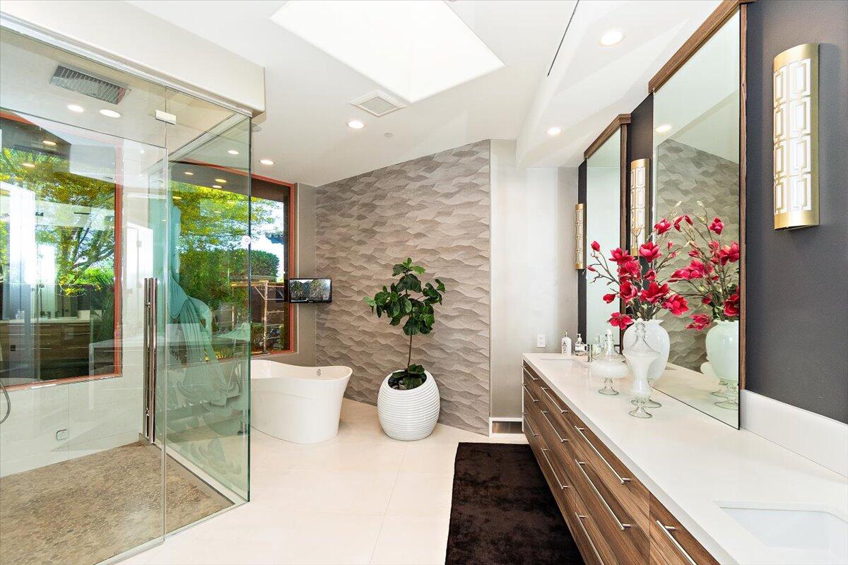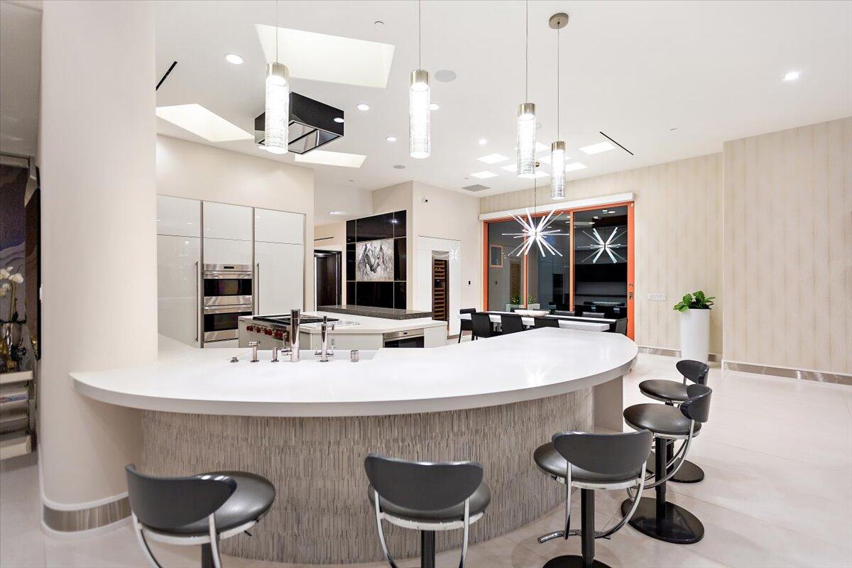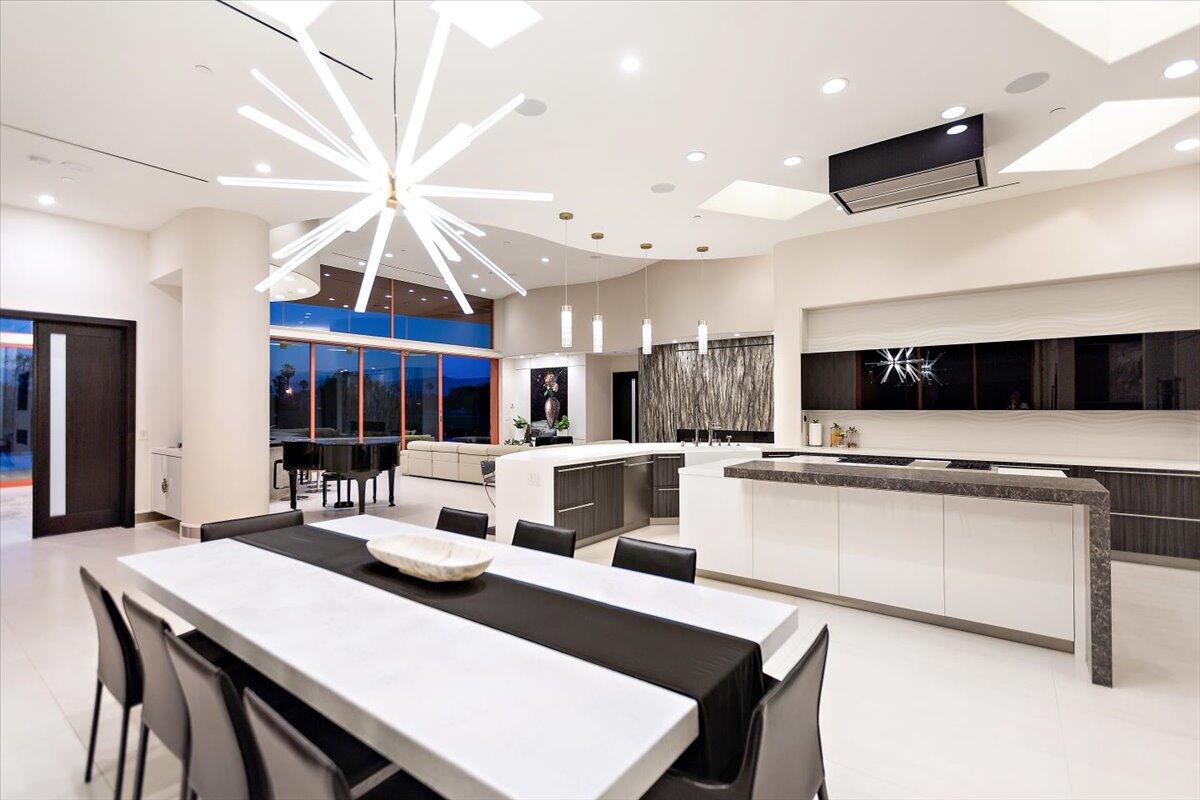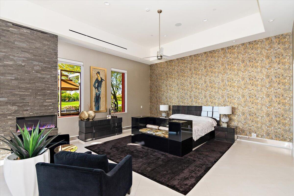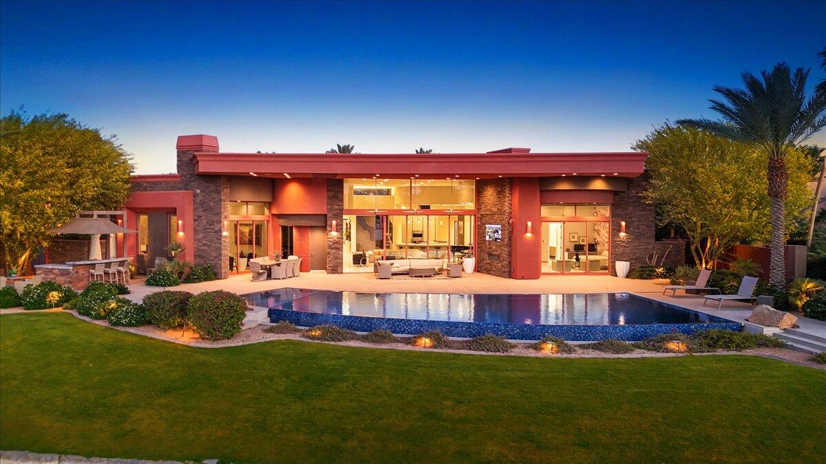 Bring your toothbrush to move in! Nestled within a Prestigeous Mission Hills Country Club, this architecturally significant estate in the exclusive double-gated enclave of Westgate offers security and tranquility. This estate provides an unparalleled living experience within a renowned community, famous for its views, luxurious amenities, and events like The Galleri Classic Golf Tournament, The Presidents Cup Croquet Tournament, the Desert Classic, The National Hardcourt Tennis Tournaments, and the PPA Pickleball Event.Built in 2017, this estate exemplifies modern architectural excellence with clean lines and durable steel construction. Spanning over a half-acre, it features 35 feet of sliding Fleetwood pocket doors that open to an infinity-edge pool, a lake, and the Pete Dye Golf Course. Two outdoor kitchens enhance the indoor-outdoor living experience with the San Jacinto Mountains as a backdrop.Inside, the estate offers four large bedrooms, five and a half baths, a media/viewing room, and a game lounge with a full bar. The great room centers around a leathered marble fireplace. The European-inspired kitchen boasts a Sub-Zero refrigerator, Wolf double wall ovens, a professional 48' Wolf gas cooktop, and translucent quartz countertops. The primary suite is a luxurious sanctuary with a fireplace, private patio, spa-like bath, and custom closet.Modern amenities include fully owned solar panels and an active security system. Offered with designer furnishings.Interested in this Listing?
