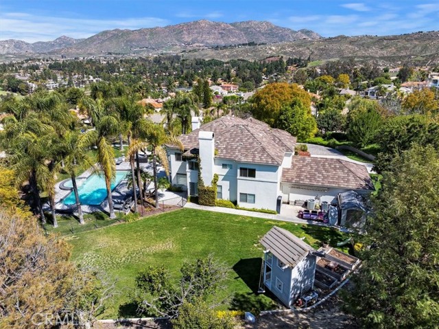 Happiness lives here! If you ve been searching for the one home that checks absolutely all of the boxes, your quest is over. Let s start with the beautifully paved and tree lined driveway at the end of a quiet cul-de-sac in one of the most coveted neighborhoods in Riverside. An elegant faade greets you at the top of the drive and beckons you inside. The turret style entry is both grand and welcoming with its cathedral ceiling and custom travertine flooring bathed in natural light from above. From there you ll be drawn into the formal living and dining rooms, and your first impressions of the idyllic grounds and sweeping views of mountains, valley and twinkling city lights, which can be seen from many different vantage points of this wonderful home. Moving into the expansive family room that opens into the less formal dining area and kitchen that fulfils every chef s dream, you will instantly picture yourself sharing many special occasions with family and friends. There is a generous bedroom downstairs with its own bath, an office that may alternately be used as a crafting room or bedroom, extra storage in the powder room, and a spacious laundry room. Upstairs in the master suite, enjoy the best views from your private balcony or while relaxing in the jetted tub next to the passthrough fireplace. Three more ample bedrooms with two full baths are just on the other side of a roomy loft; the perfect place for more intimate gatherings, theater/gaming or quiet reflection. Even though you re already feeling right at home by now, one step outside and you will never want to leave. An acre of mostly level land has been transformed into a very private resort-like playground where there is fun to be had no matter the age. The saltwater pool with Baja shelf and waterfall spa is eye catching and inviting with so many delightful areas to relax, including a firepit and BBQ island. Don t miss the other side of this incredible yard with raised garden beds, storage shed, 2-story playhouse and zipline! All of this and more are waiting for you to come and make it your very own happy place.Interested in this Listing?