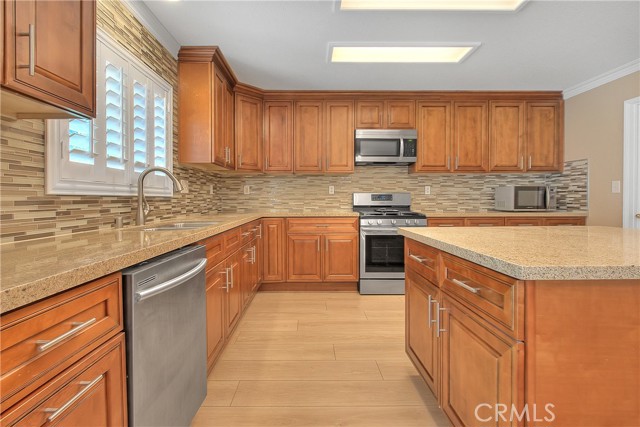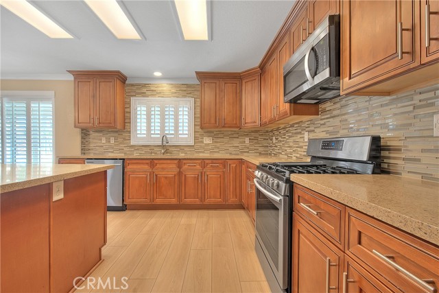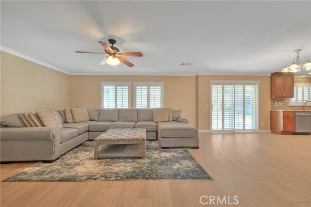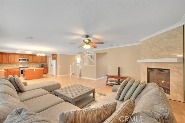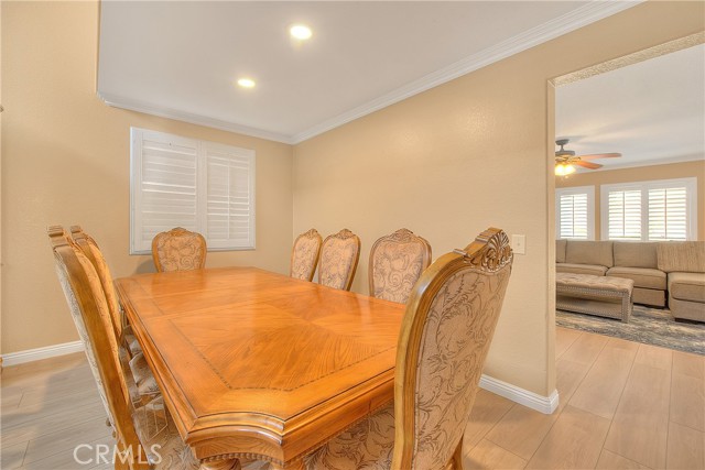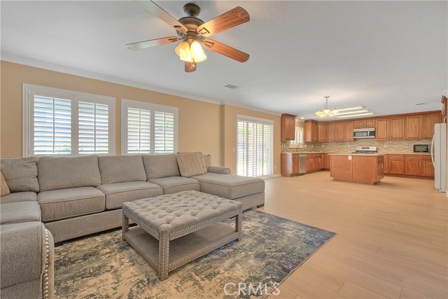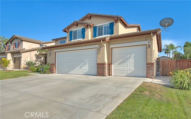 Discover luxury living in this stunning 5-bedroom, 3-bathroom home in the exclusive Victoria Grove gated community. From the generous driveway leading to the spacious 3-car garage, this meticulously upgraded residence commands attention. The office room/den downstairs can be a 5th bedroom. The downstairs bathroom is adjacent to the room. The welcoming front porch and double-door entry create an impressive arrival. Step through the gracious foyer into a sophisticated formal living room with soaring vaulted ceilings and crown molding throughout the home. Beautiful new wood flooring flows seamlessly from room to room, while plantation wood shutters frame every window. The gourmet kitchen showcases rich maple cabinetry with granite countertops and decorative backsplash, anchored by a stunning granite island perfect for meal preparation and casual dining. A spacious walk-in pantry provides ample storage, while the adjacent family room with cozy fireplace creates the perfect space for daily living and entertaining. The formal dining area flows effortlessly from the kitchen, ideal for memorable dinner parties. Recently upgraded bathrooms and dual-pane windows enhance comfort and energy efficiency throughout. The luxurious primary suite features a spa-inspired bathroom with dual vanities, a relaxing tub, and a separate shower. Two generous mirrored walk-in closets provide abundant storage. The upstairs laundry room is adjacent to a versatile open loft, offering endless possibilities for a home office, media room, or additional living space. The nicely-sized backyard transforms into your private oasis, perfect for gatherings. The established garden features green peas, zucchini, bell peppers, green chilies, and beautiful roses. Victoria Grove residents enjoy exclusive access to the pool and spa, children's playground, sports field, baseball diamond, and basketball court. The Blue Ribbon award-winning Lake Matthews Elementary School is conveniently located on-site. This turnkey property masterfully combines luxury, comfort, and entertainment. Schedule your private showing today and experience why this distinguished residence will capture your heart.Interested in this Listing?