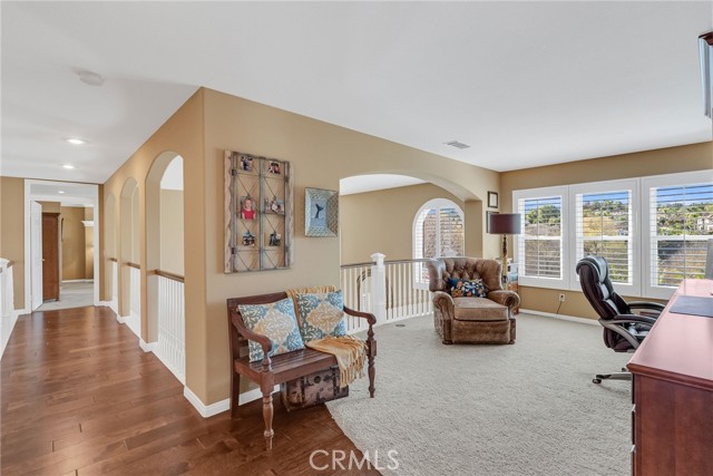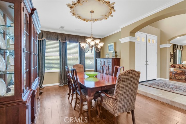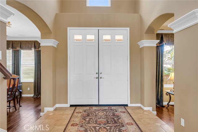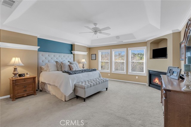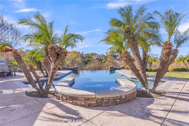 CRYSTAL RIDGE ESTATES-Welcome to 14143 Ashton Lane, a distinguished residence nestled in the serene landscapes of Riverside, CA. This popular plan 3 model offers a harmonious blend of luxury and comfort, spanning an impressive 3,700 square feet. Upon entering, you are greeted by the warmth of walnut wood flooring that flows seamlessly throughout the formal living and dining rooms, setting the stage for refined gatherings. The heart of the home is the expansive family room, adorned with a cozy fireplace, which effortlessly connects to a game room and bar area, perfect for entertaining. The gourmet kitchen, replete with modern amenities, serves as a culinary haven for the discerning chef. Retreat to the master suite, where a private fireplace adds a touch of romance. The updated master bathroom features a large shower and custom closet organizers, providing a sanctuary of relaxation. Three additional bedrooms offer ample space for family and guests, while a loft office space upstairs caters to your professional needs.Step outside to an entertainer's dream backyard, where a vanishing edge pool offers breathtaking mountain views, creating a tranquil oasis. The expansive lot of over 30,000 square feet ensures privacy and endless possibilities for outdoor enjoyment. 4 car garage, wtih epoxy flooring and ample storage space. This home is a testament to sophisticated living, with built-ins throughout that enhance both form and function. Discover the epitome of elegance at 14143 Ashton Lane.Interested in this Listing?