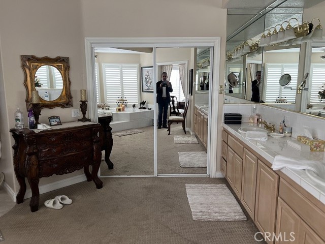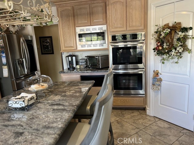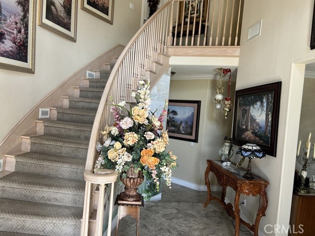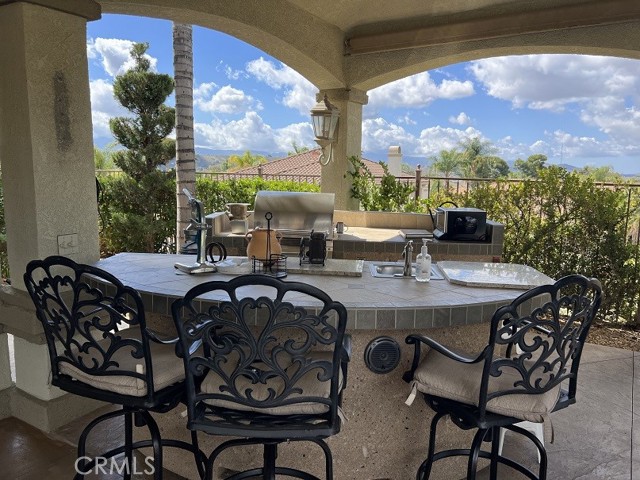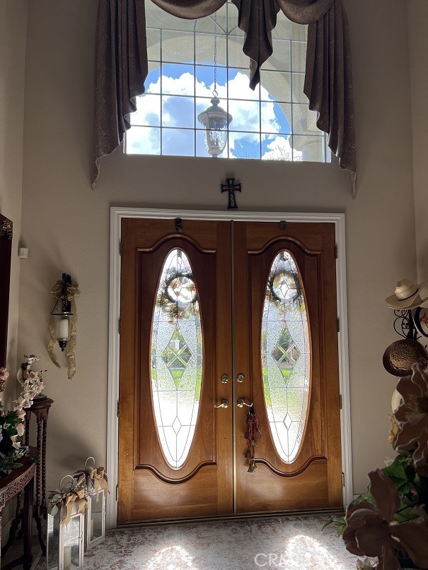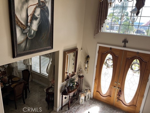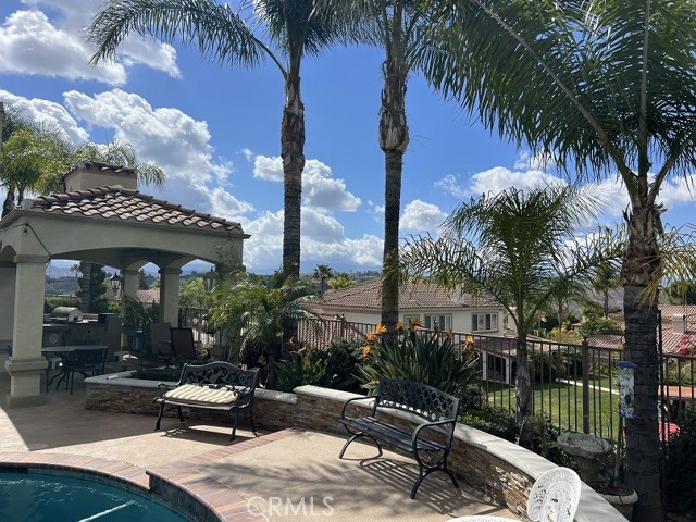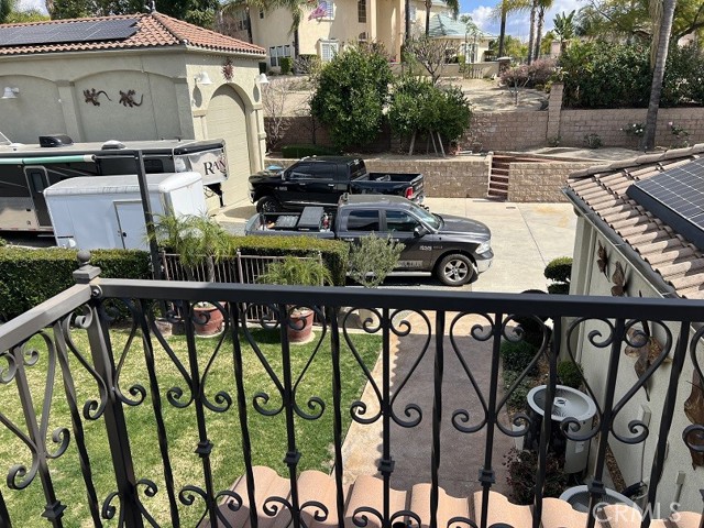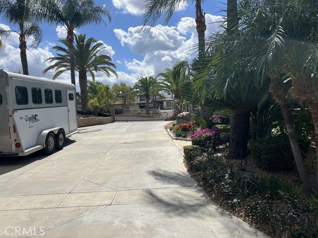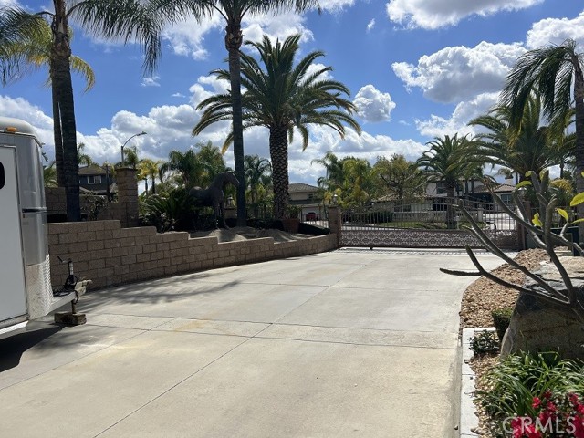 Start living your dream in this paradise that embraces comfort, luxury, tranquility, and elegance. Ideally planned on a quiet Cul-De-Sac with breathtaking views of summer sunsets, and mountain views. Property entrance with a custom automated iron gate with secure digital and remote access. Extra-long driveway for multiple RVs and a Grand RV garage large enough for a 42-footer RV. Landscaped with meticulous care and drought resistant plants in the front, and grass in the back for children to play. Mature trees and fruit trees throughout. Elegant entrance with exquisite double solid wood doors and ceramic tile floor foyer. Spiral elegant wood stairway casing professionally crafted in the front and a 2nd stairway access in the back for casual access or service access. Inviting formal living room with cathedral ceilings and luxury chandelier lighting. Mediterranean style formal dining room, Classic grey granite counter tops over oak kitchen cabinets. Kitchen equipped with double stainless-steel ovens, microwave oven, dishwasher, food warmer, stainless steel stove, and a separate ice maker. Plantation shutters throughout the whole house and some rooms with custom window decorations. Chandeliers and ceiling fans. Burbon carpet and professionally installed ceramic tile. 6-inch baseboards and crown molding throughout the home. Purchased 47 solar panel system that generates enough electricity to power the entire estate at an estimated savings of 85%. Intercom system, dual ac units with their own thermostats, central vacuum system, and alarm system. 3 of the 5 bedrooms have their own private bathrooms. The inviting outdoor living comes with an extra-large custom pool with remote controls that can be operated from inside the house, beach entrance, Spa, decorated with a waterfall and a kiddie pool. The patio, barbecue, and fire pit were designed to entertain large groups for summer and cold nights. The extra-large RV garage was designed with great architecture for large motorhomes with large amperage for sustainable recharges. And do not forget the horse stalls for the modern cowboys that love comfort and country living combine in the same paradise. Large office room with separate access that can be used for work or play. Enjoy the NO HOA and no Special assessment restrictions. All of this and more in the prestigious area of Wood Crest.