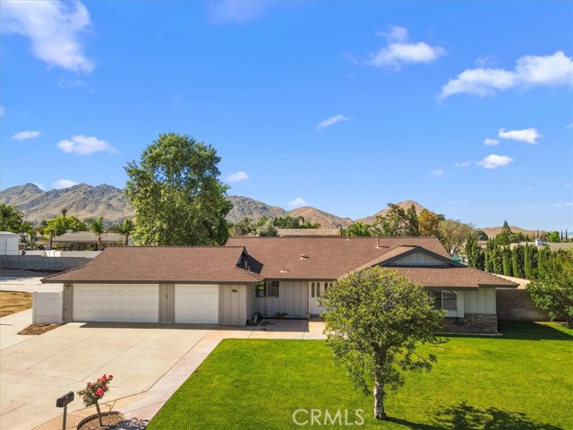 Breaking news! Just listed... This charming four bedroom two baths that sits on a 19,166 square feet lot perfect place for family fun and outdoor relaxation! Overlooking mountains on a tree-lined cul-de-sac, lovely curb appeal with three car garage. Upon entering foyer 168 Radford Circle, property features upgraded wood laminate flooring, double glass front doors. As you step into the cozy family room featuring a veneered river rock stone wood-burning fireplace, cathedral ceiling, natural lighting, carpeting, you feel the sense of warmth, comfort, and inviting. But that's NOT all, property features a gourmet kitchen, granite countertops, custom - backsplash, black stainless-steel appliances, nook area, and ample cabinetry/counter space for the holidays. This one-story home offers wood laminate flooring throughout the dining room, entry, primary room, bedrooms and hallway. The primary bedroom is spacious in size, large closet, slider door that leads to your outdoor enjoyment year-round, primary bathroom offers tile flooring, tile shower/tub dual sinks. Hallway bathroom has been beautifully modernized featuring Granite countertops, custom tiled walk-in shower, tile flooring, double vanity, mirrors, and accessories. . Lot features large concrete access and pad for all your Toys and RV parking!! Backyard perfect for large events and entertaining, covered patio and concrete patio full length of the home. Ample space to build your oasis dream pool and much more. Agricultural land!!! Located near 215 freeway in the Hig Grove community.Interested in this Listing?