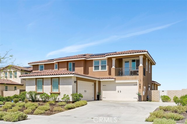 Welcome to this beautifully upgraded 5-bedroom, 4.5-bathroom residence offering a rare blend of luxury, efficiency, and flexibility. Thoughtfully designed, the home features three primary ensuite bedrooms one conveniently located on the main floor with private access, ideal for guests or multigenerational living, while the two upstairs suites each offer private balconies with sweeping views. The heart of the home is an expansive kitchen showcasing an oversized island, walk-in pantry with a second refrigerator, and a butler s pantry with hookups ready for a wine fridge perfect for both everyday living and entertaining. Custom lighting runs throughout the home, enhancing each space with warmth and style. A covered back patio includes a built-in gas stub for grilling, and the backyard is pre-plumbed for future irrigation. Additional upgrades include an owned Tesla solar system, two Tesla Powerwall backup batteries, and a Tesla car charger located in the attached 4-car garage. The home also offers RV parking and a large driveway, providing ample space for vehicles and storage. For added comfort and security, the property is equipped with a whole house fan, is wired for WiFi extenders, and includes a security system with cameras. Located just minutes from the 91, 15, and 215 freeways, this exceptional home offers both convenient access and a peaceful, elevated living experience. Don t miss your opportunity to own this thoughtfully upgraded, energy-efficient property with modern amenities and versatile living spaces.Interested in this Listing?