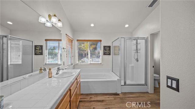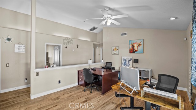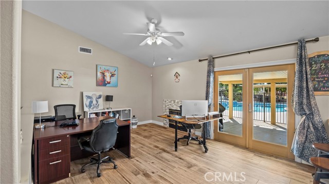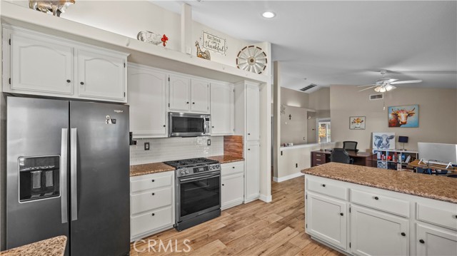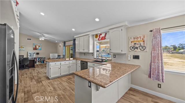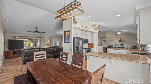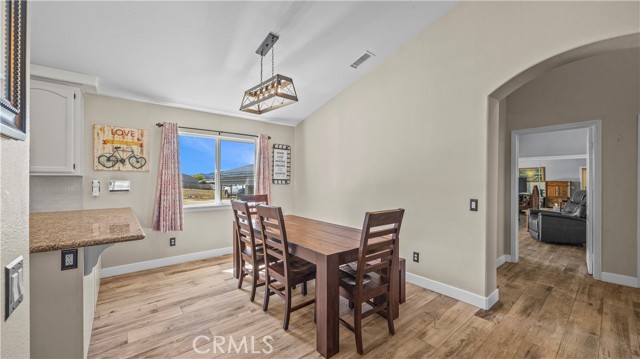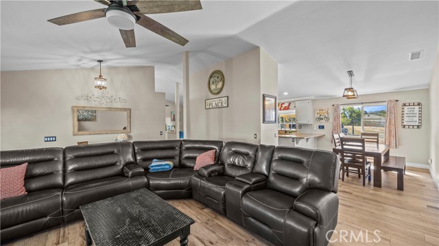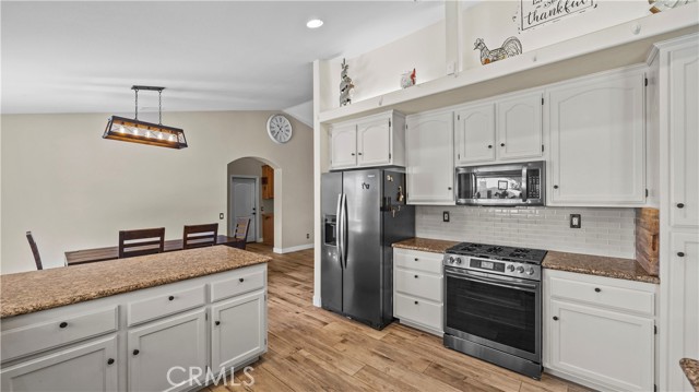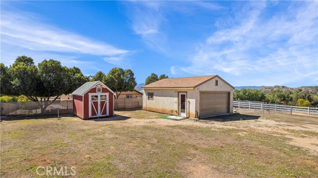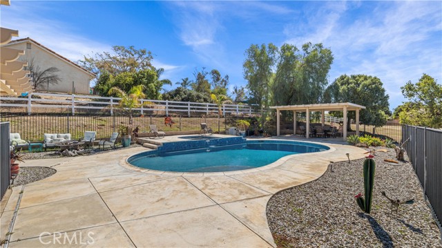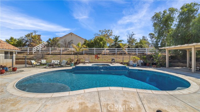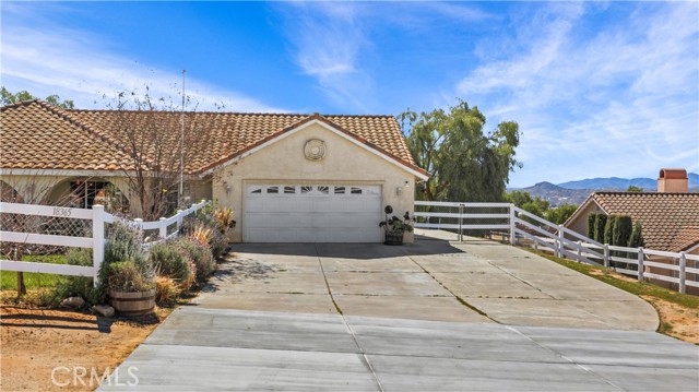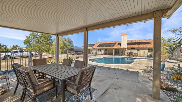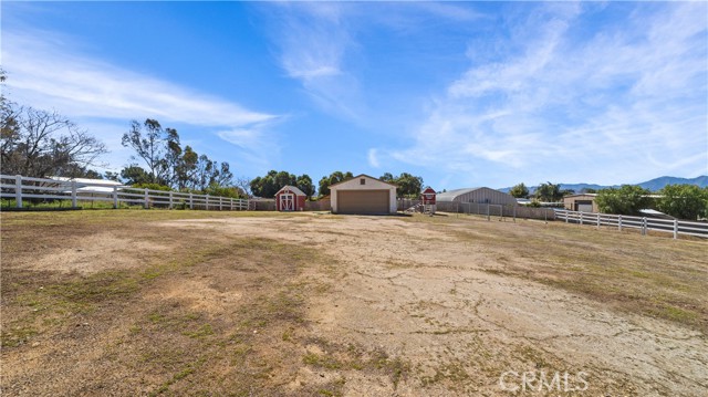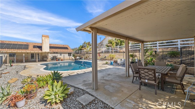 This absolutely stunning, move-in ready single-story home sits on nearly one acre of mostly flat land. The property features an inviting oversized front porch, charming ranch-style fencing, and convenient RV access. Inside, the home boasts vaulted ceilings that enhance the spacious, open floor plan. A tile entry leads into the living room, which seamlessly flows into the large kitchen and dining area. The kitchen is a chef's dream, with granite countertops, new black appliances, a garden window, beautiful cabinetry, and dual breakfast bars. It opens into the cozy family room with a fireplace. The master suite is generous in size and offers an en-suite bath with a separate shower and Roman tub. You'll also appreciate the indoor laundry room with a sink and ample cabinetry for storage. This home has been thoughtfully upgraded with a new HVAC system, new water heater, new flooring, and a remodeled kitchen, making it even more move-in ready. For added comfort and energy efficiency, the home is equipped with solar panels and a battery system. The outdoor space truly shines, with panoramic views and dual Aluma Cool patios perfect for relaxing or entertaining. Enjoy the beautiful fenced pool and spa, complemented by an additional patio area. The property also features a new garage door, a shed, a barn, and a carport for additional storage and parking. For those with a green thumb, there are fruit trees scattered throughout the yard. As a bonus, there's a 2-car detached garage with A/C being used as an office in addition to the attached garage, offering plenty of space. This exceptional property truly has it all!Interested in this Listing?