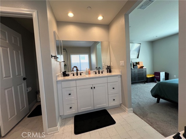 REDUCED PRICE! Better than new! This hard to find, Spring Mountain Ranch, single story home has a spacious Great Room that combines the living room, kitchen and dining areas in an open concept floor plan, great for entertaining and hosting family and friends. At the front of the house are two bedrooms with mirrored glass closet doors and recessed lighting plus there is a hallway bathroom to service the two bedrooms with a tub and shower. At the back of the home there is a private large Master Suite and Bathroom that has a separate tub and walk in shower, along with two sinks at the vanity, recessed lights and an ample sized walk in closet. The house has a modern feel and is light and bright with lots of large windows that let in tons of light. The walls are painted in a custom gray color that compliments the white matching cabinetry and the modern black metal hardware on the cabinets and interior doors throughout. The kitchen has stainless steel appliances and granite countertops, including the center island. The bathrooms feature one piece, seamless, marble look countertops at the vanities and black metal frames at the tub/shower and master shower enclosures. The backyard has a concrete deck that spans the length of the back of the house an is ready for the new owner to plant the trees, shrubs and greenery of their choice. The master planned community has parks, walking paths and playgrounds throughout the neighborhood, and you are close by to the 215 & 10 freeways for easier access to Orange and LA Counties.Interested in this Listing?