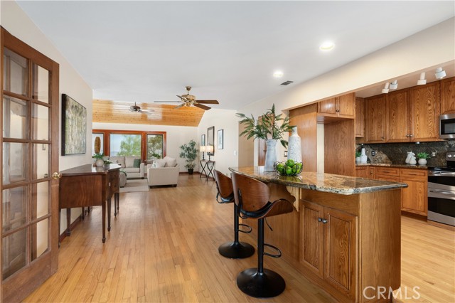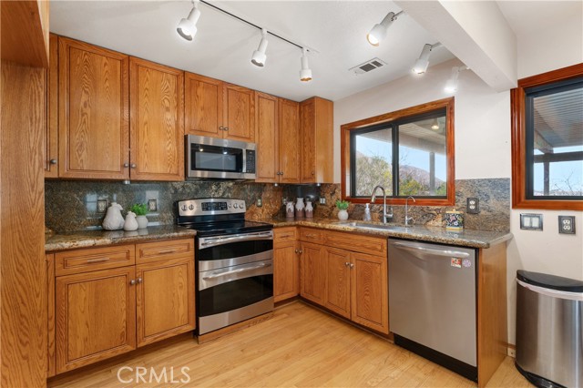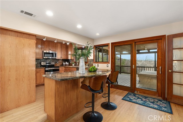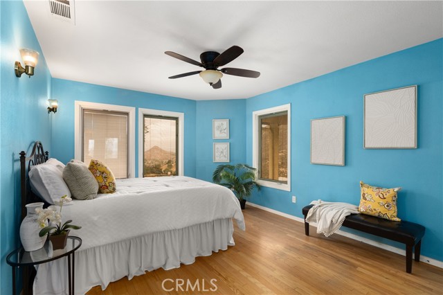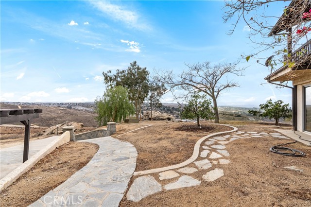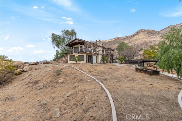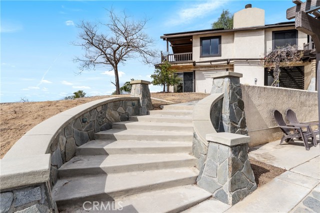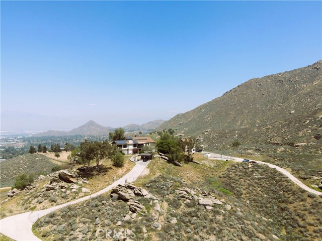 Imagine living in a serene hilltop custom-built home designed for luxury and modern convenience. Nestled in the Box Springs Mountain range, this home offers both privacy and expansive open living spaces. Perfect for those seeking off-the-grid living, this 12-plus-acre paradise offers the perfect blend of self-sufficiency and connection with two wells, solar panels, and two septic systems. Plus, you re connected to electricity with the public utility providing extra peace of mind. Step inside to discover exquisite hardwood flooring and broad windows that flood the space with natural light and showcase breathtaking panoramic views. The vaulted natural wood ceilings in the living spaces provide a spacious atmosphere. There are two main living rooms, which both offer places for entertaining, dining, and enjoyment of this hill top paradise. The dining and living rooms boast unparalleled views of Mount Baldy, creating a mesmerizing backdrop for every meal and moment. Picture yourself relaxing on the living room balcony, taking in the stunning west-facing vistas of the mountains and twinkling city lights. With two bedrooms upstairs and a primary suite downstairs, this home provides fantastic flexibility for any lifestyle. The lower bedroom in the main home could easily be converted into a JR ADU, offering great potential for multi-generational living or additional revenue. Additionally, the property features a detached ADU which sits over the two-car garage. Also home has a half-court basketball court. The ADU has its own living area, kitchen, bedroom, and bathroom (450 sq ft +/-) a fabulous bonus for guests or potential rental income. Zoned as R1, there's potential to subdivide the property for future investment or development opportunities. This hilltop retreat is your chance to experience the best of both worlds secluded, self-sustaining living with the comfort and connection of modern amenities. Don't miss out on this unique opportunity to call this remarkable property your home.Interested in this Listing?