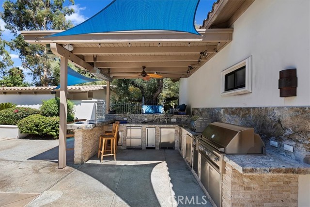 Come see your private gated resort on 1.02 acres in the middle of prestigious Alessandro Heights/Hawarden. Hidden retreat at the base of a small cul-de-sac in this desired neighborhood. Built for single family, multi-generational living, and for entertaining. Step through the Brazilian mahogany front door and see the beautiful wood, marble, granite and Versailles pattern French limestone flooring. Loads of custom designs, built-ins, and finishing touches make this house shine! The Classic open formal living room has a massive fireplace, and large dining space that opens to a quieter patio. Office or small bedroom nearby. Four spacious bedrooms each with an ensuite and private patio. The primary bedroom is king sized, over 600 sq ft. featuring double separate walk-in closets, snail walk-in shower, oversized multi-jet tub and fireplace. All bedrooms are unique quiet retreats. Order room service from your gourmet kitchen, or cook your own meal utilizing separate SubZero refrigerator and freezer, 2 microwaves, double ovens, custom solid wood cabinets with pull out drawers and shelves, warming drawer, icemaker, trash compactor, large walk-in pantry. Kitchen is the perfect size for a family hub, breakfast, or casual eating. Kitchen opens directly onto an entertaining patio. Shoot some pool and enjoy a drink in your giant great room, with a beautiful built in bar 2nd icemaker, and refrigerator. Surround sound, built in shelves and fireplace add to the ambiance. Great room opens directly onto the Entertainment patio which features dark pebble swimming pool with diving board, firepit, and outdoor kitchen. Two easily accessible half baths for wet feet. A 2 tiered luxury outdoor kitchen with Lynx gas grill, 2 refrigerators, ice maker, Kegerator, Saloman grill, expansive granite countertops, storage bays, outdoor overhead heater. Bonus room downstairs adjoining two bedrooms perfect for at home gym, or teen space. More, more, more. 1400+ sf separate 6 car garage with oversized RV doors, half bath and drinking fountain. Additional 2 car attached garage, 2 additional sheds for storage (both have electricity and lighting). RV storage with dump station. Step into the peaceful gardens, mature landscaping with 50+ year old olive and eucalyptus trees, Rose garden, Multiple types of fruit trees. Down to the details: Security system with sensors on every door, 4 central A/C units, 4 furnaces. Central Vacuum system. Andersen double paned windows throughout.Interested in this Listing?