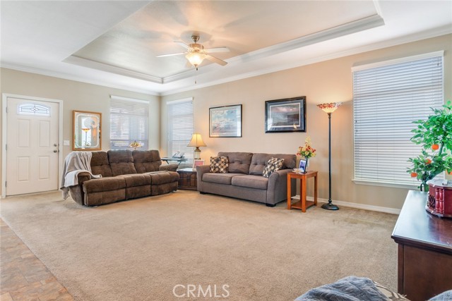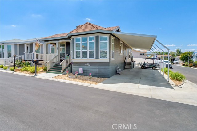 Fantastic turnkey mobile home located in the Villa Magnolia 55+ gated community. This gorgeous home features a beautiful chefs kitchen, a huge center island with extra storage, bar stool seating, laminated counter tops and custom cabinets with pull out shelves. The kitchen opens up into the cozy dining room and spacious family room, great for hosting family holidays & gatherings. Neutral paint, crown molding, recessed lighting, dual pane windows, ceiling fans and window blinds. The oversized primary bedroom has an en-suite bathroom with a dual sink vanity, a walk in shower and a walk in closet. One guest bedroom with a ceiling fan and a guest bathroom in the hallway complete with a shower tub combo. Convenient indoor laundry room, 2+ car covered carport and a custom golf cart ramp. A cozy front and back porch to enjoy your morning coffee. Low maintenance landscaping in the front and backyard along with a shed. Nestled on a wonderful corner lot. Community amenities include gated entry, a refreshing pool and RV parking within the community. You won't want to miss this!!Interested in this Listing?